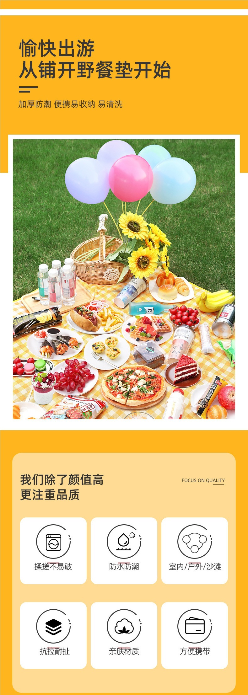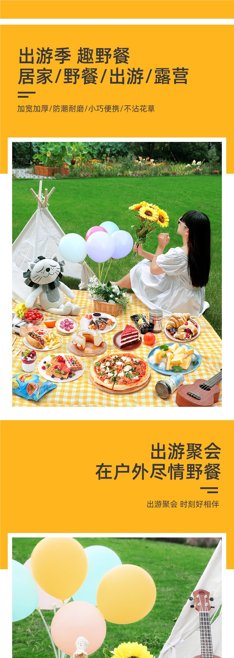 野餐墊防潮墊加厚地墊戶外露營野餐布沙灘墊音樂節防水坐墊子