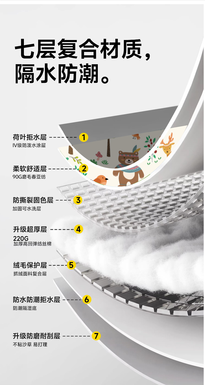 | 面料 | 春亞紡+針刺棉+PEVA |