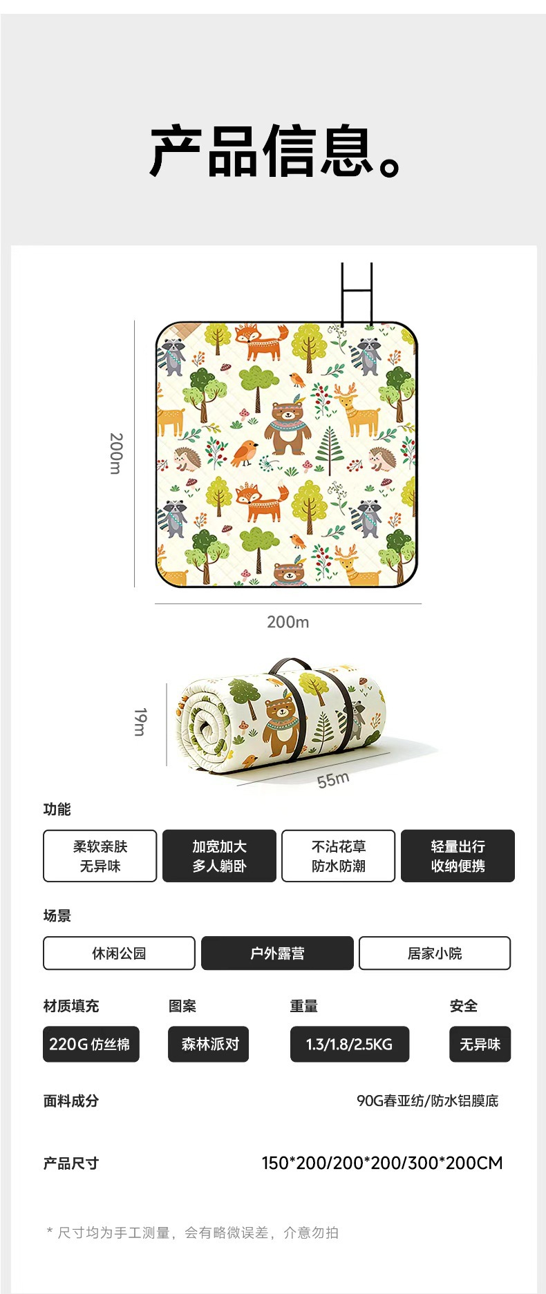 | 規格(長*寬) | 3*2米特厚款約8mm厚度220g仿絲棉:升級鋁膜底 |