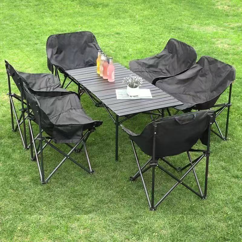 文嫣可攜式折疊桌椅夜市擺攤蛋卷桌露營野餐燒烤桌月亮椅折疊桌椅