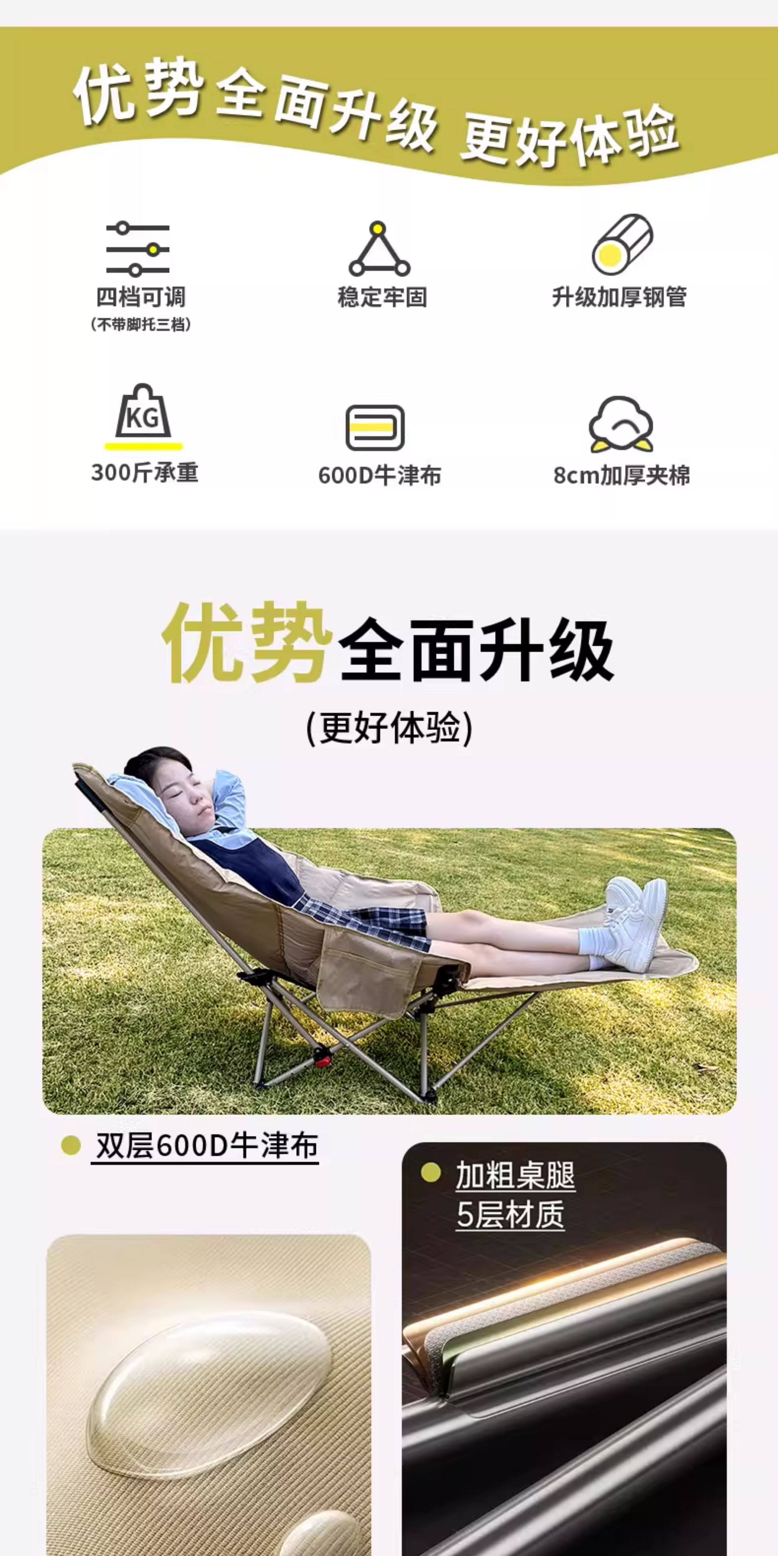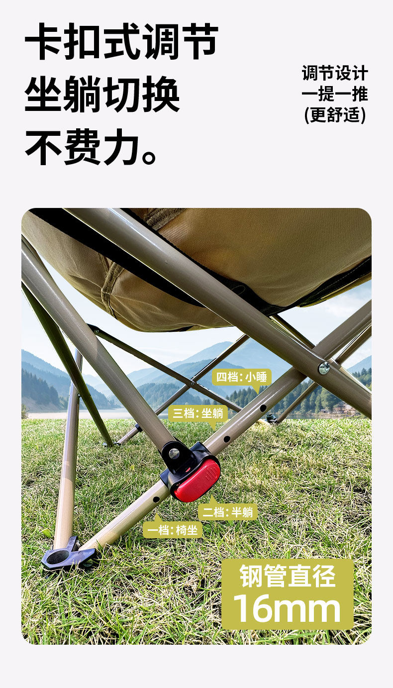 戶外折疊躺椅可攜式午休露營月亮椅釣魚兩用沙灘椅四檔可調節椅子