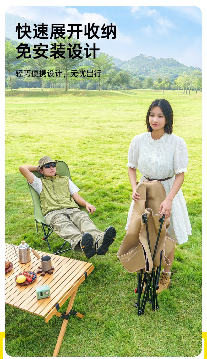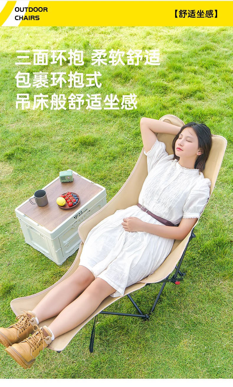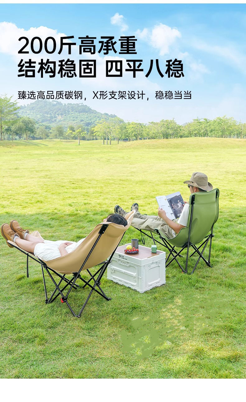 帶拖腿月亮椅 戶外月亮椅高背可攜式折疊桌椅套裝露營椅子