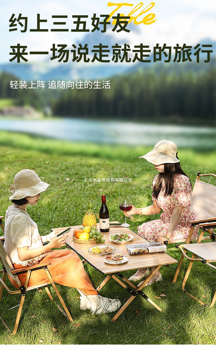 折疊桌椅戶外露營套裝蛋卷桌戶外野營桌椅野餐露營四檔調節椅子