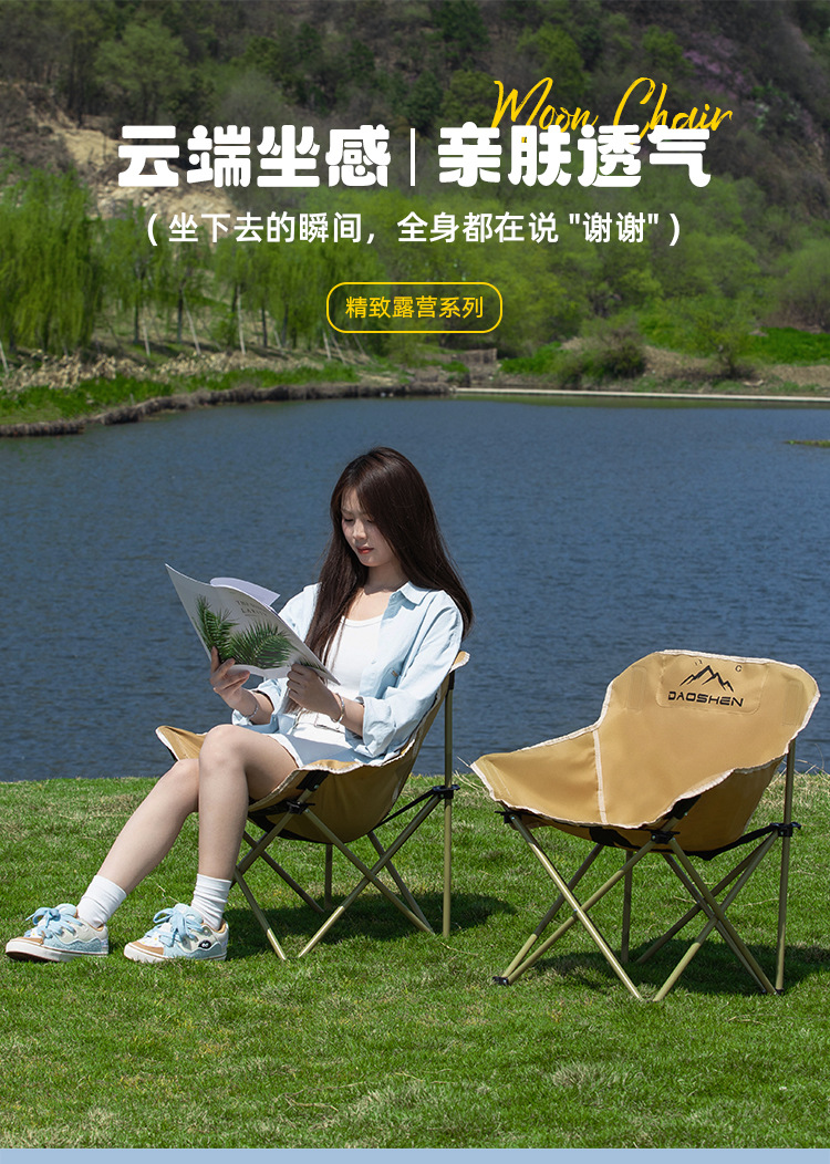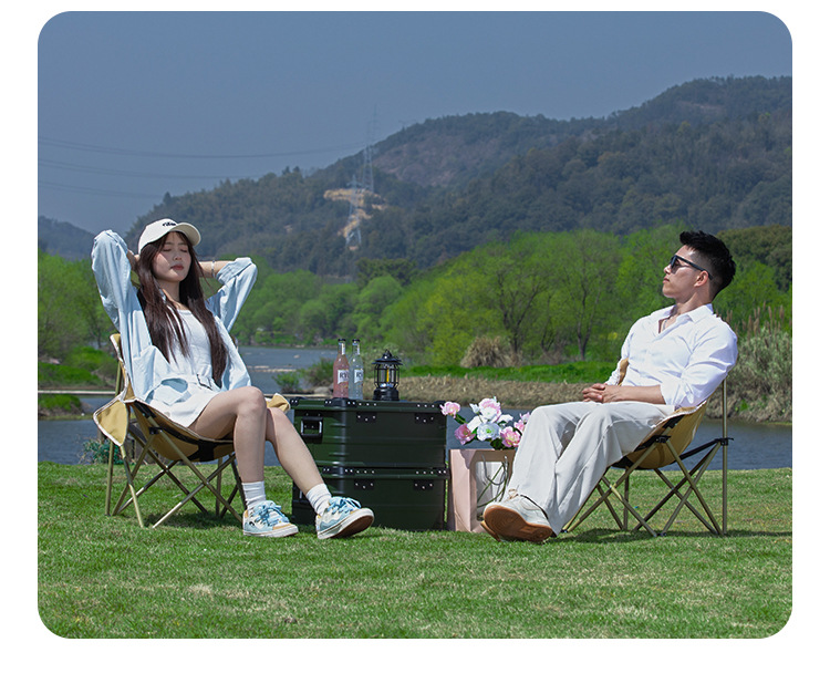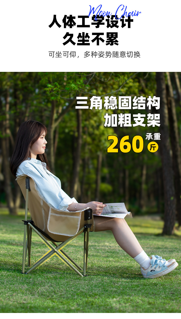 月亮椅戶外折疊椅野餐椅露營桌椅套裝蛋卷桌可攜式釣魚凳高背躺椅