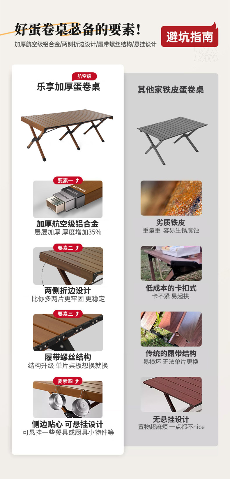 樂享戶外折疊桌地攤可攜式蛋卷桌露營燒烤野餐桌鋁合金桌