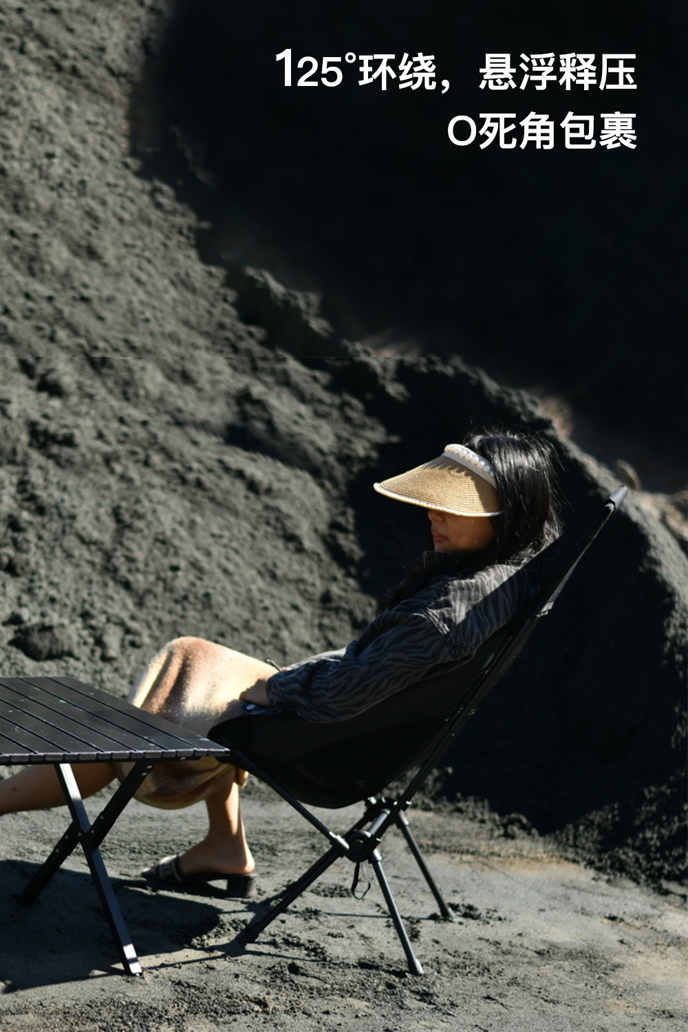 戶外透氣月亮椅輕可攜式太空椅折疊椅子有靠背釣魚沙灘椅露營椅高背