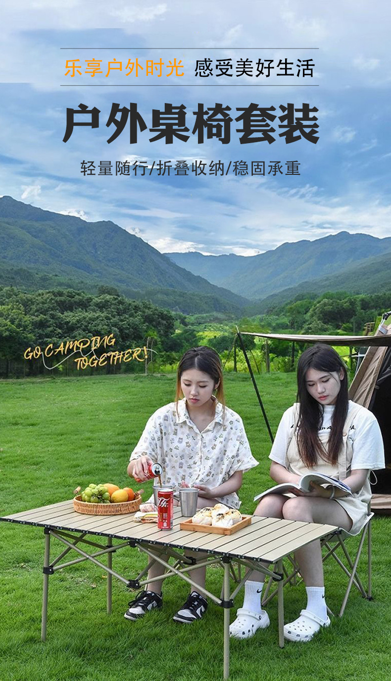 桌椅組合折疊蛋卷桌月亮椅露營套裝靠背椅野營桌戶外折疊桌椅套裝