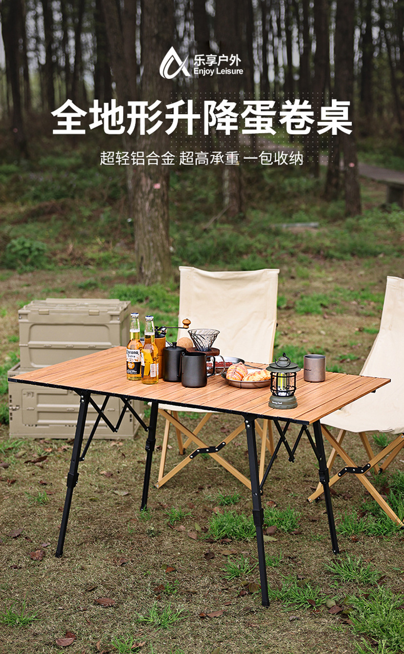 戶外露營桌子野營折疊鋁合金蛋卷桌可攜式野餐升降桌椅桌板套裝