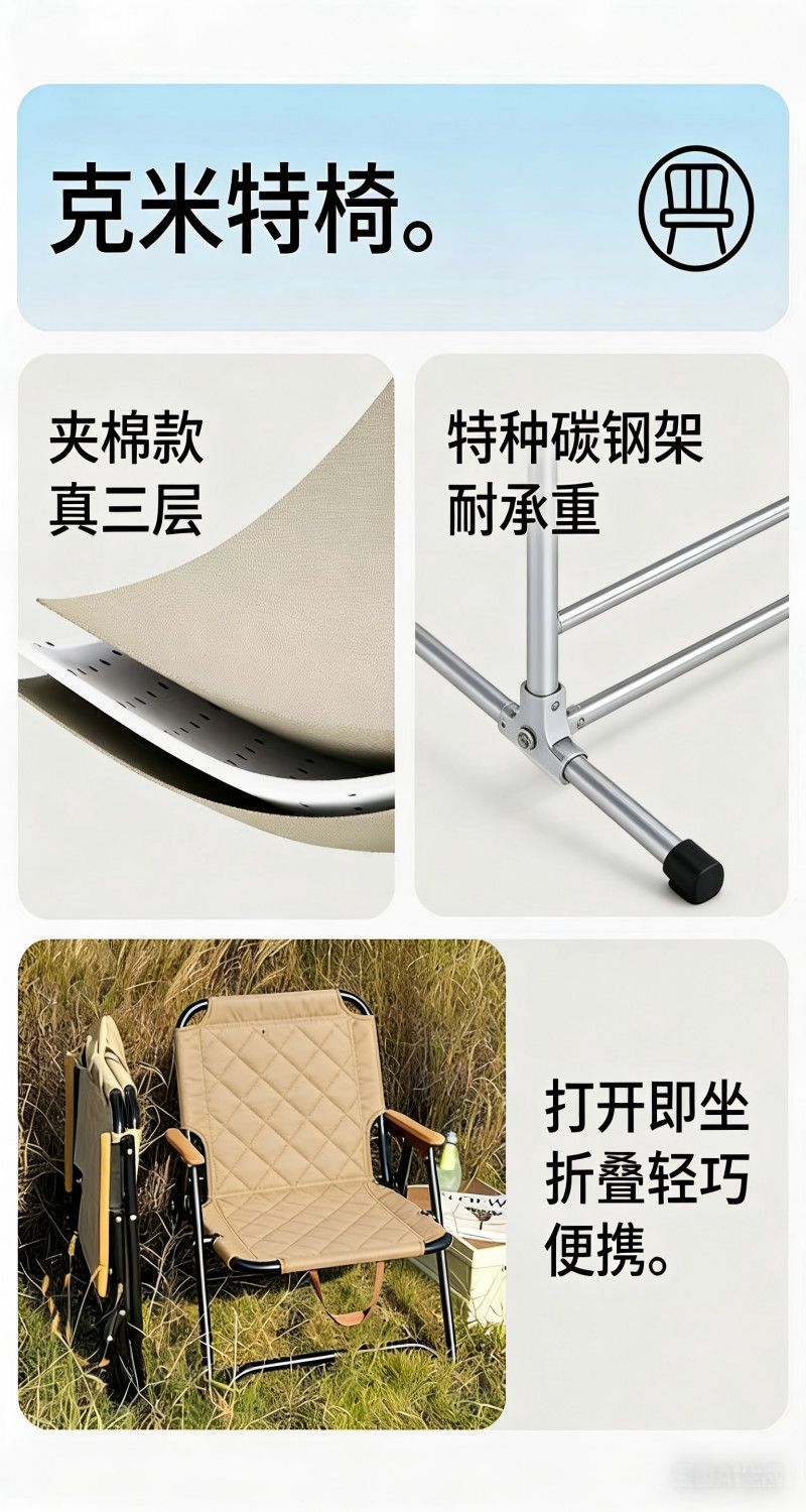 戶外折疊新款連體式克米特椅露營桌椅可攜式擺攤釣魚椅休閒沙灘野營