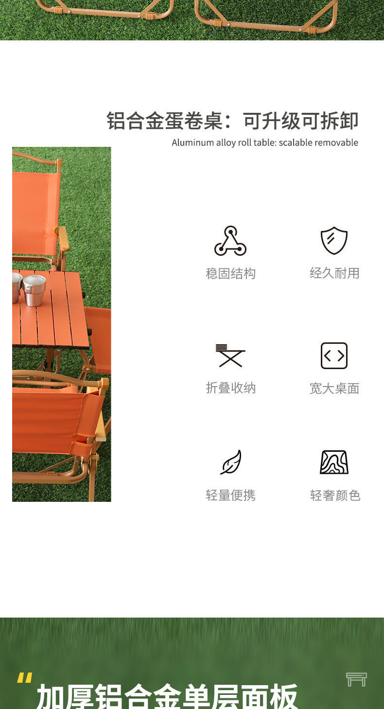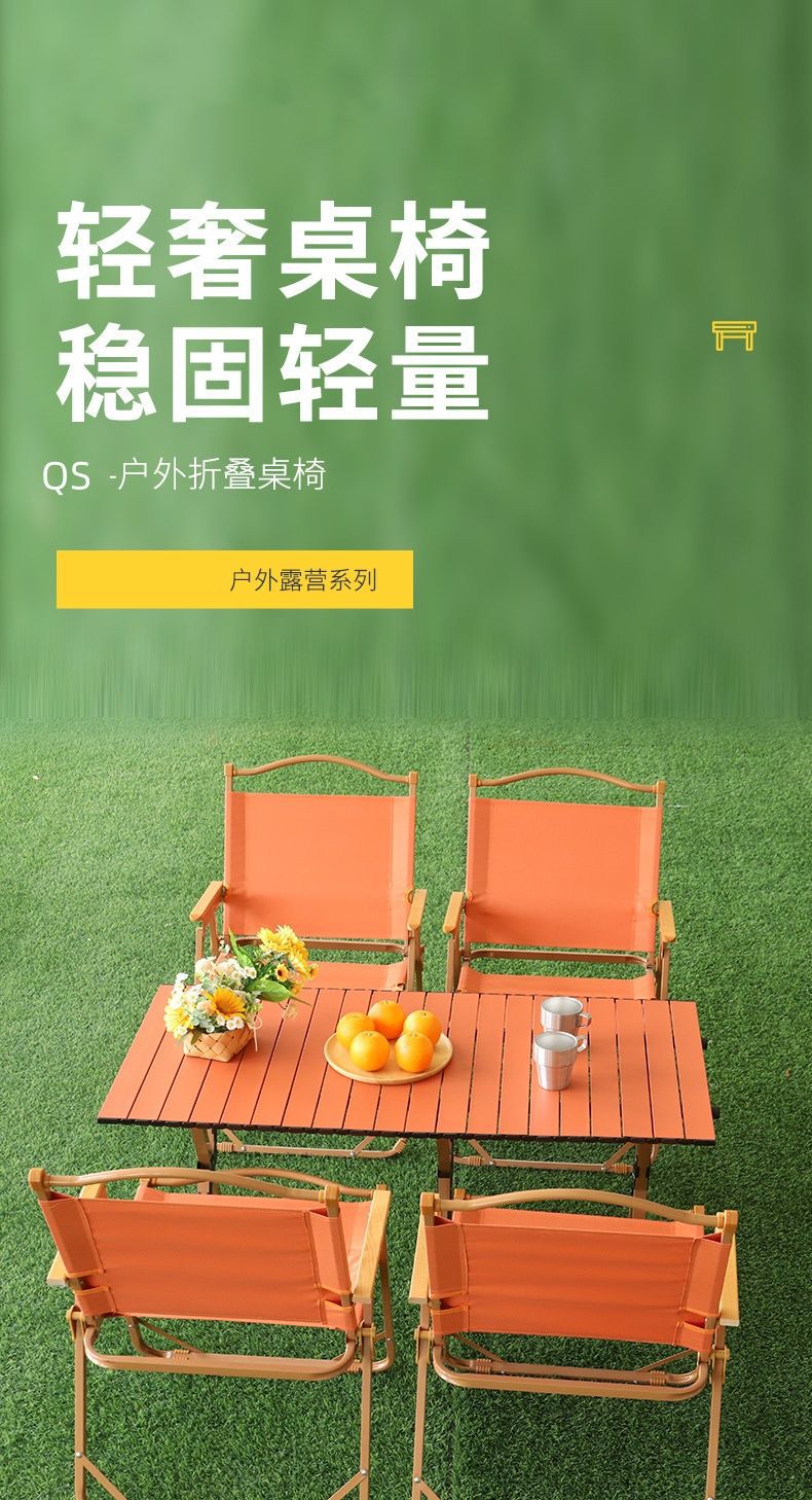 戶外露營彩色折疊桌椅可攜式克米特椅加高蛋卷桌子野餐燒烤凳子