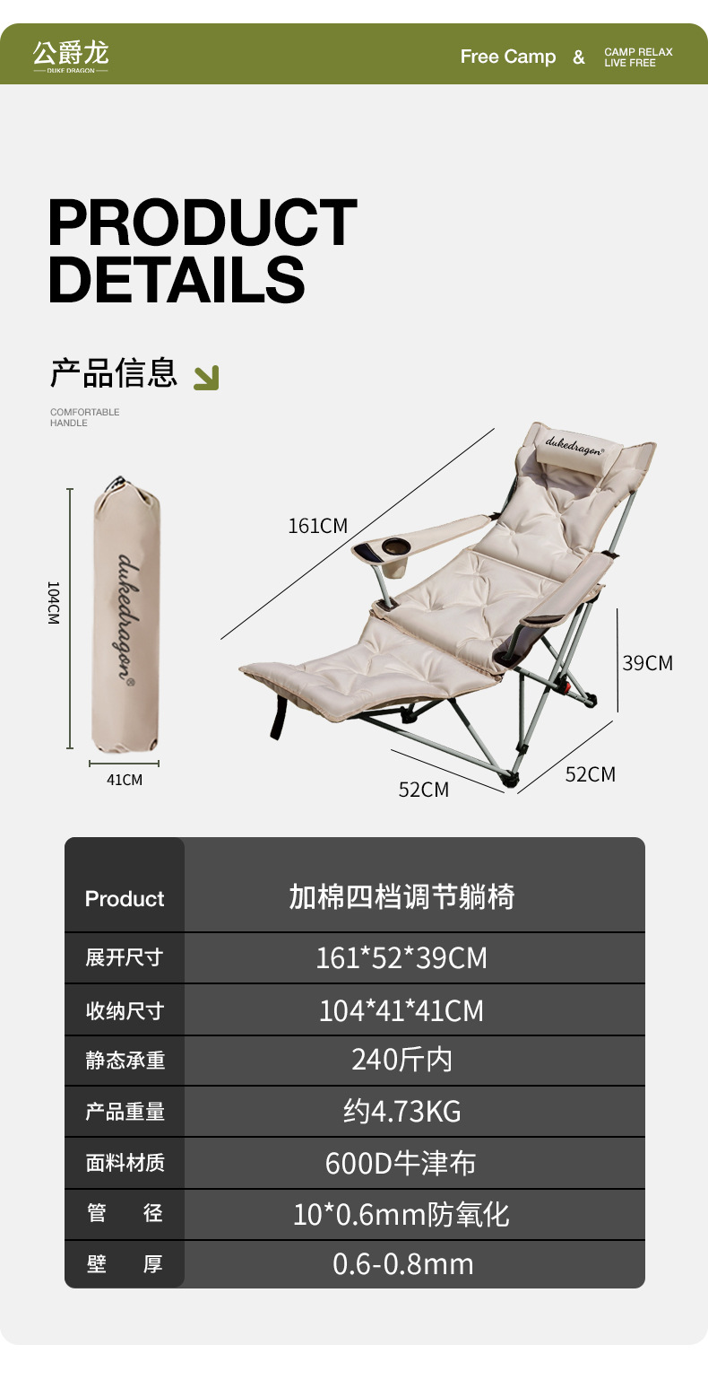 | 款式 | 加棉可調節躺椅 |