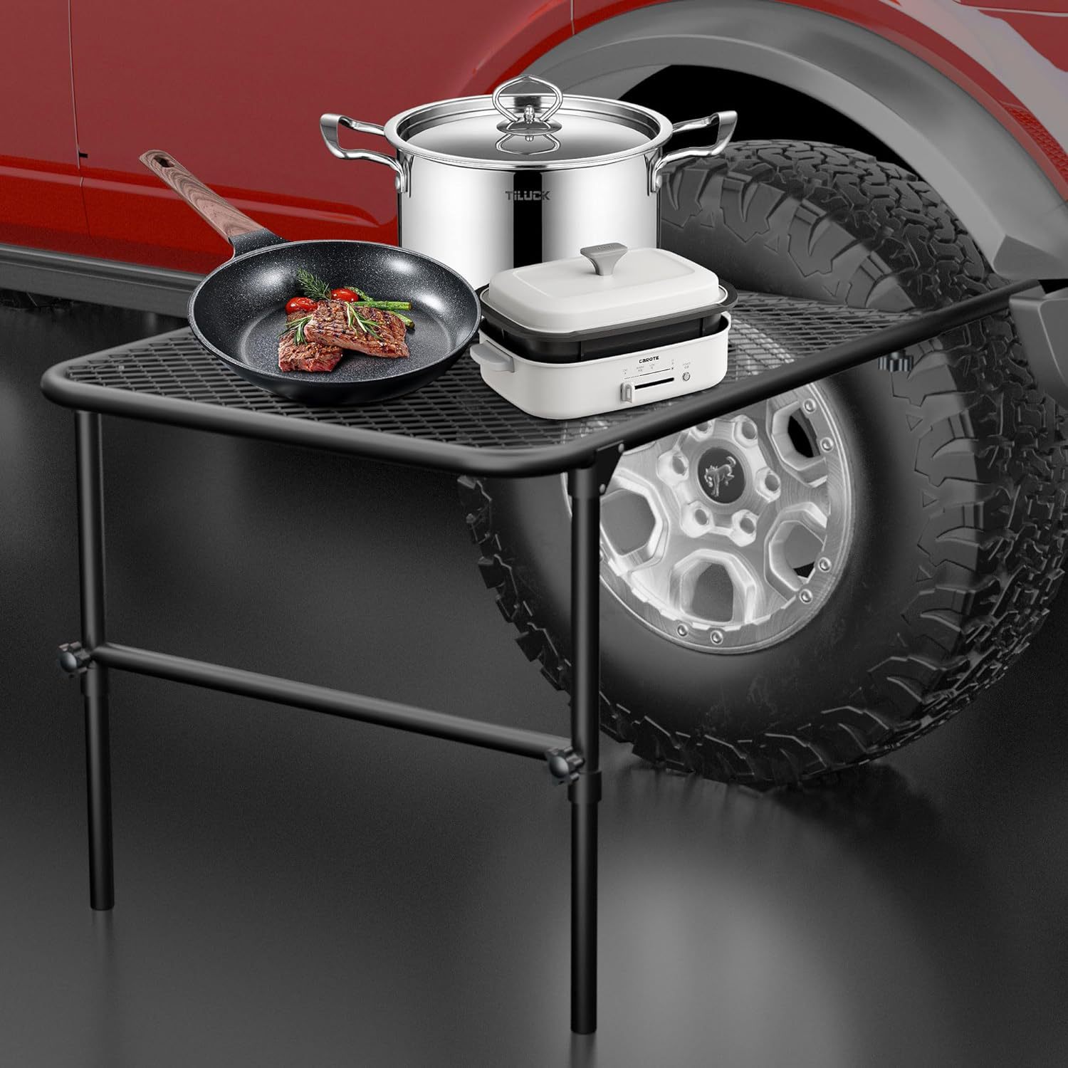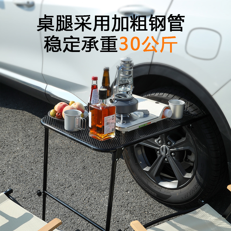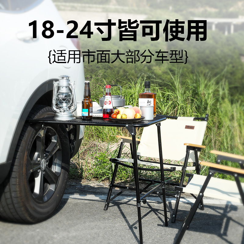 【爆】戶外露營桌可攜式輪胎折疊帶升降置物架輪胎餐桌