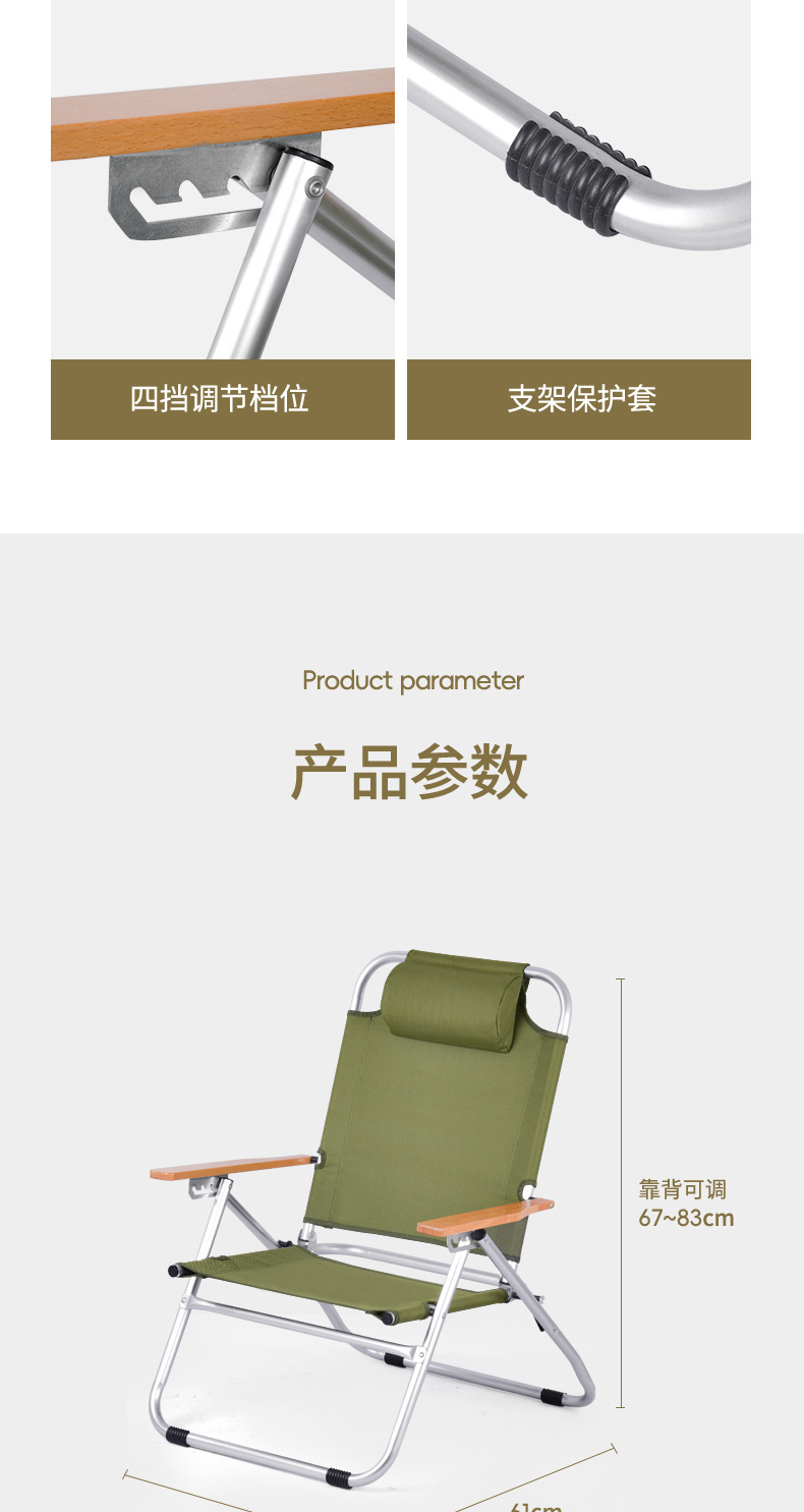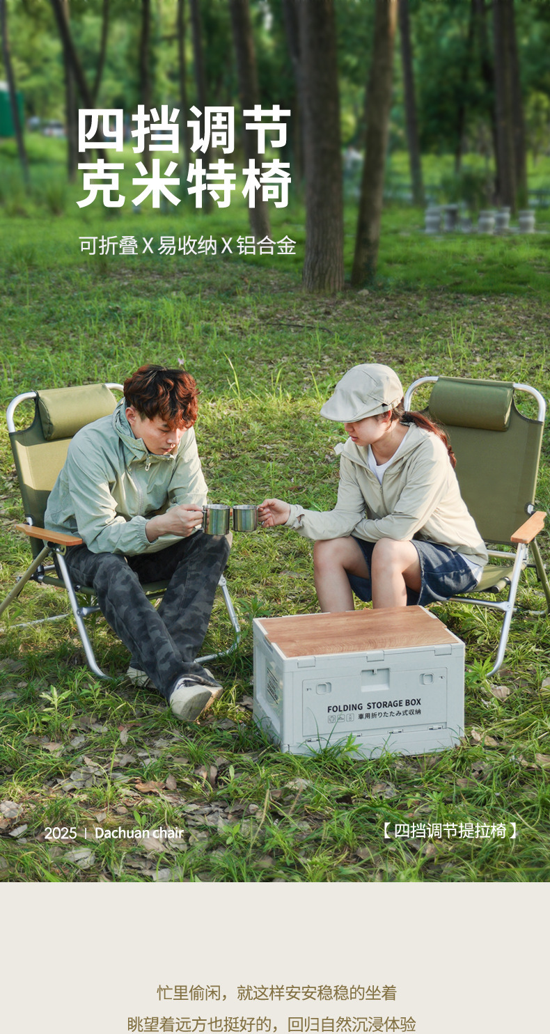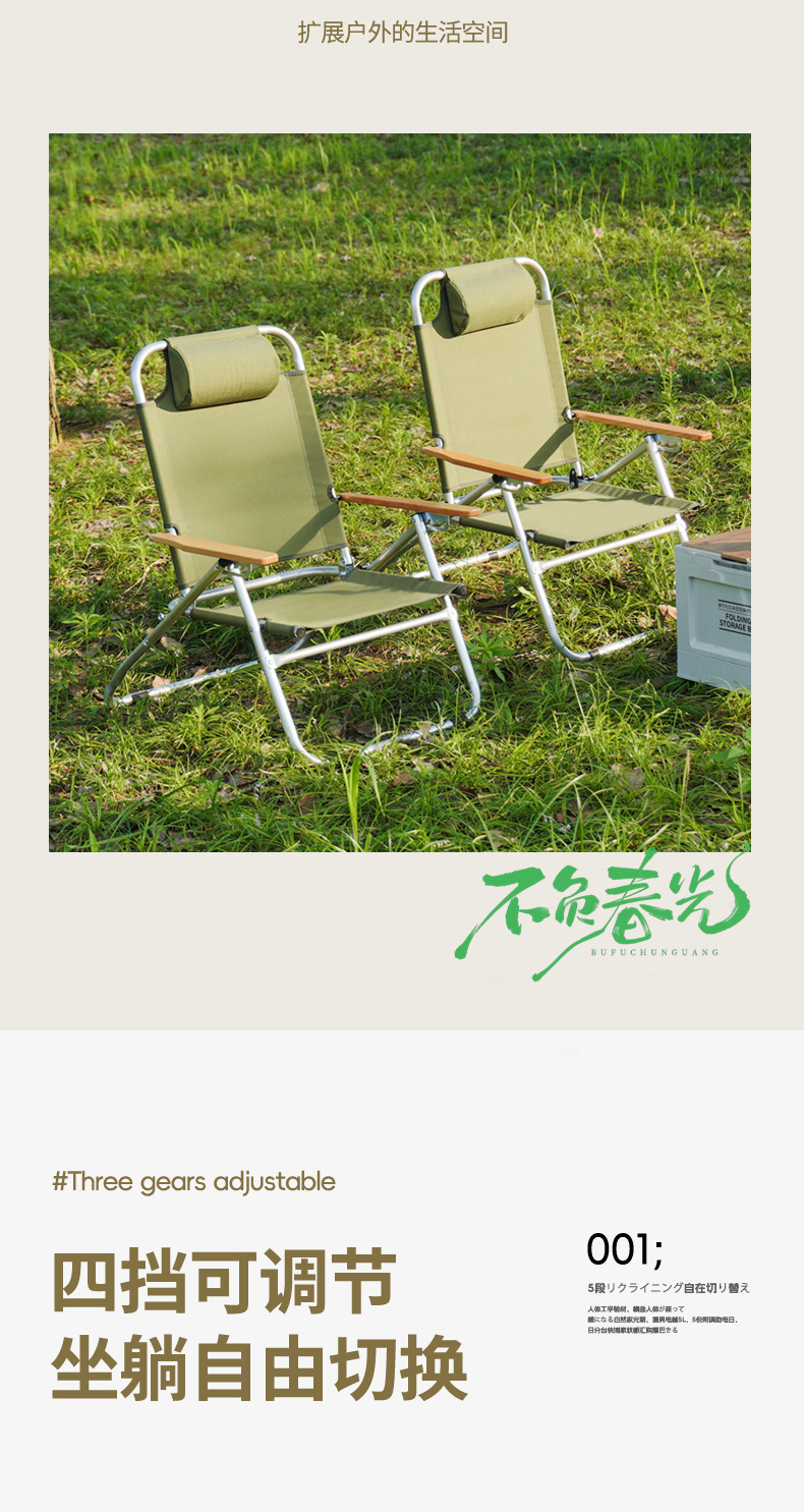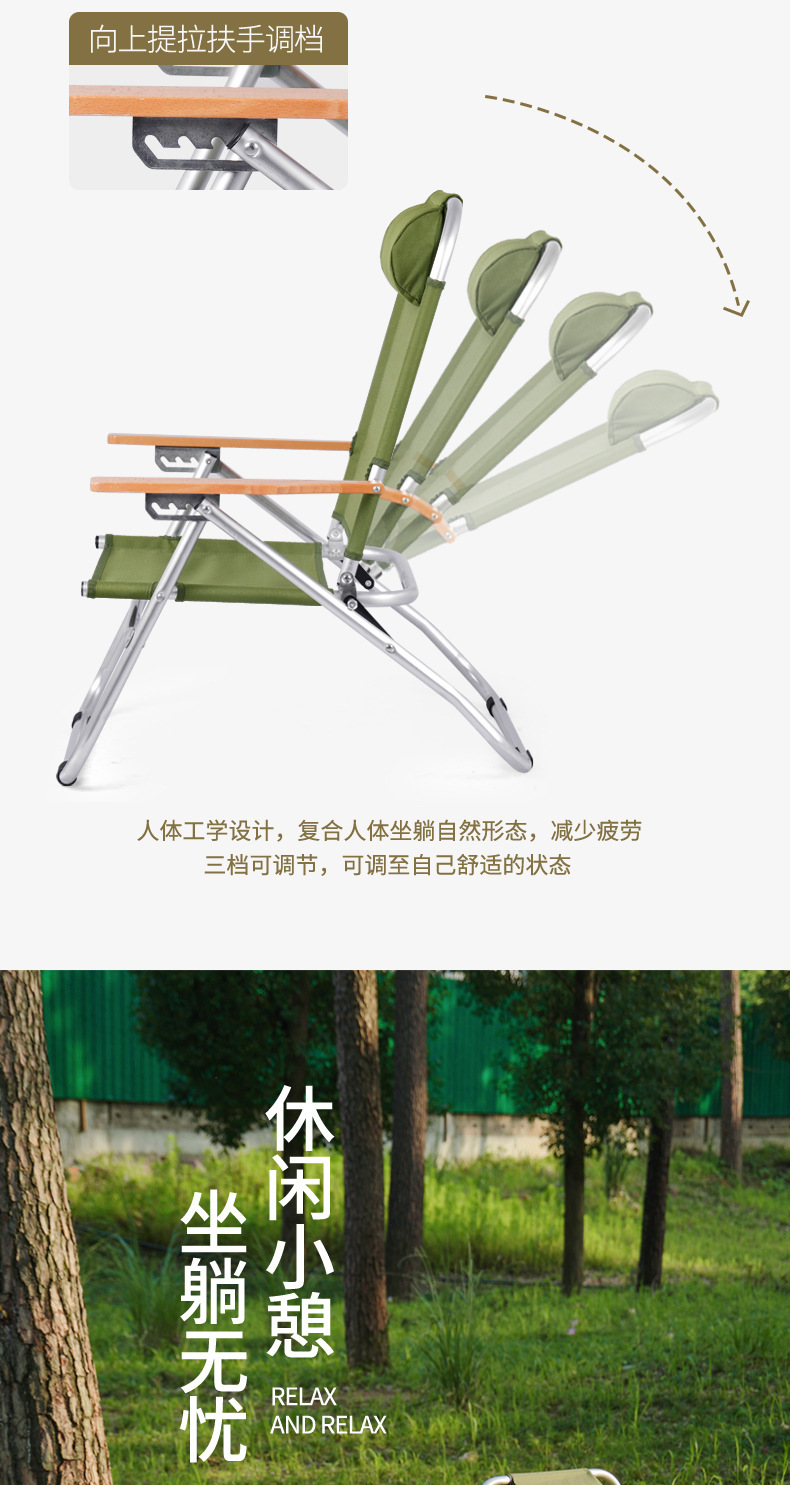 戶外折疊露營椅子可攜式四擋鋁合金調節克米特椅 高靠背躺椅午睡椅