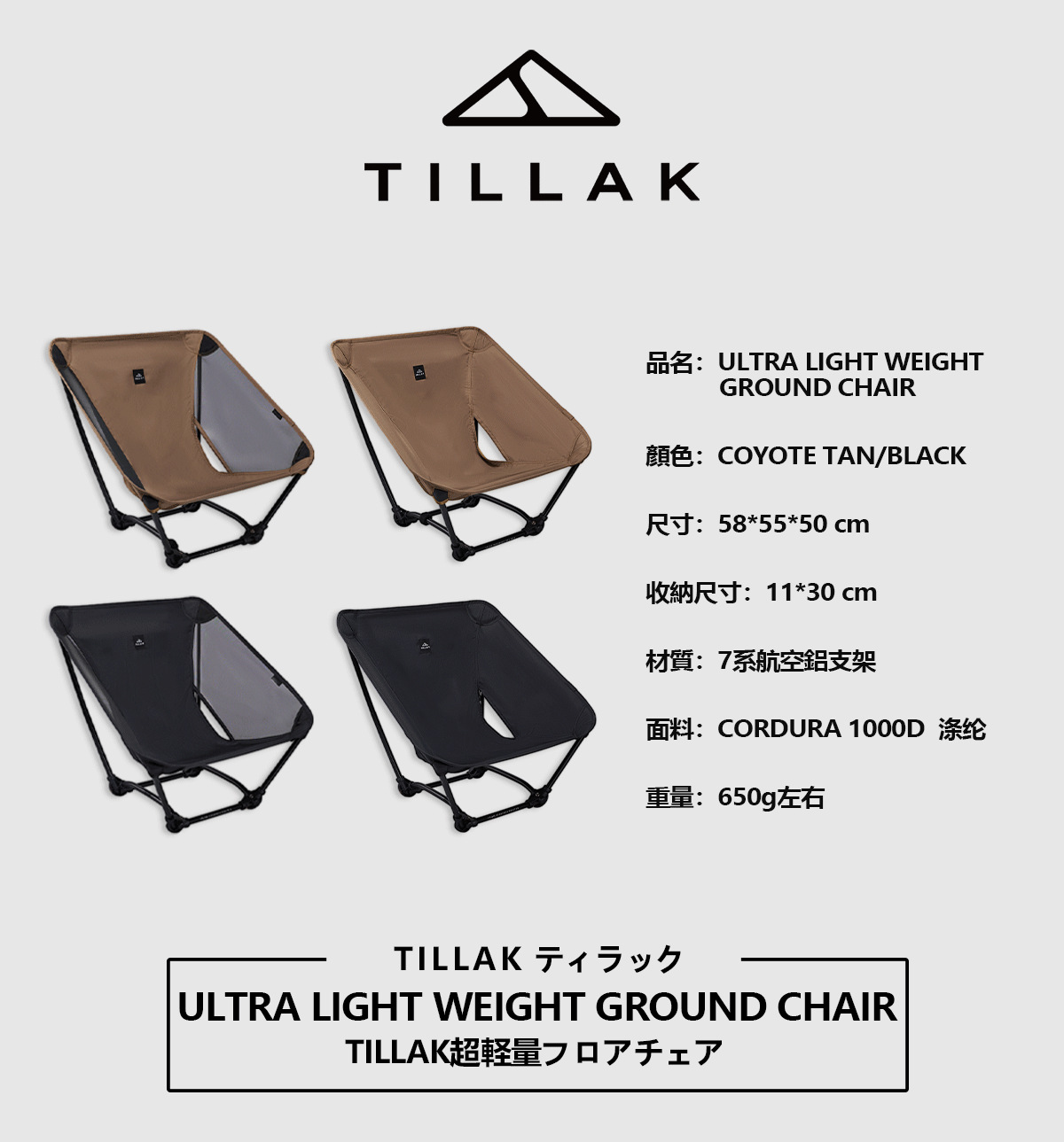TILLAK月亮椅矮款折疊超輕量600g戶外露營徒步可攜式網紗凳子地面椅