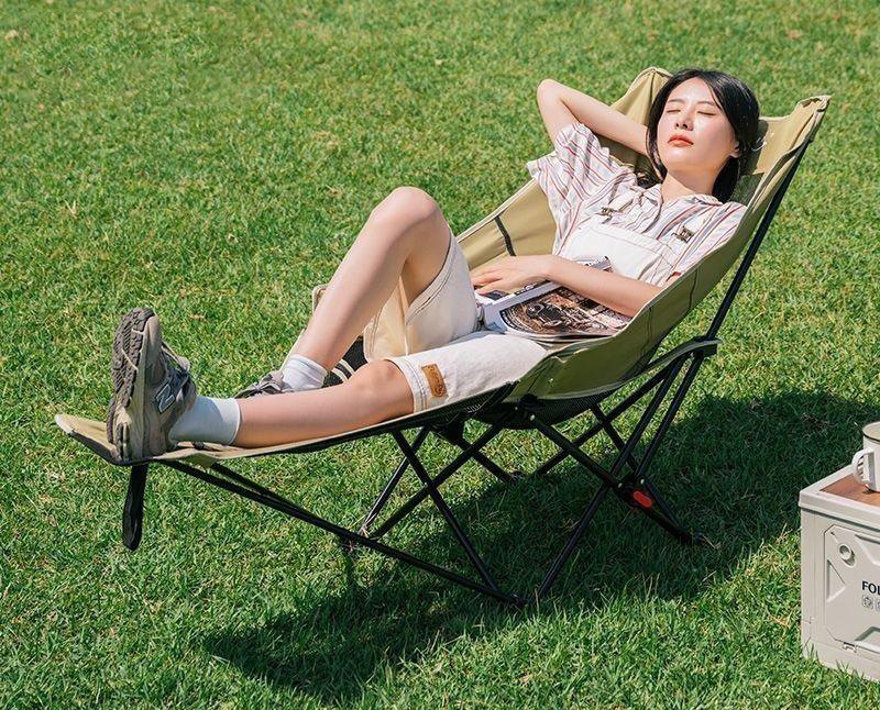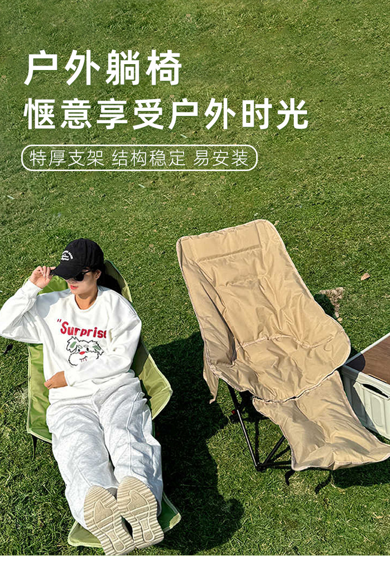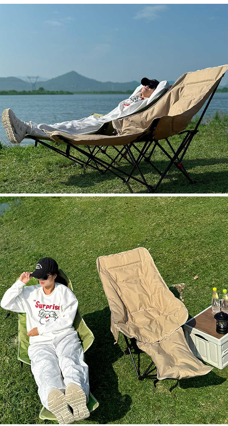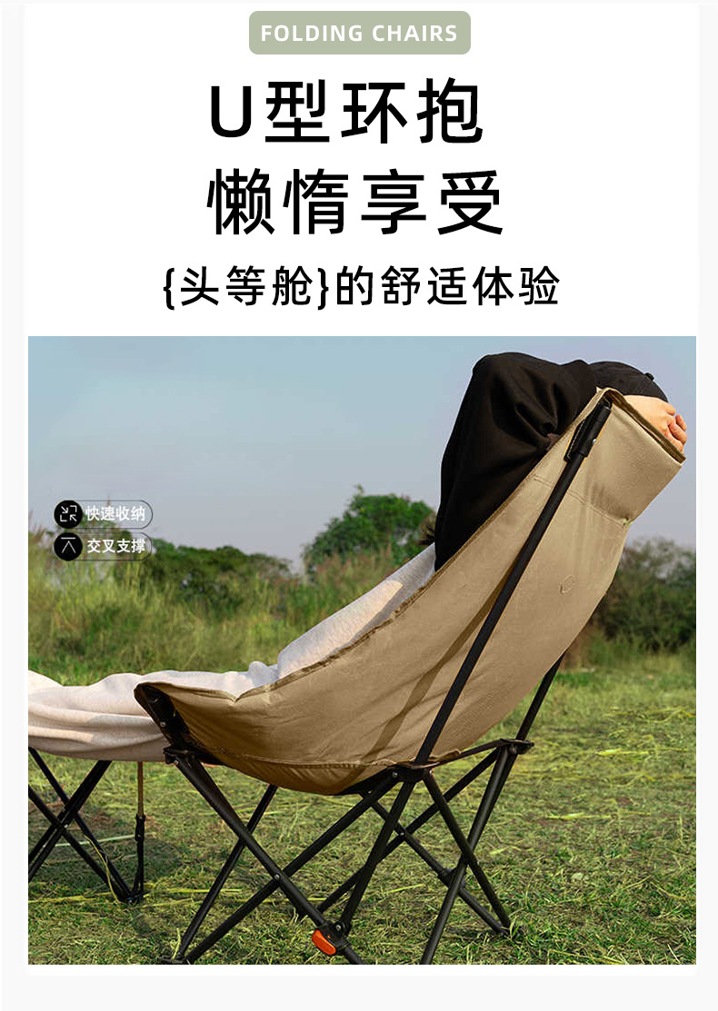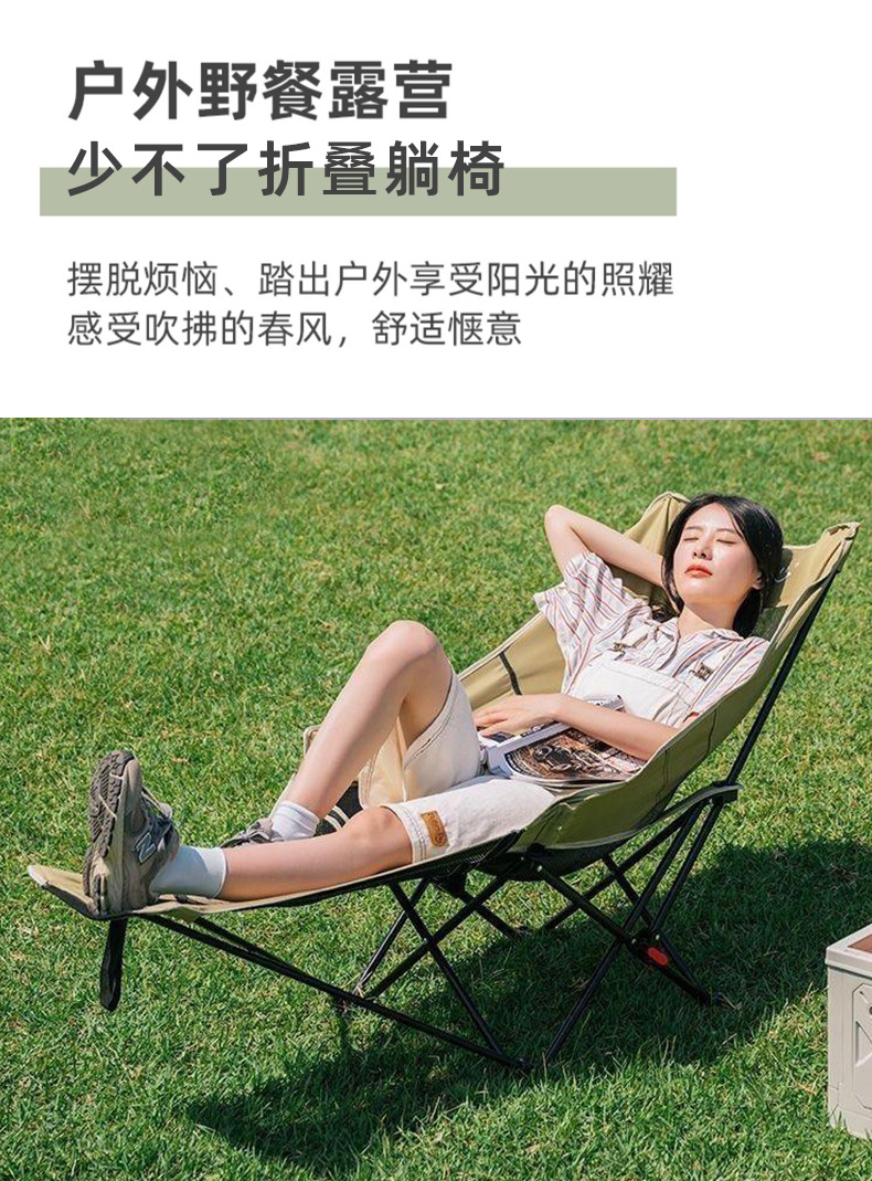 戶外折疊椅午休月亮椅露營釣魚椅子沙灘野餐靠背懶人躺椅直髮