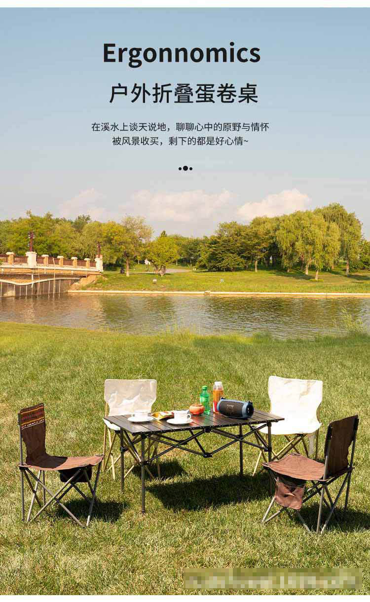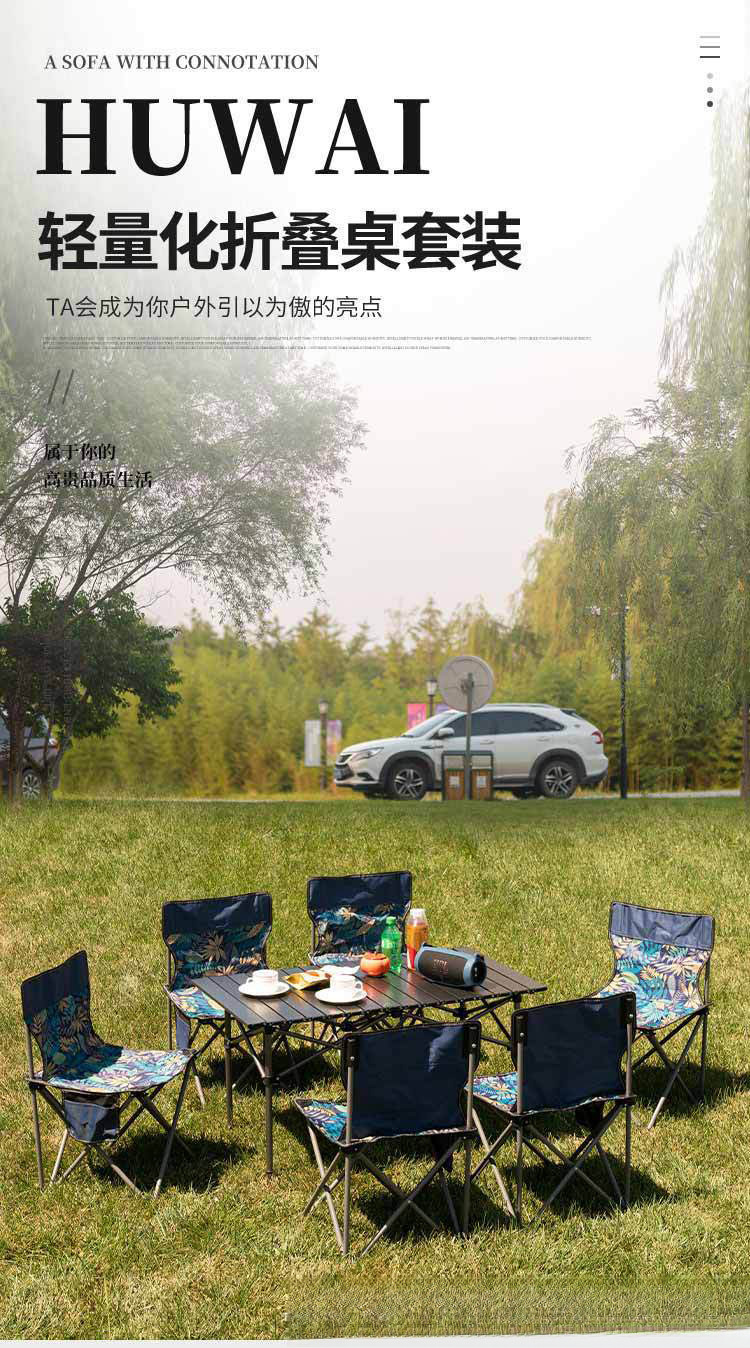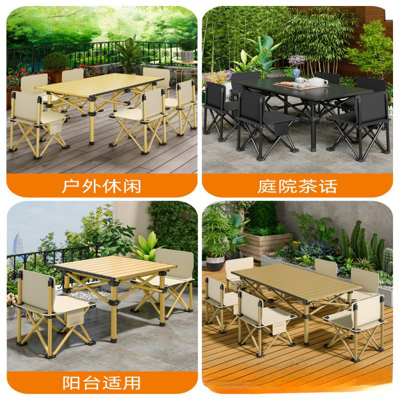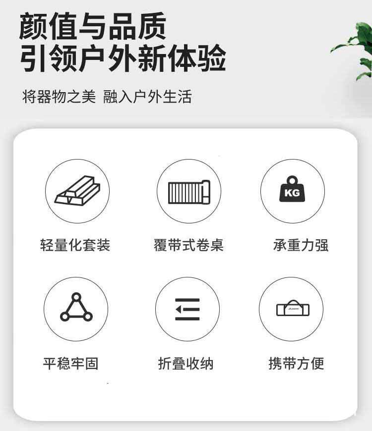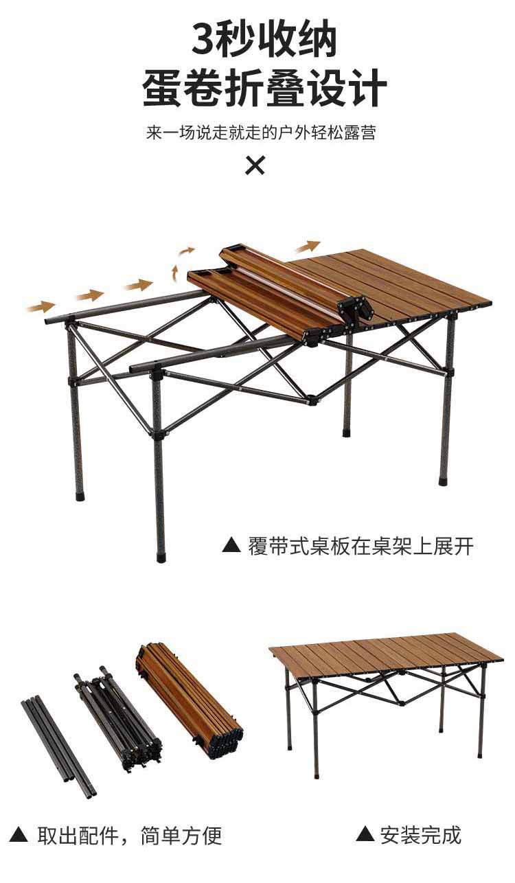戶外可折疊桌椅套裝可攜式車用野餐桌碳鋼蛋卷桌克米特椅全套