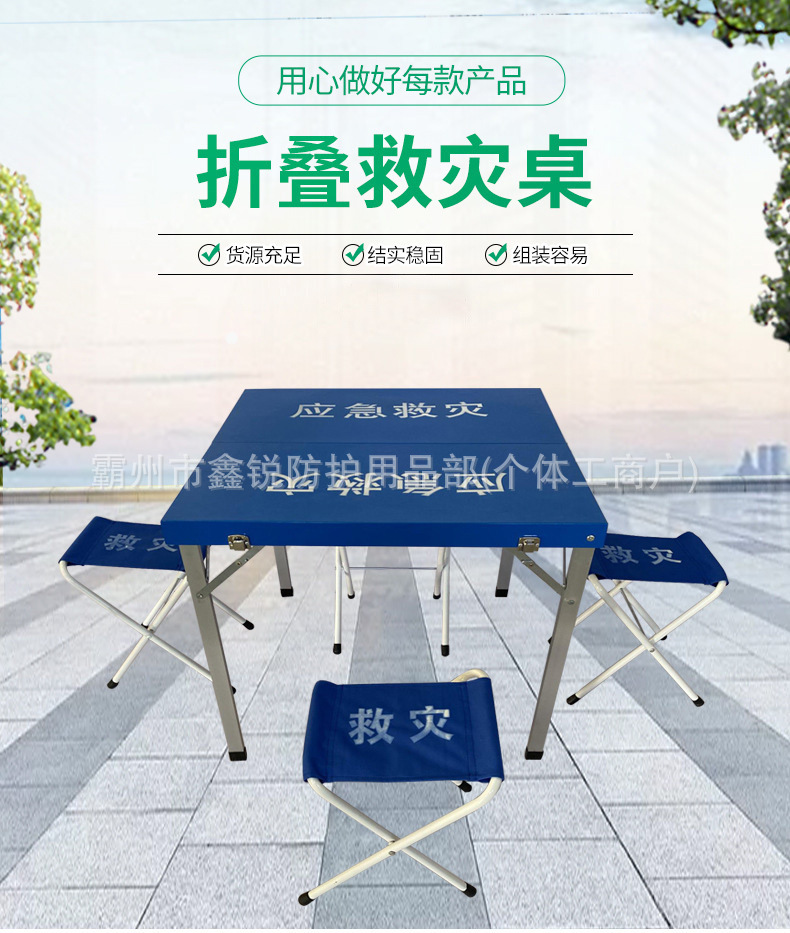 民政救災折疊桌凳應急救援天藍色一桌四椅套裝野外露營餐桌