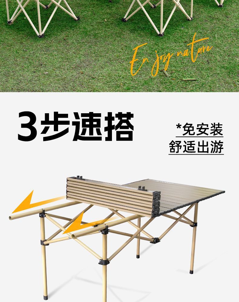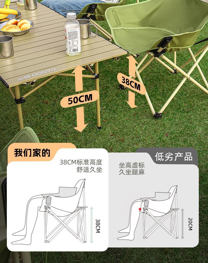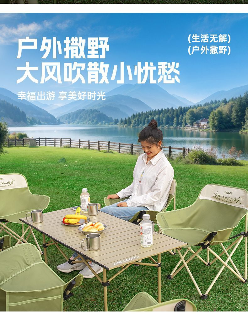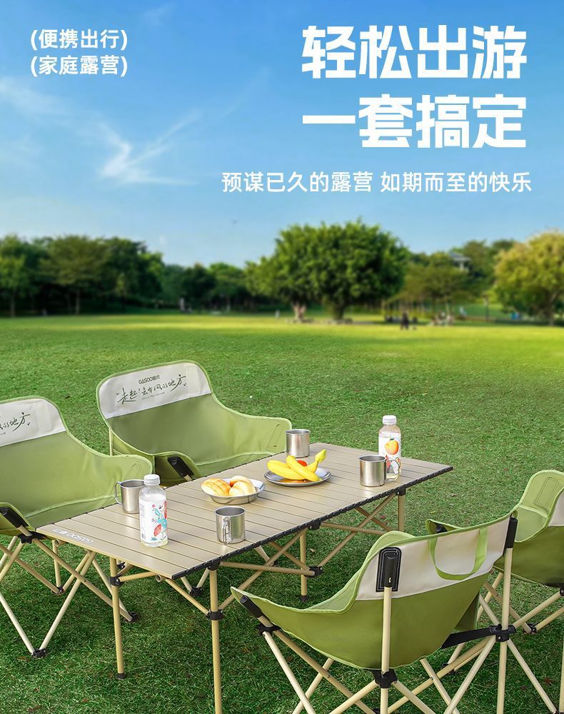 露營桌椅月亮椅戶外可攜式一體折疊蛋卷桌子椅子野餐野營全套裝備