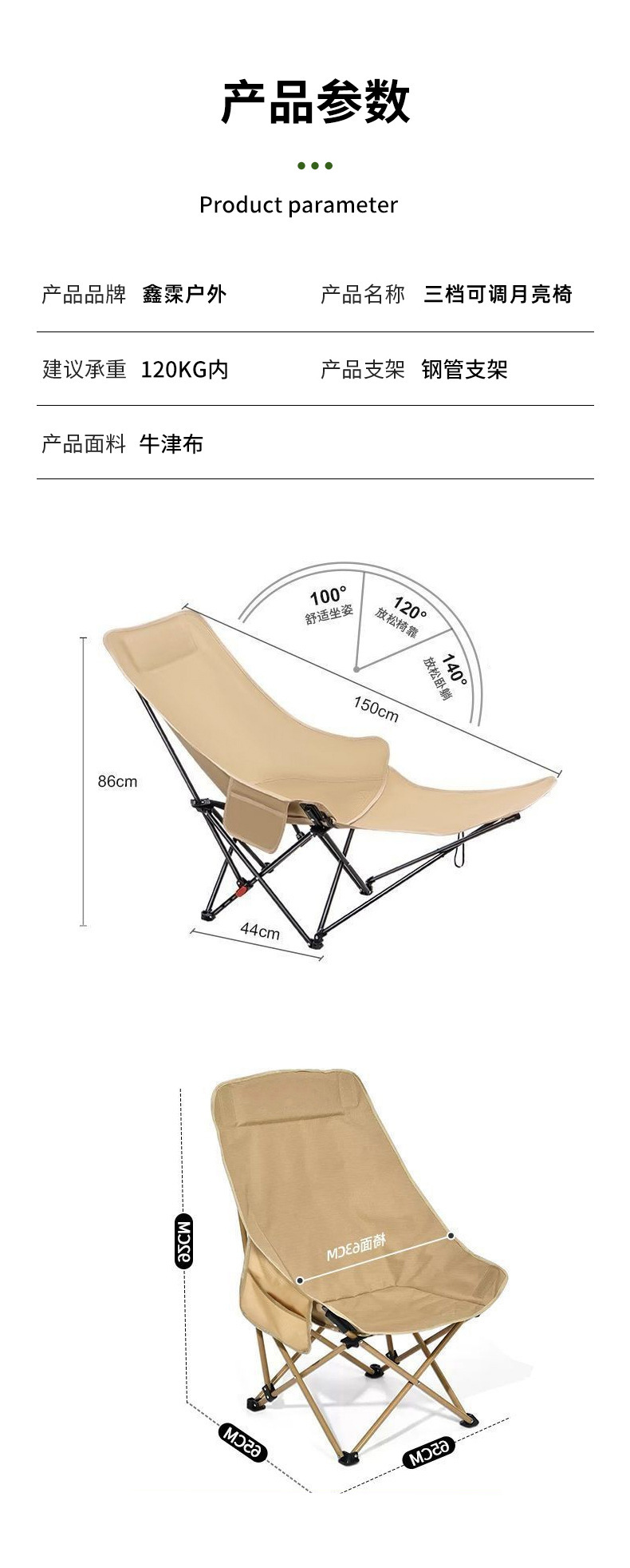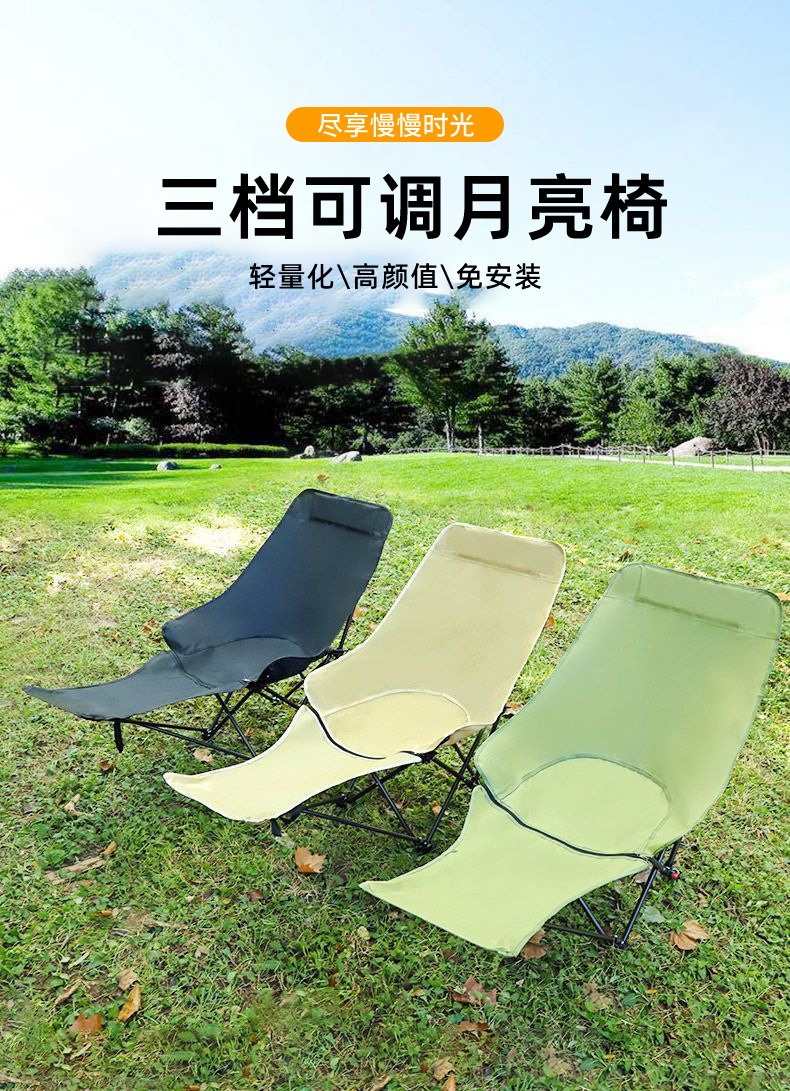 戶外躺椅可調節月亮椅戶外折疊椅可攜式野餐露營釣魚椅子辦公躺椅