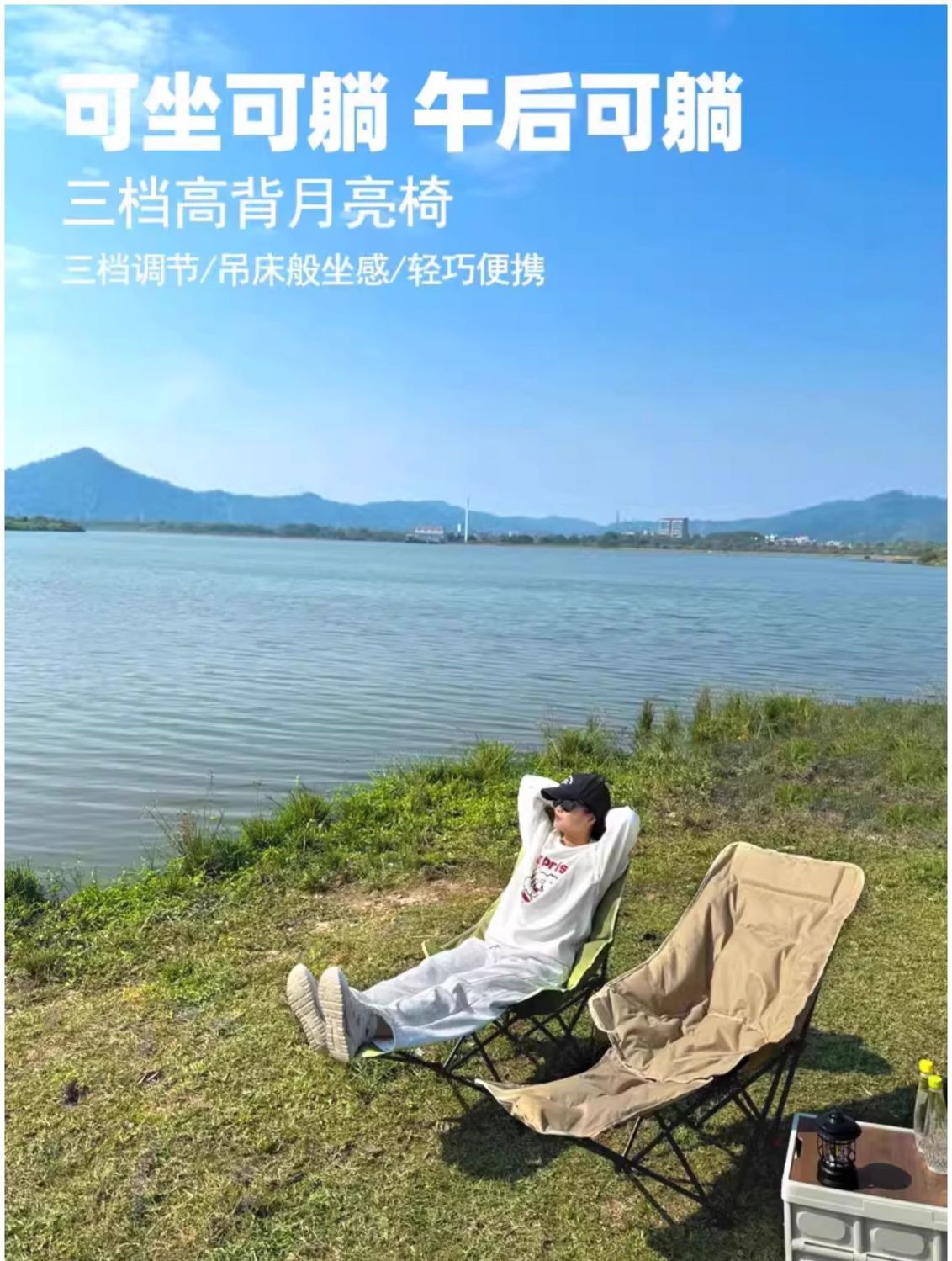 戶外躺椅折疊辦公午休月亮椅三擋調節靠背懶人沙發椅露營裝備