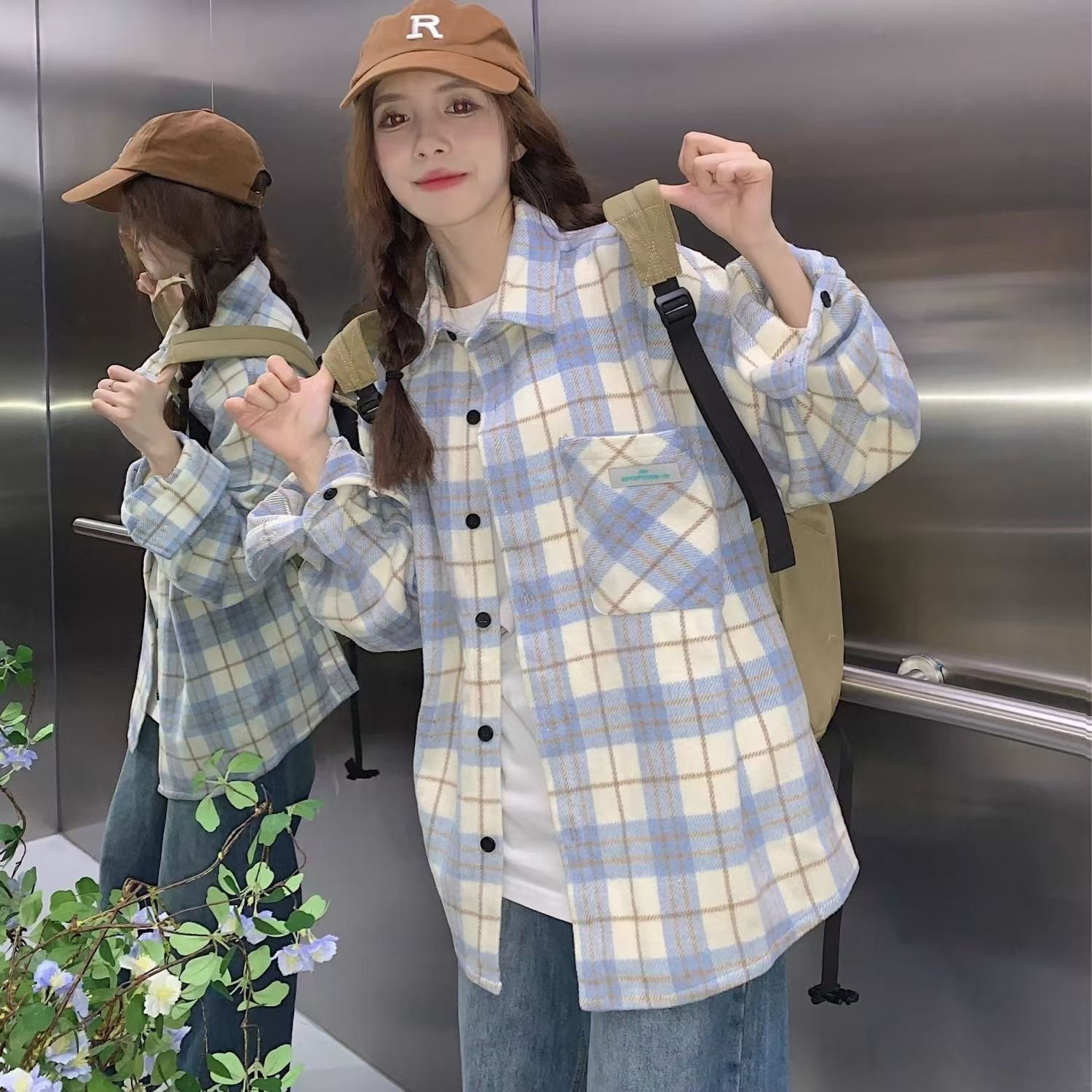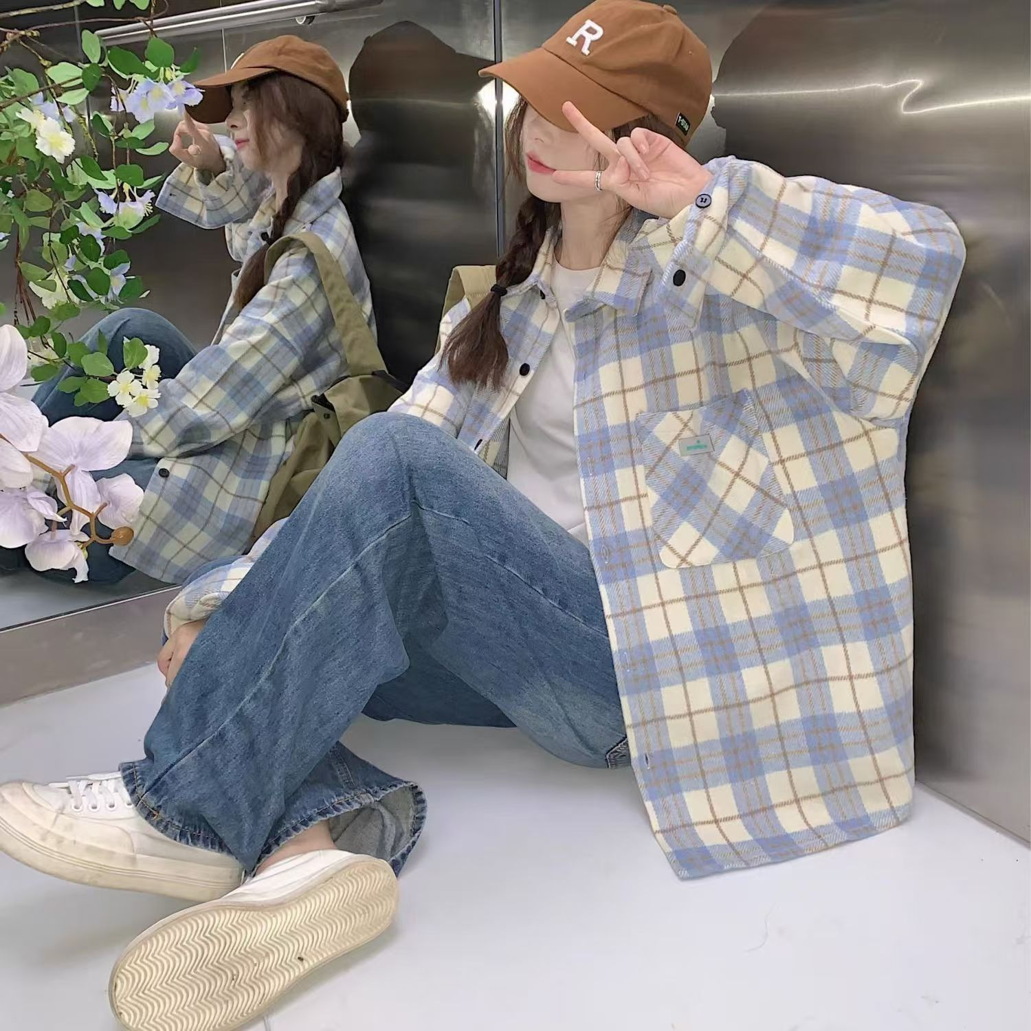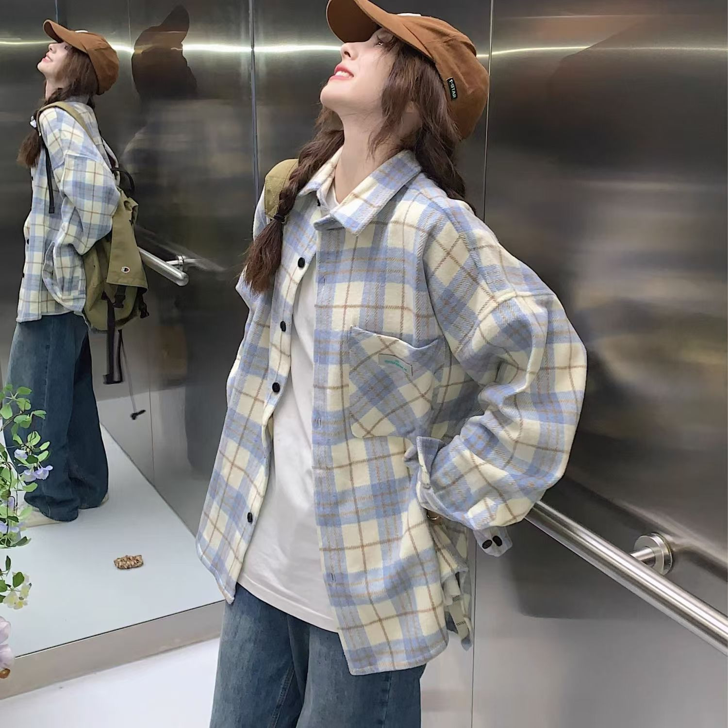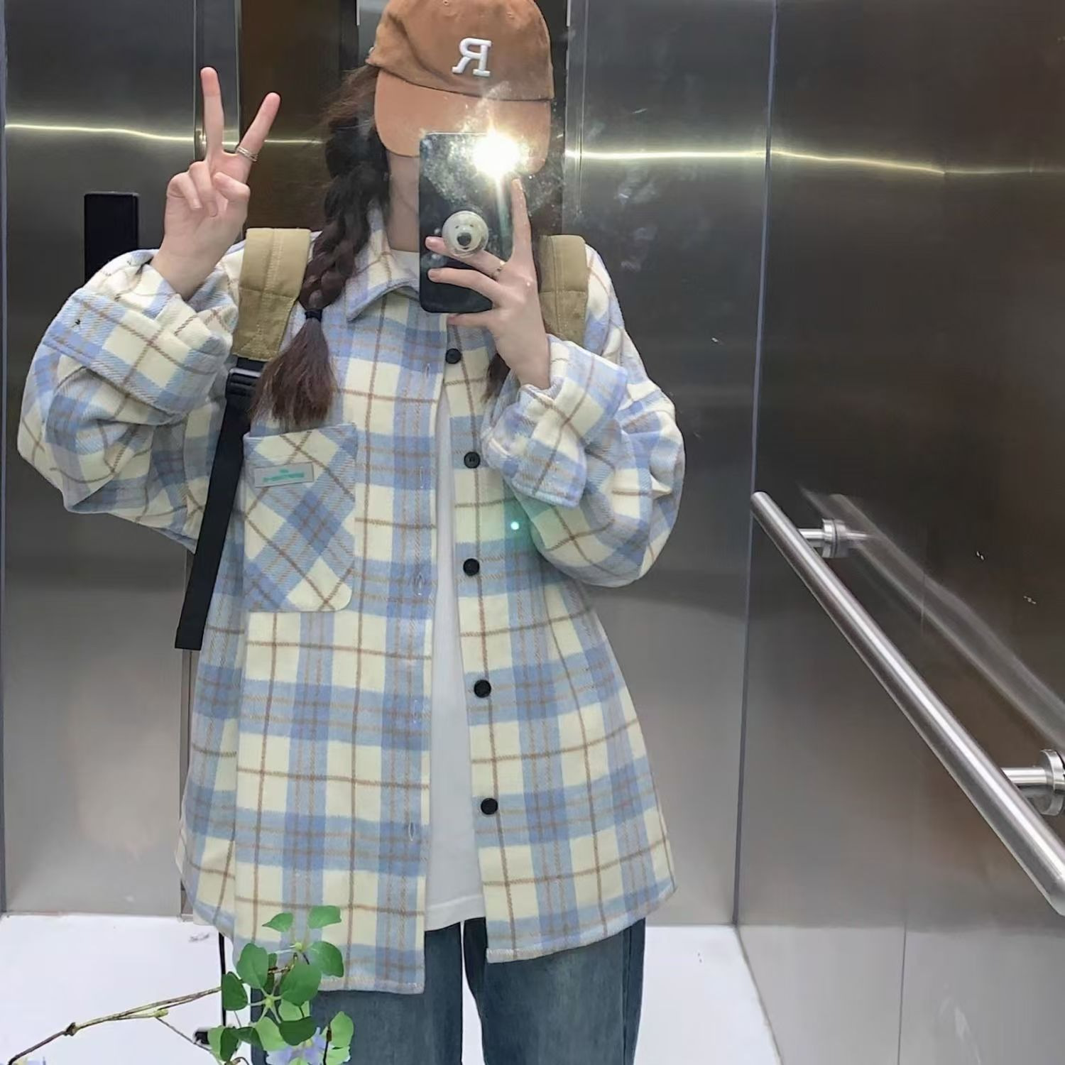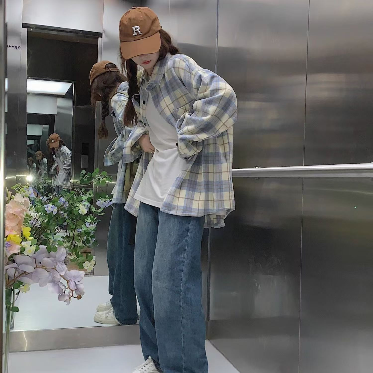 夏季日系格子襯衫女薄防曬衫外搭開衫通勤罩衫法式大碼外套上