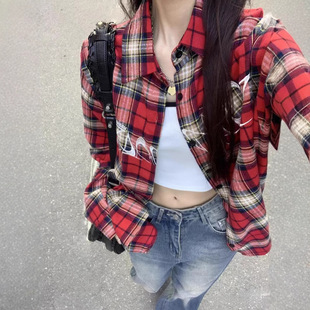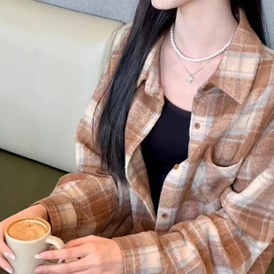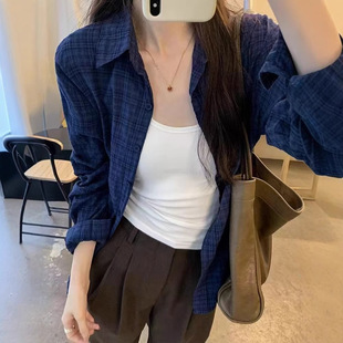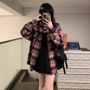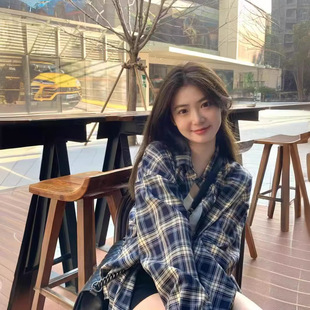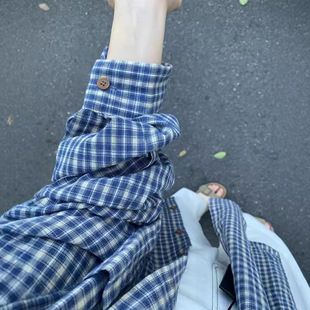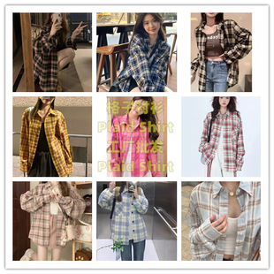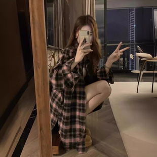 日系女裝秋季爆款格子襯衣薄開衫防曬衫大碼罩衫法式外搭