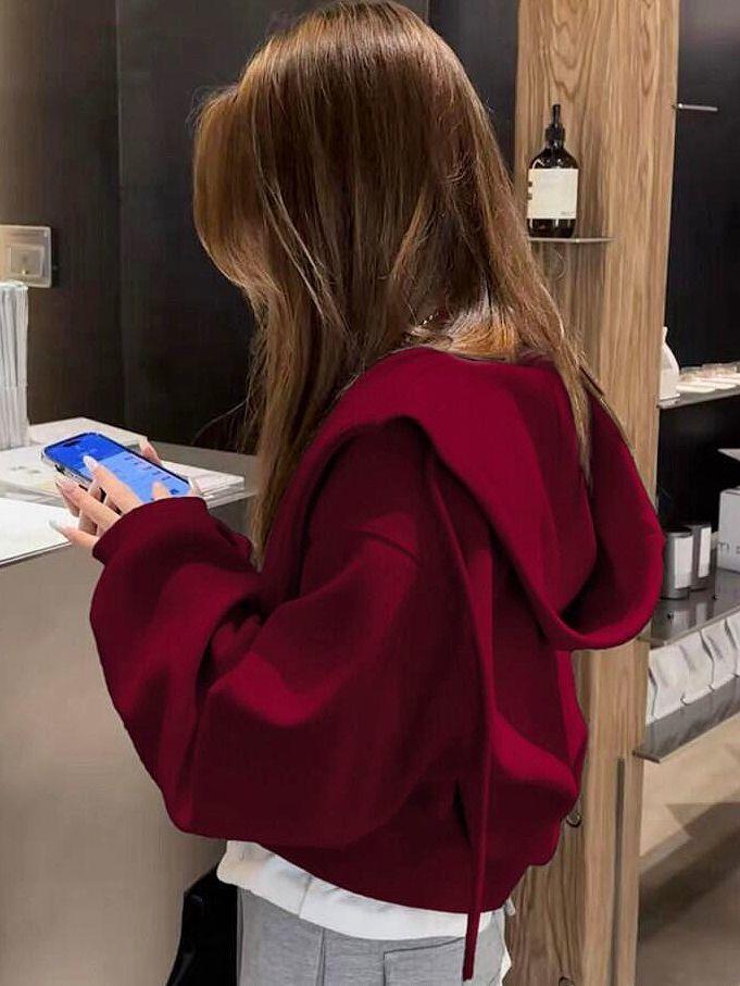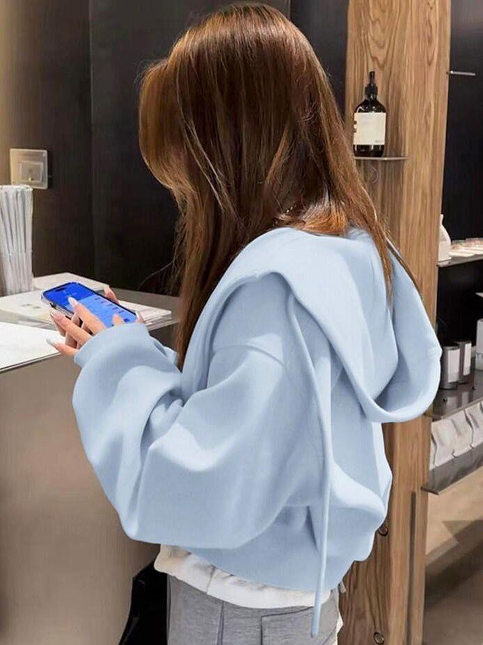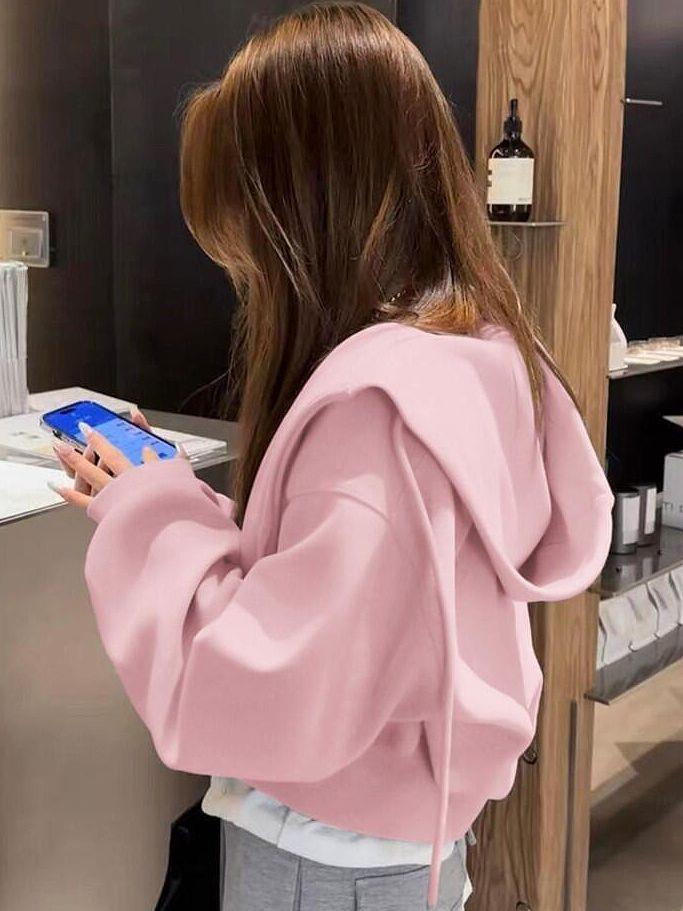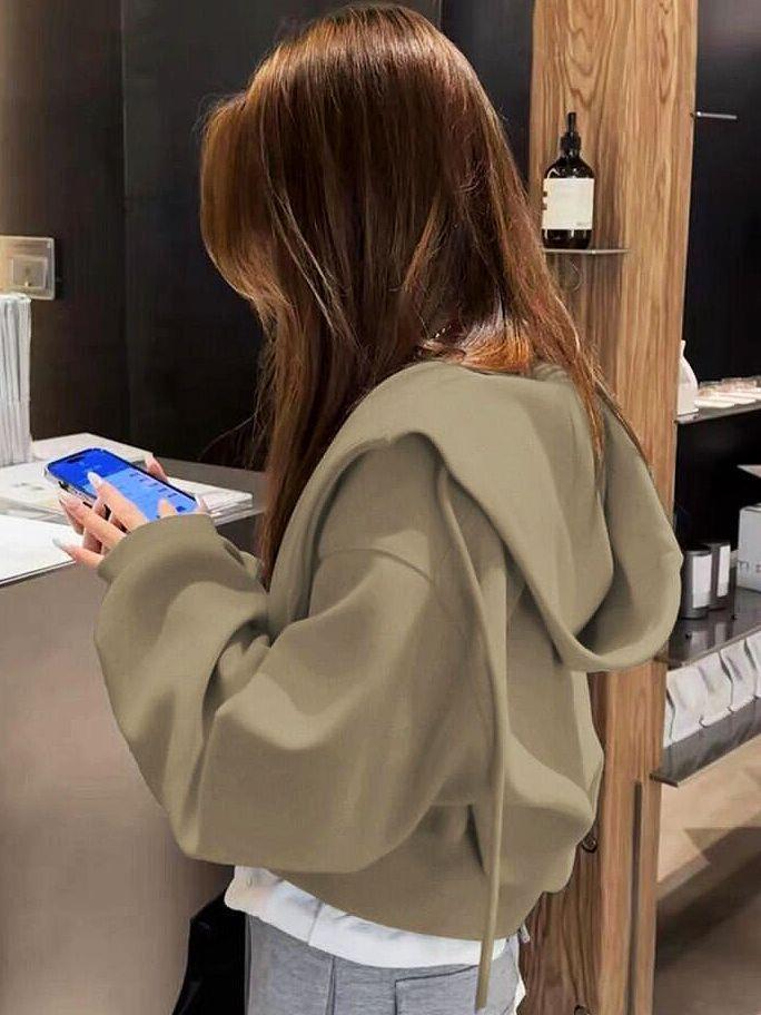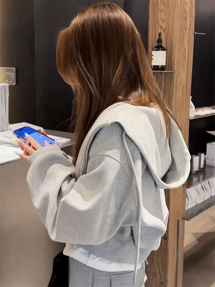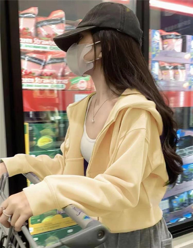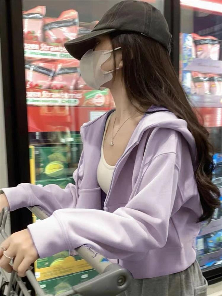 春秋款初秋豆綠色連帽衛衣女ins小個子拉鍊短款外套開衫曡穿上衣