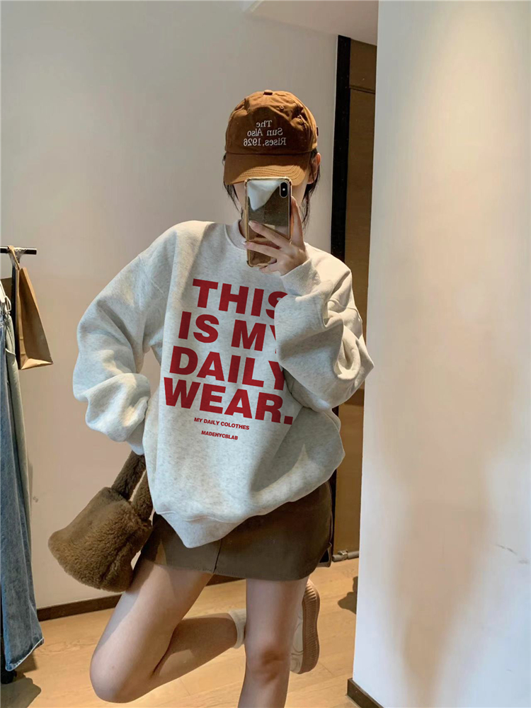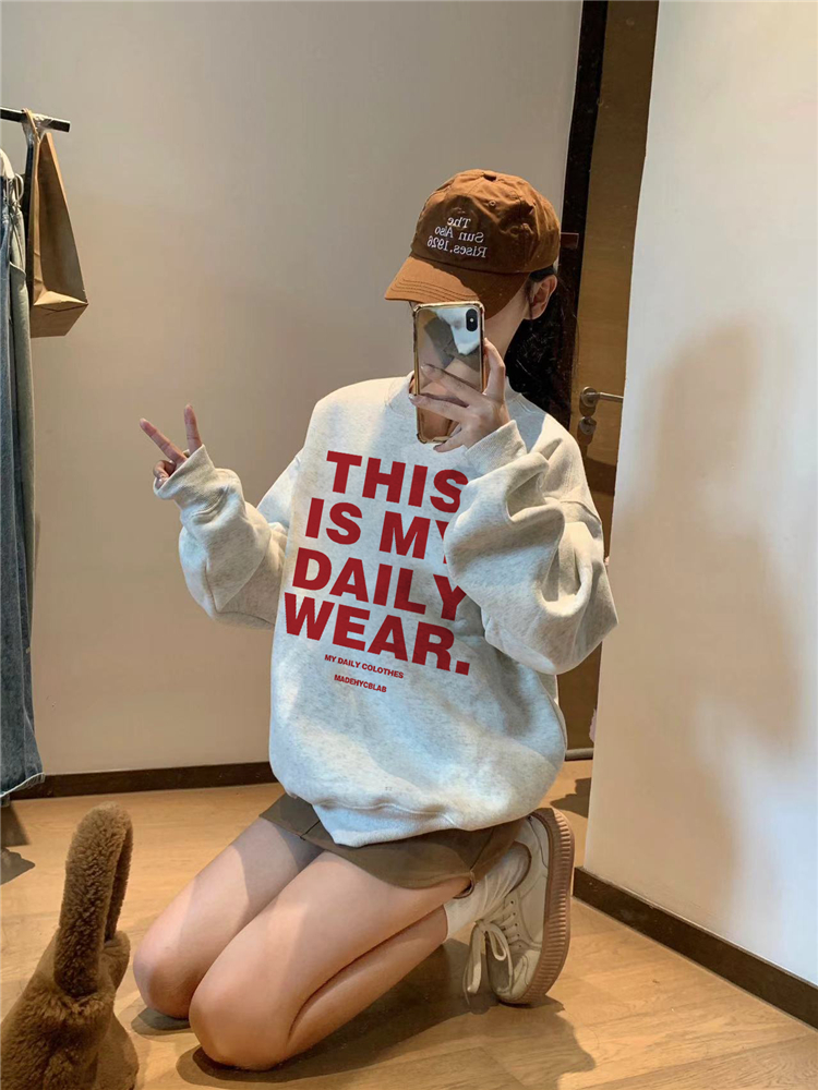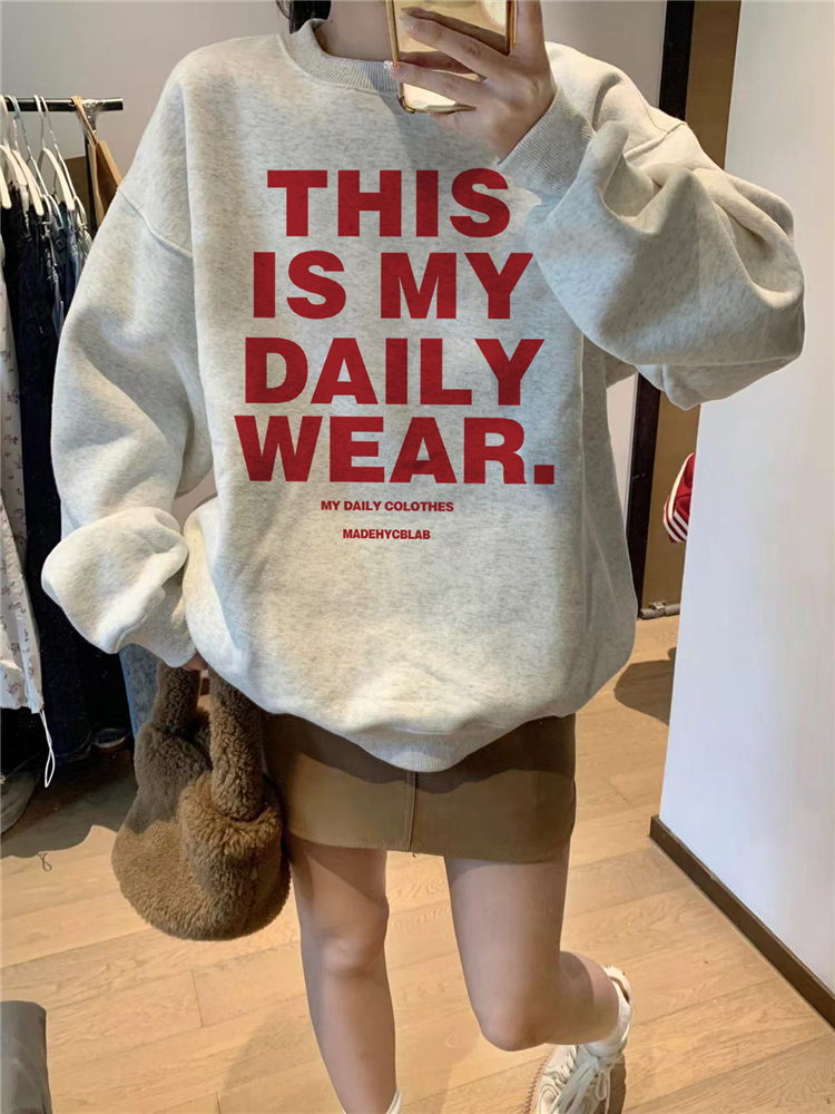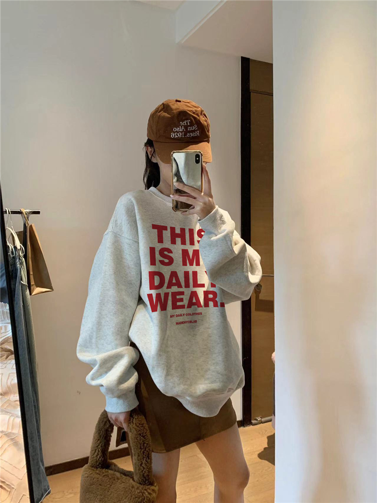 灰色純棉圓領無帽衛衣女2025新款爆款春秋寬松小衆設計感加絨上衣
