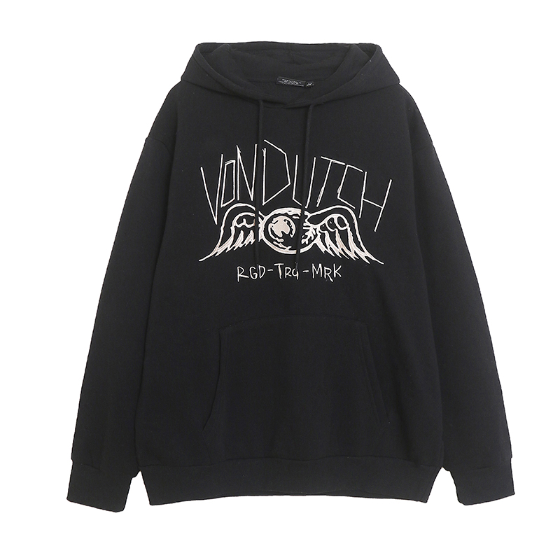 秋冬季潮流字母印花衛衣女士連帽薄絨百搭寬松大碼bf休閒帽衫