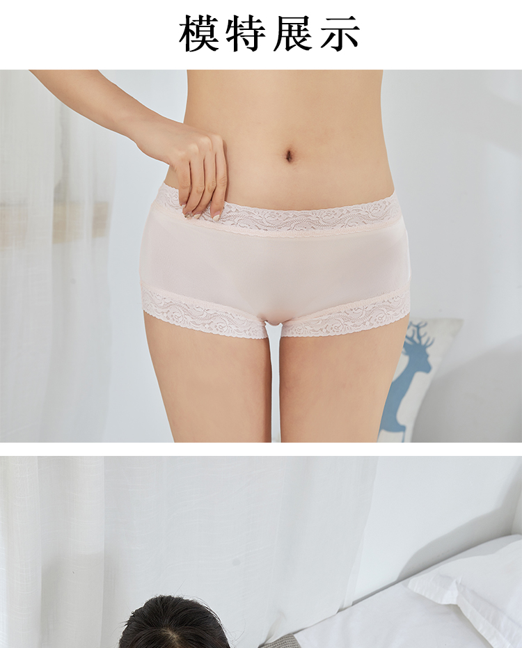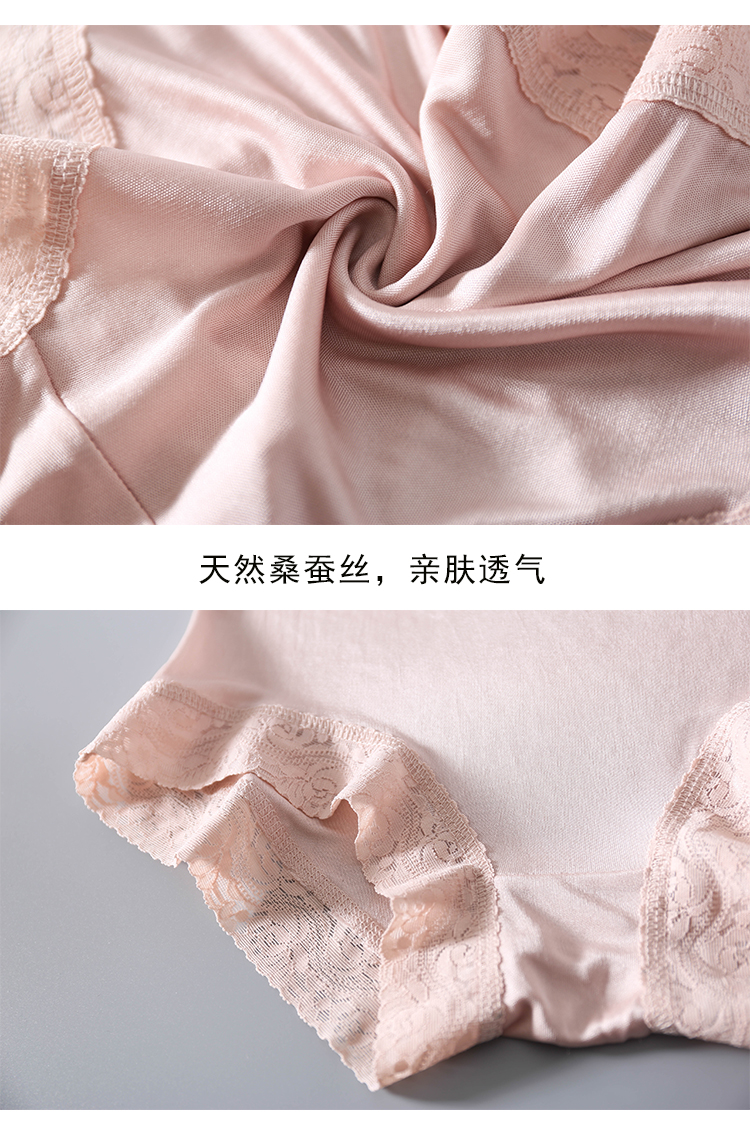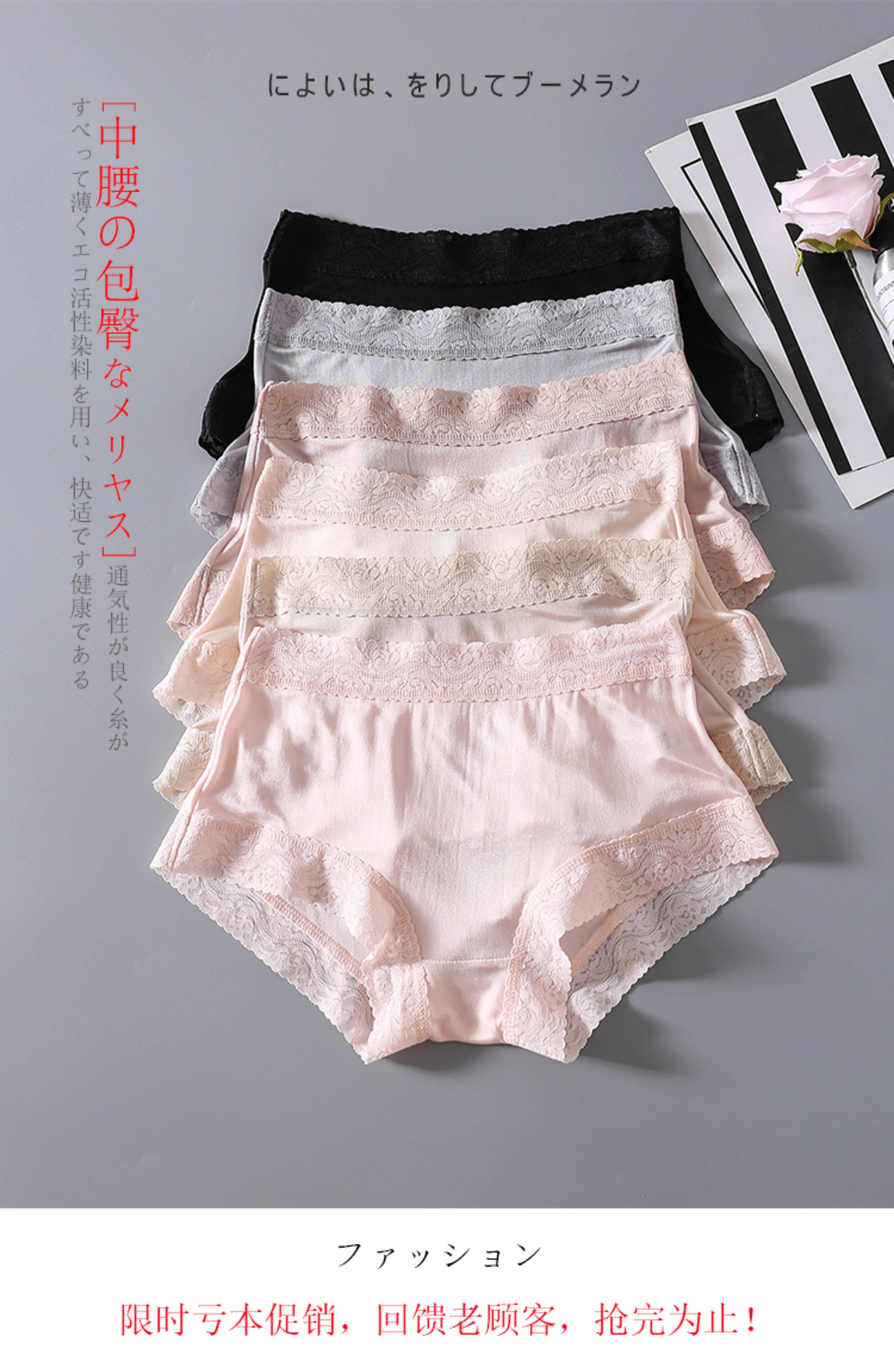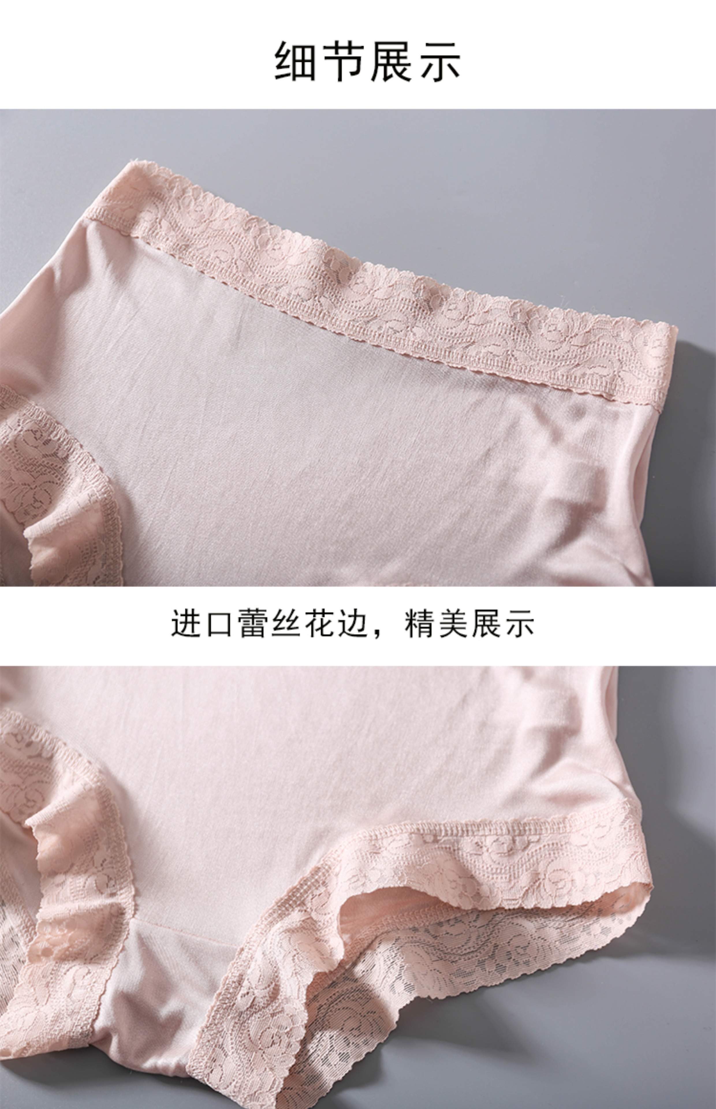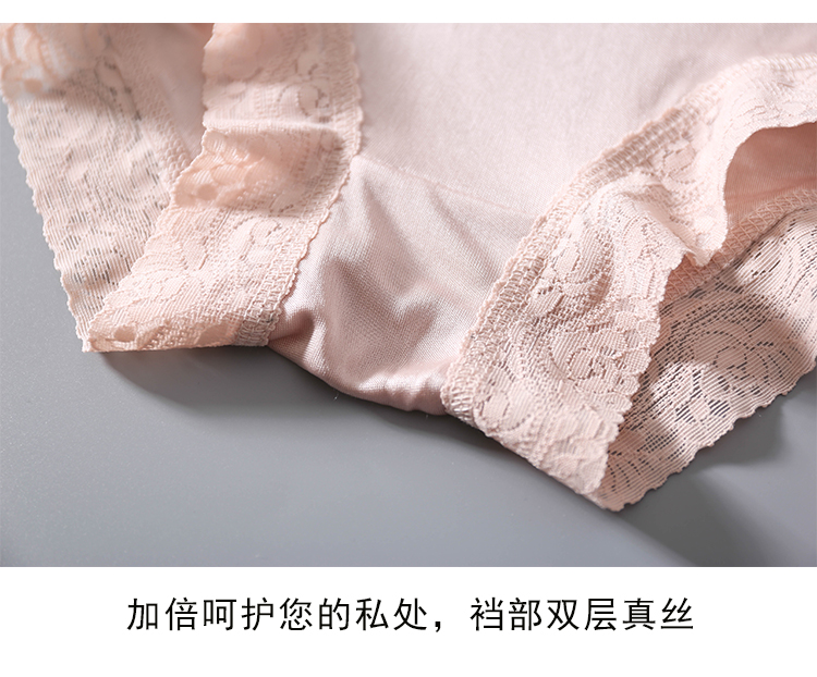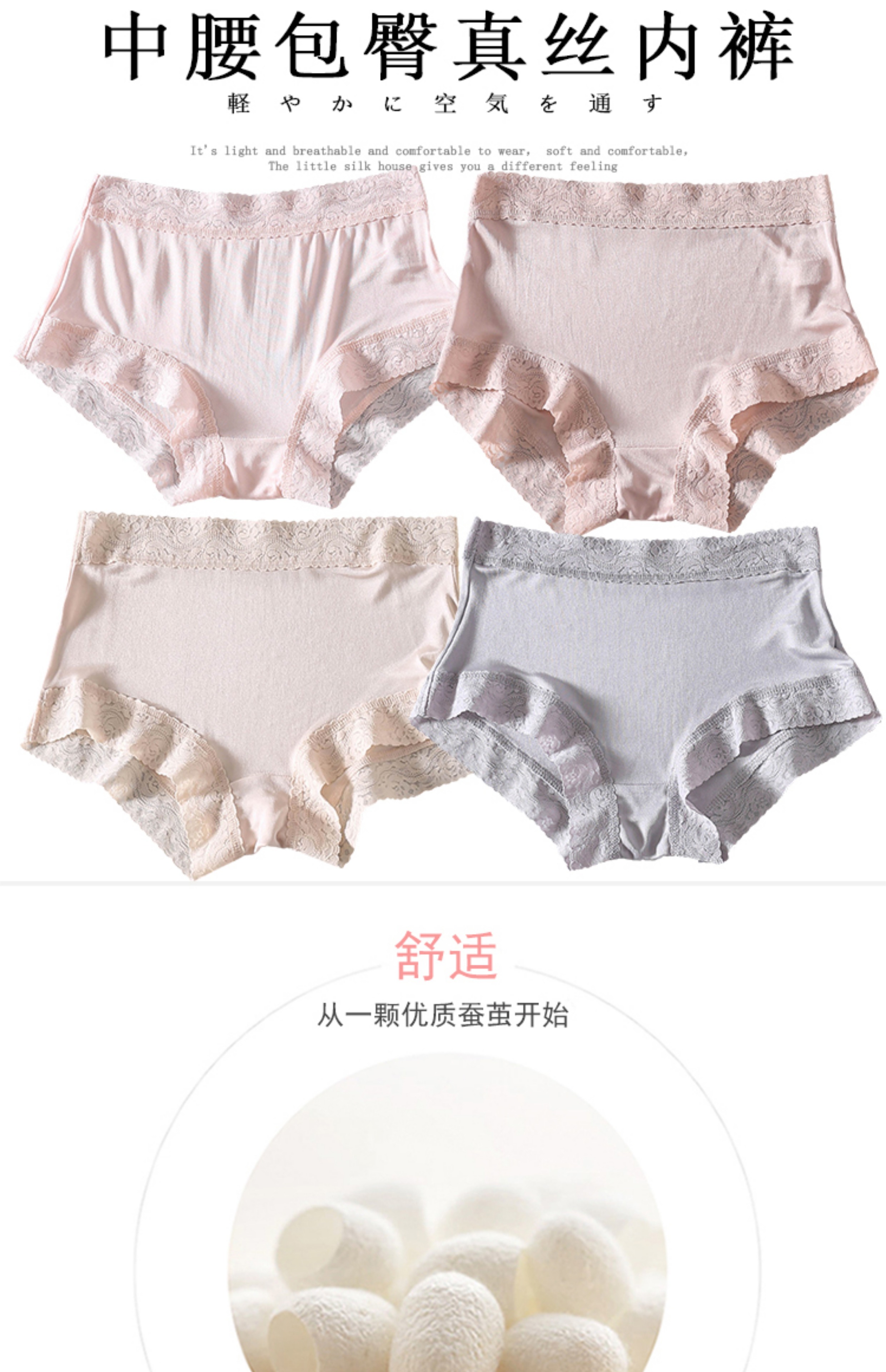 中腰桑蠶絲真絲內褲女 透氣舒適蕾絲包臀性感大碼無痕平角內褲