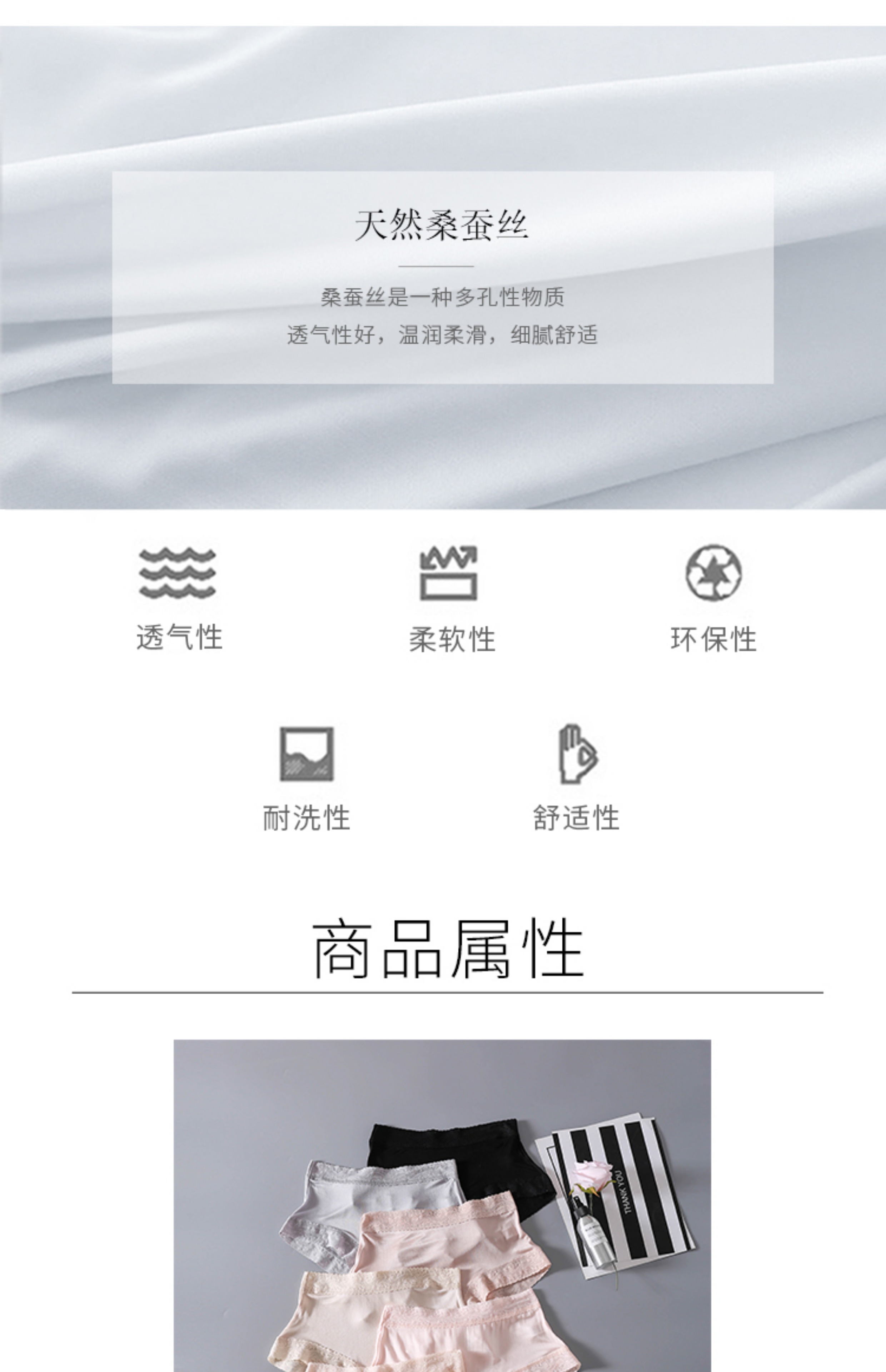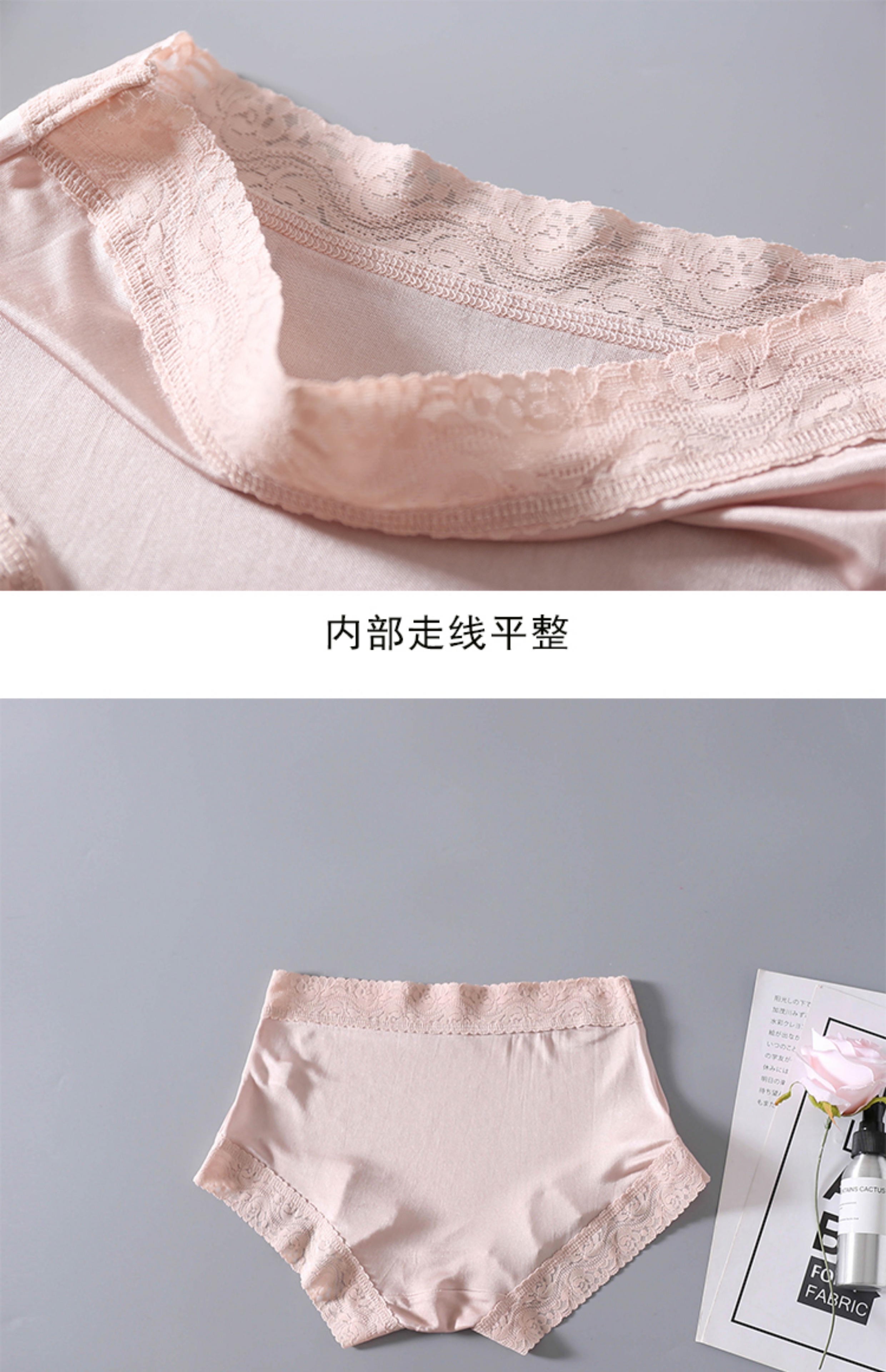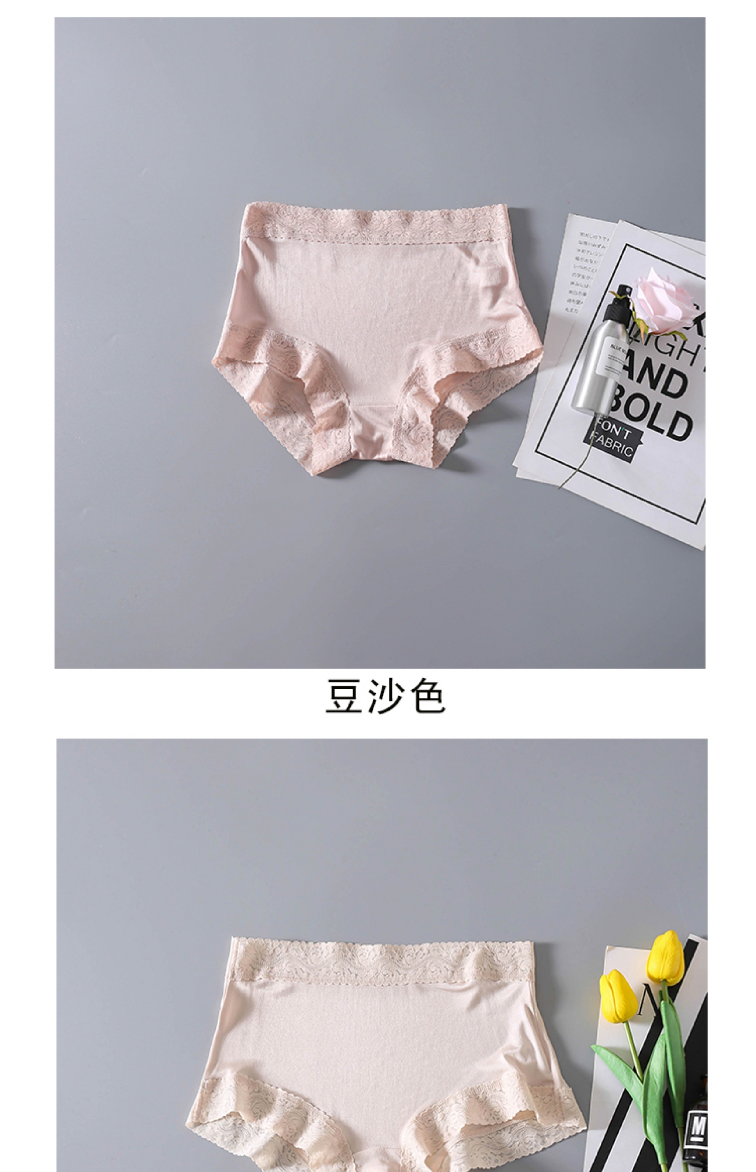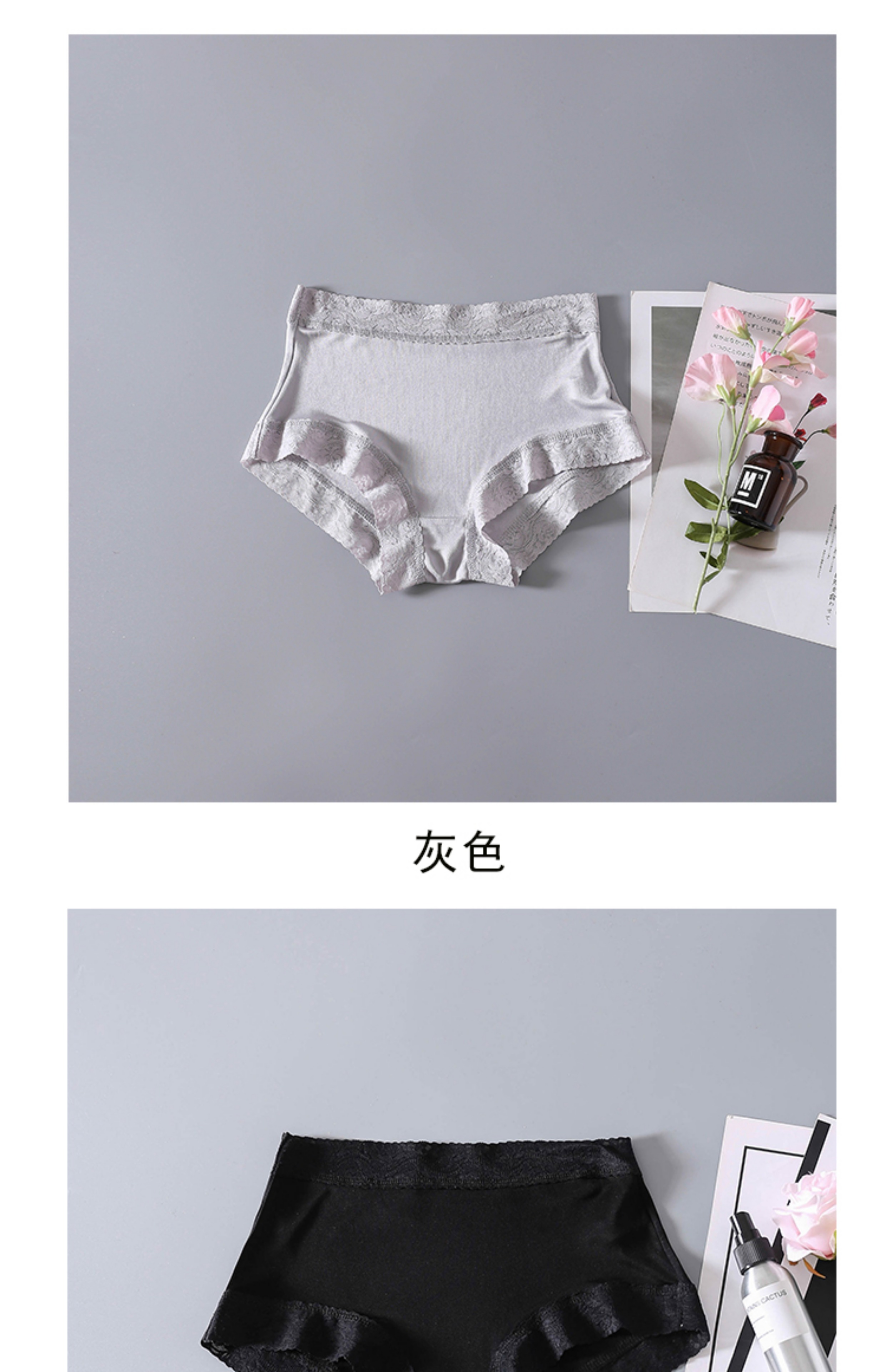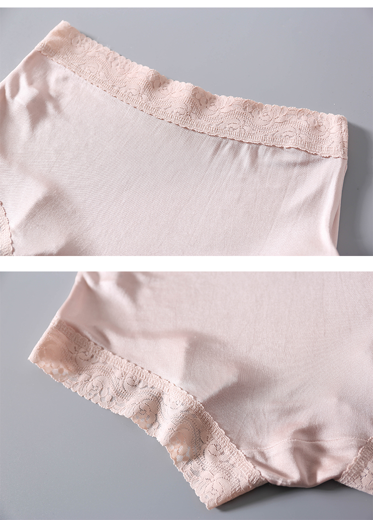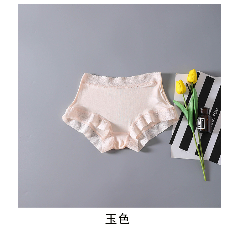 中腰桑蠶絲真絲內褲女 透氣舒適蕾絲包臀性感大碼無痕平角內褲