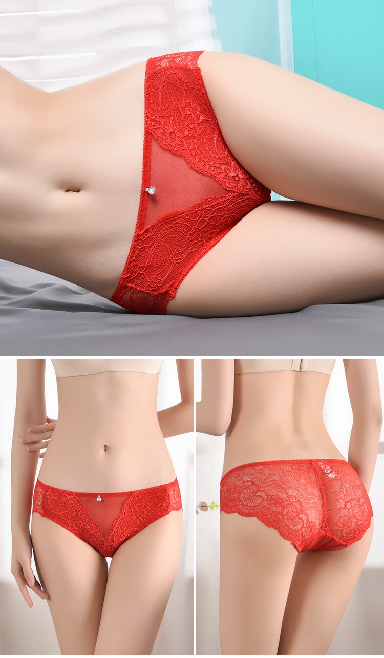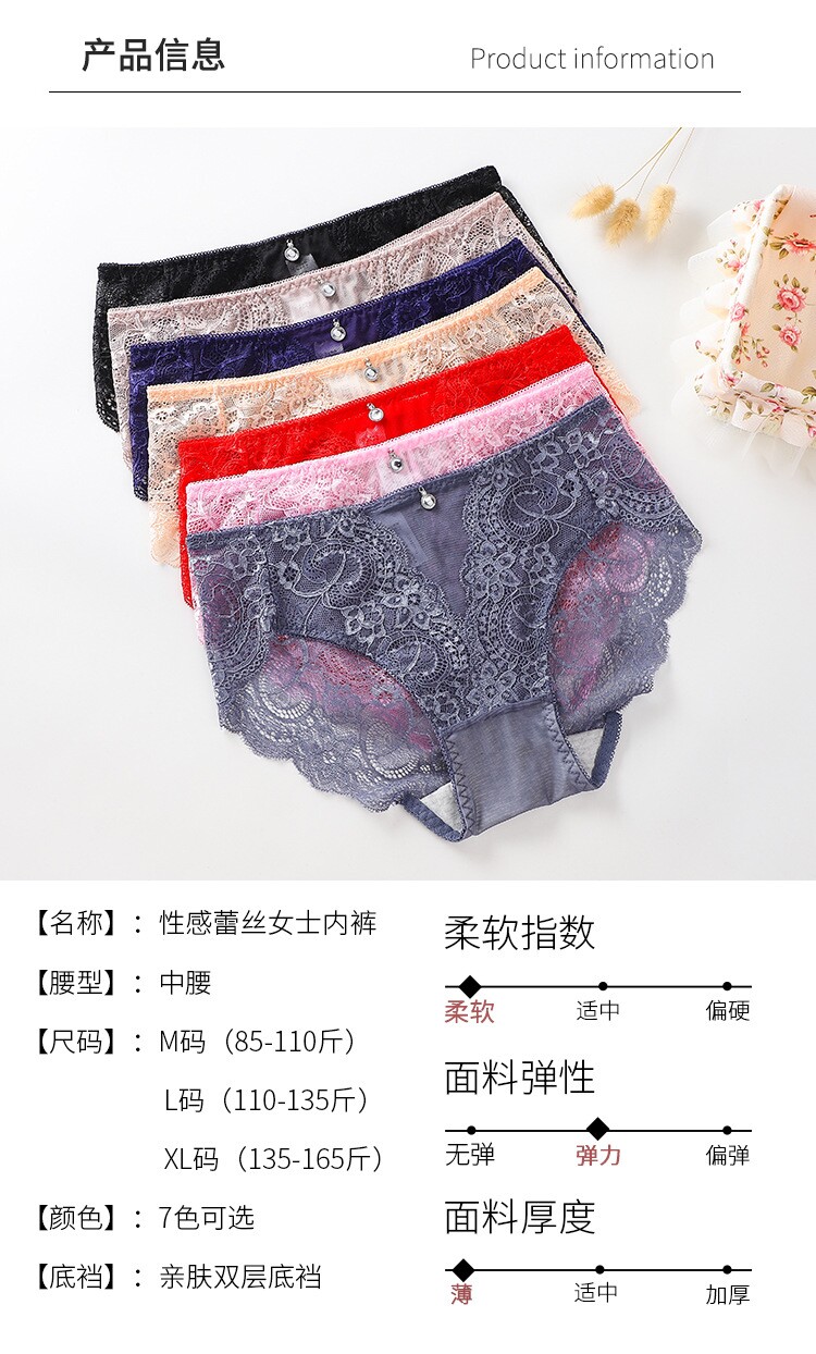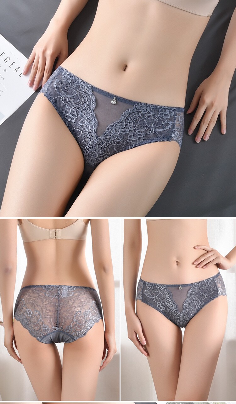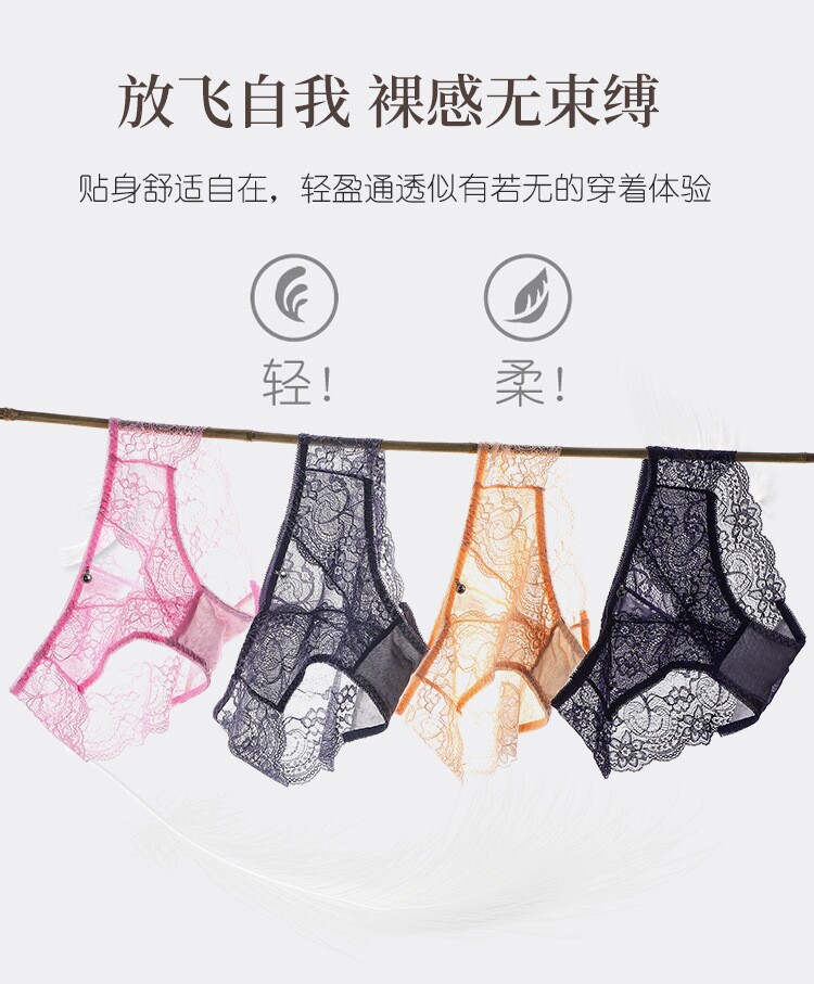 性感內褲女士蕾絲網紗中低腰純棉抗菌襠三角褲超薄透氣誘惑短褲頭