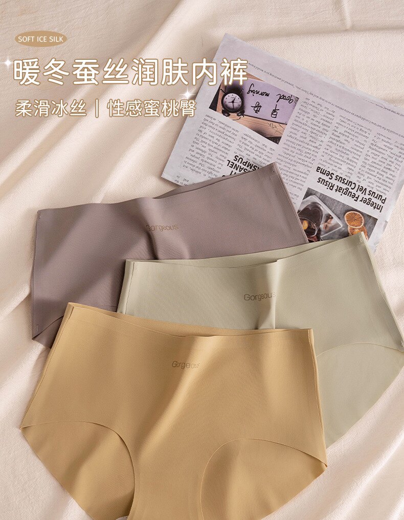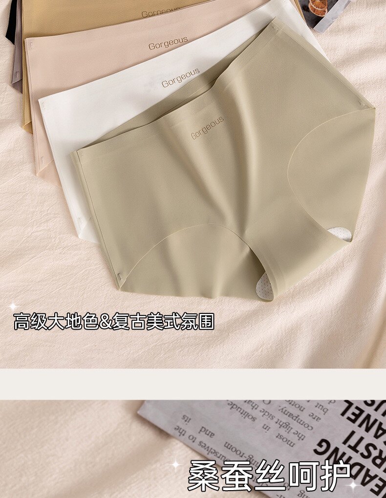 運動無痕內褲女士桑蠶絲夏季薄款中腰瑜珈不夾臀7a抗菌三角內褲