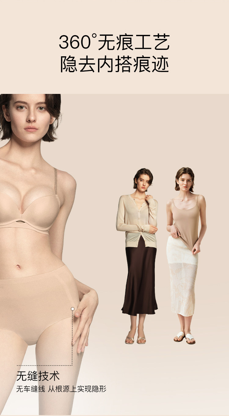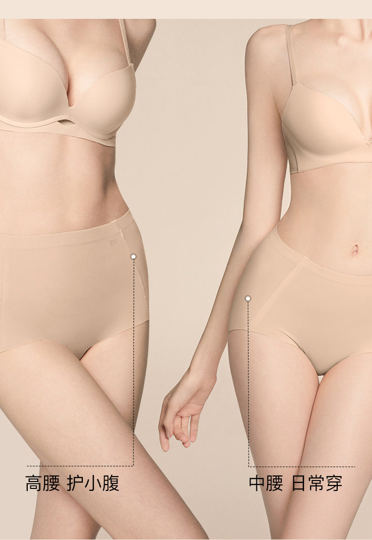 ubras中高腰粉底液無痕隱形內褲女薄款純棉抗菌襠大碼膚色三角褲