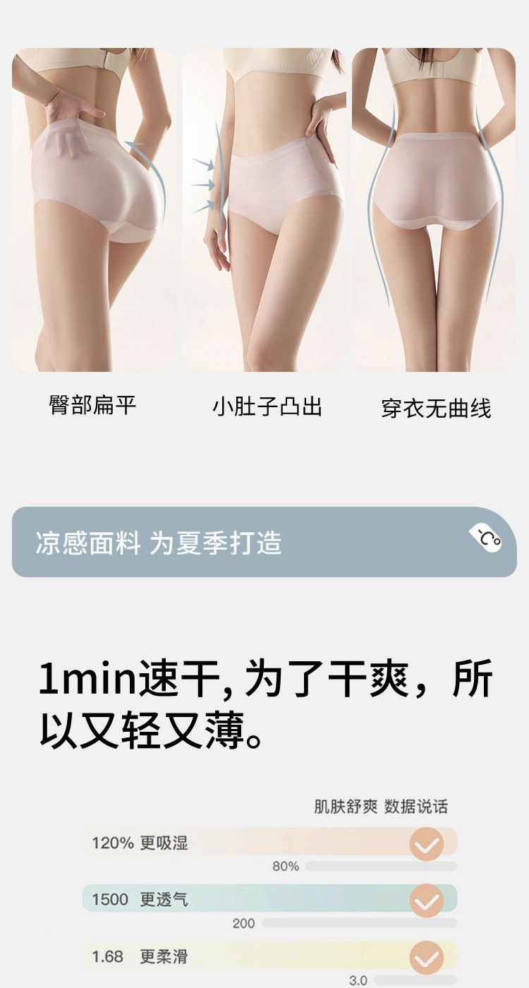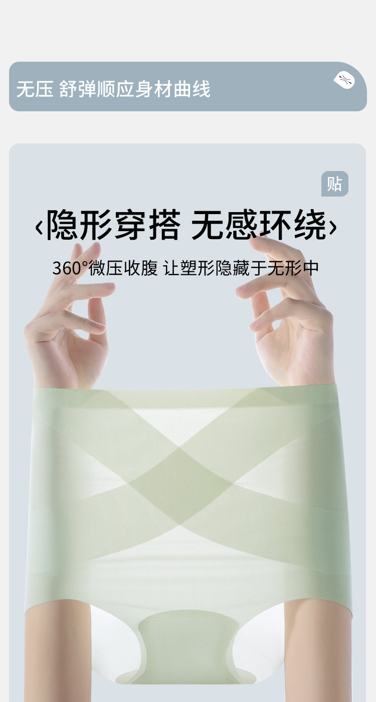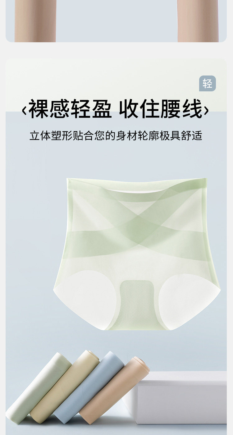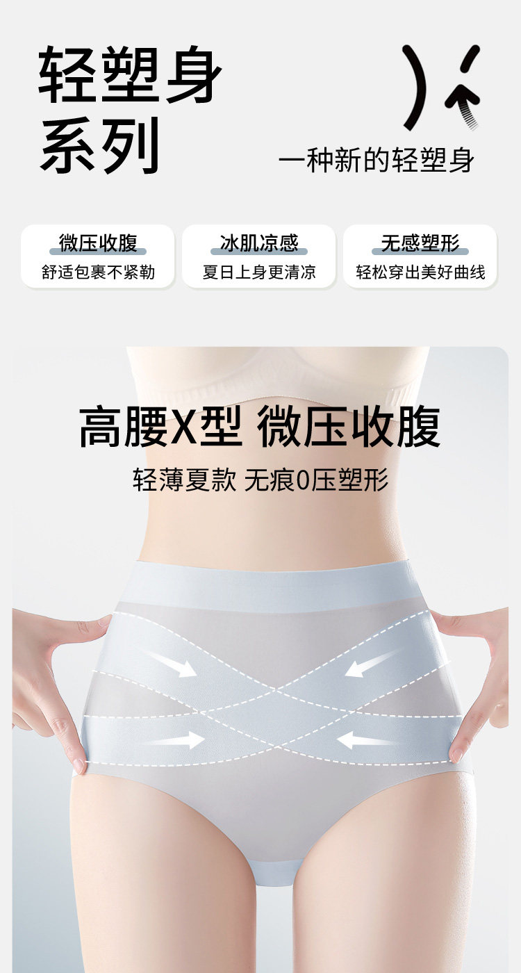 貓人高腰內褲女士冰絲三角褲無痕夏季薄款收腹提臀輕塑身大碼短褲