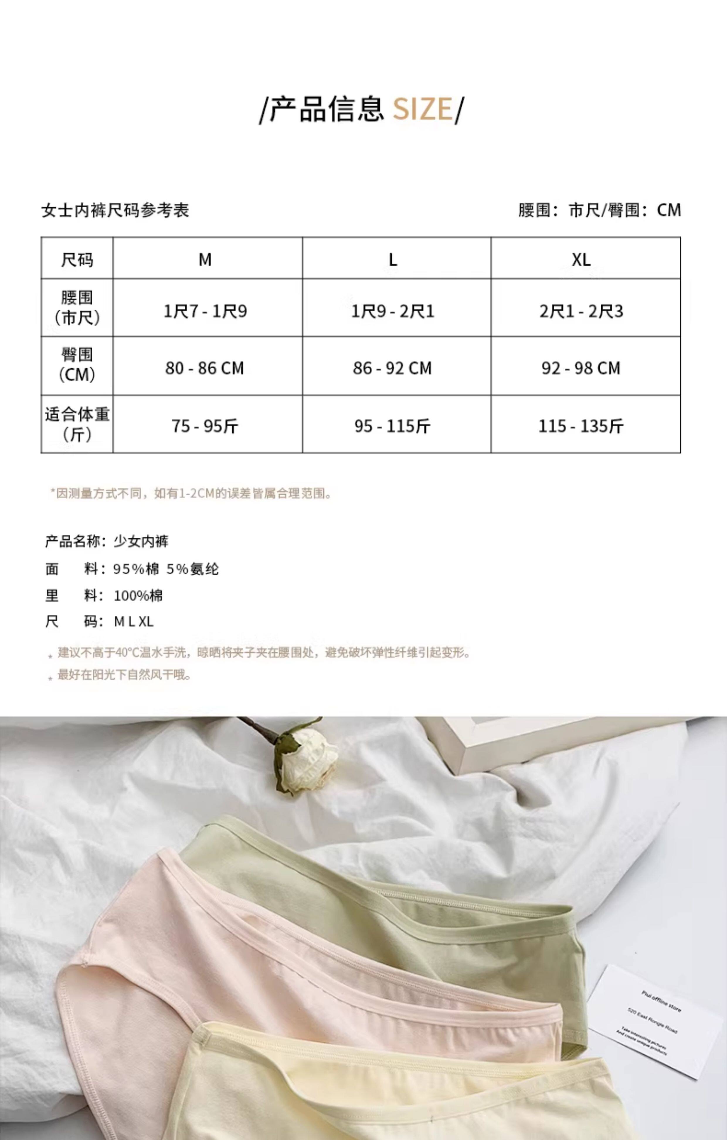 健丹鳥內褲女士純棉抗菌襠純色簡約中腰甜美少女夏季新款三角短褲