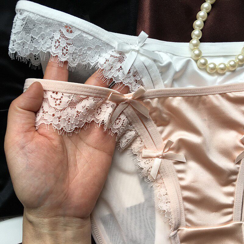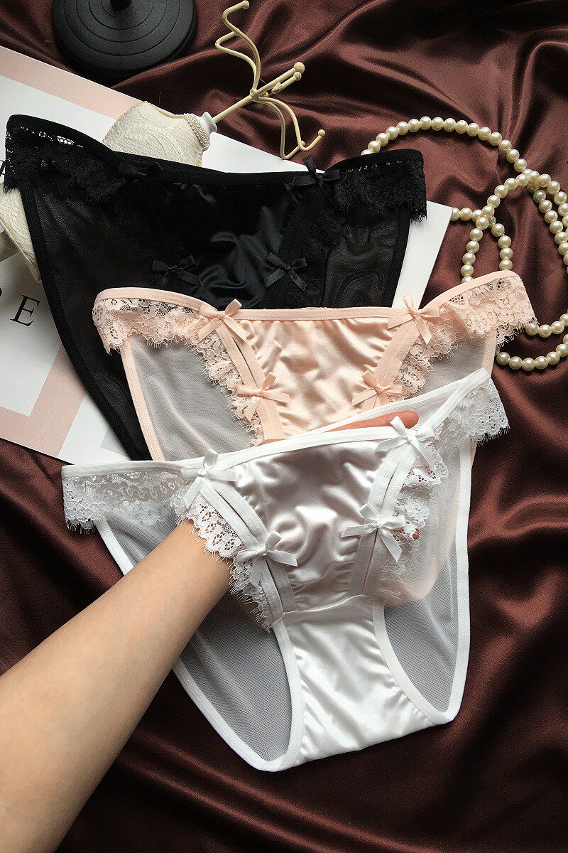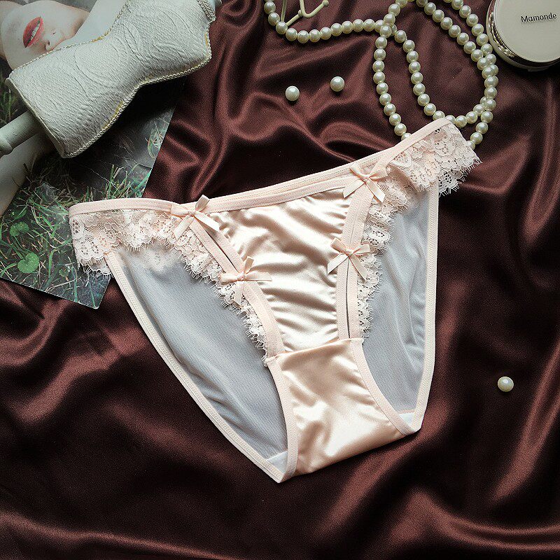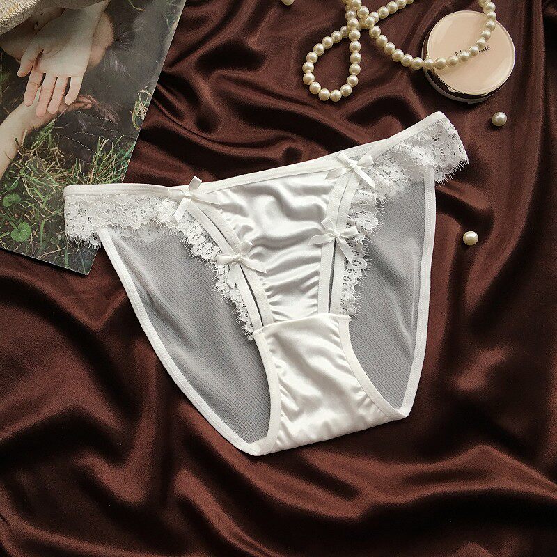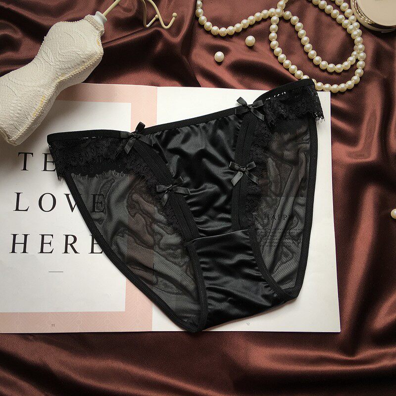 奢華純欲風舒適絲滑緞面性感蕾絲網紗透明鏤空中低腰三角內褲女