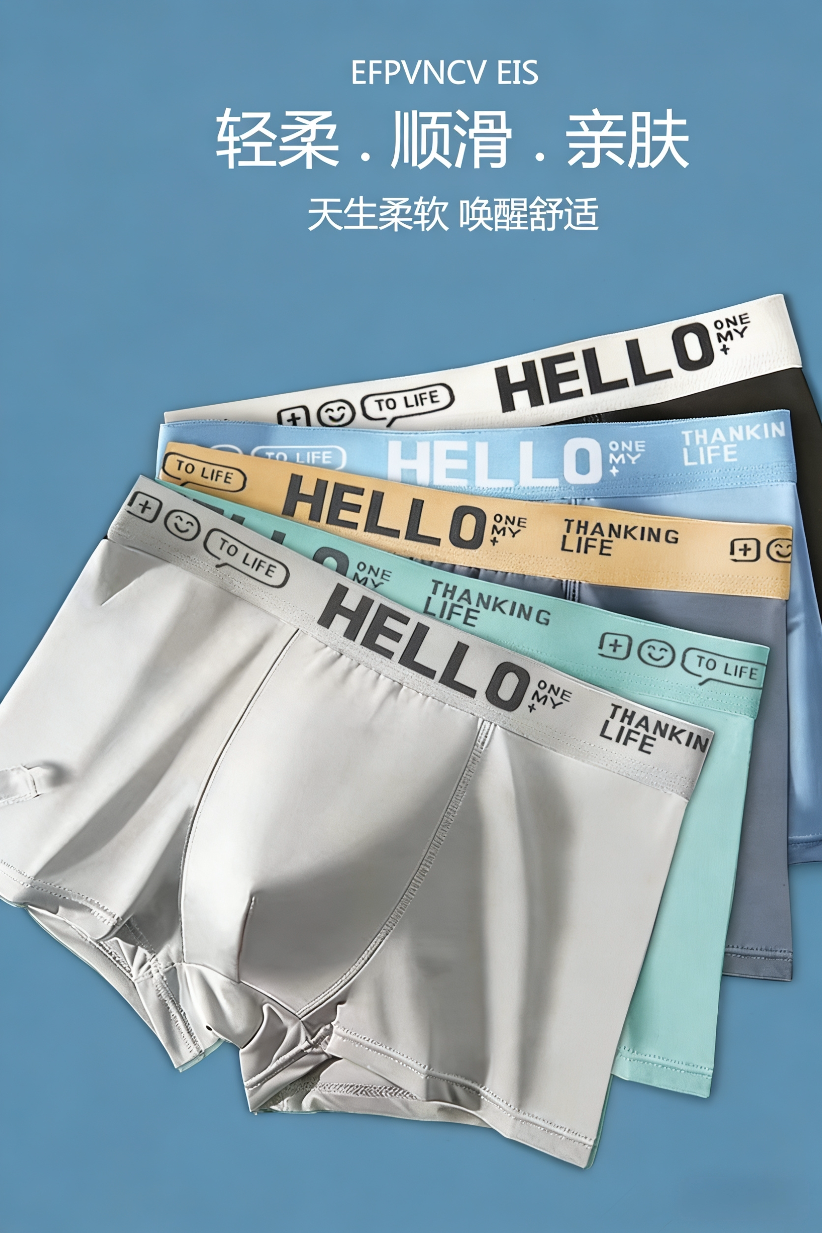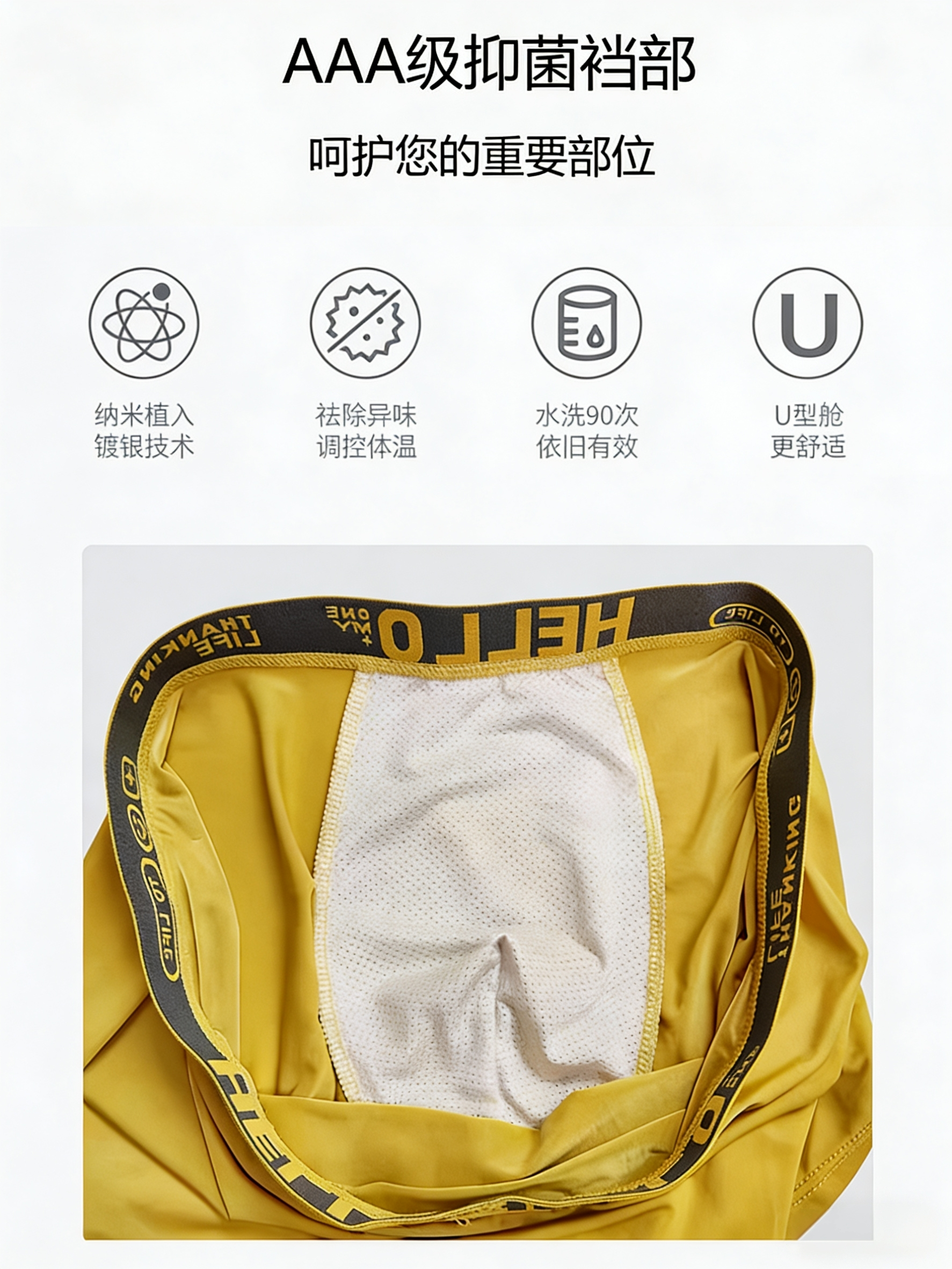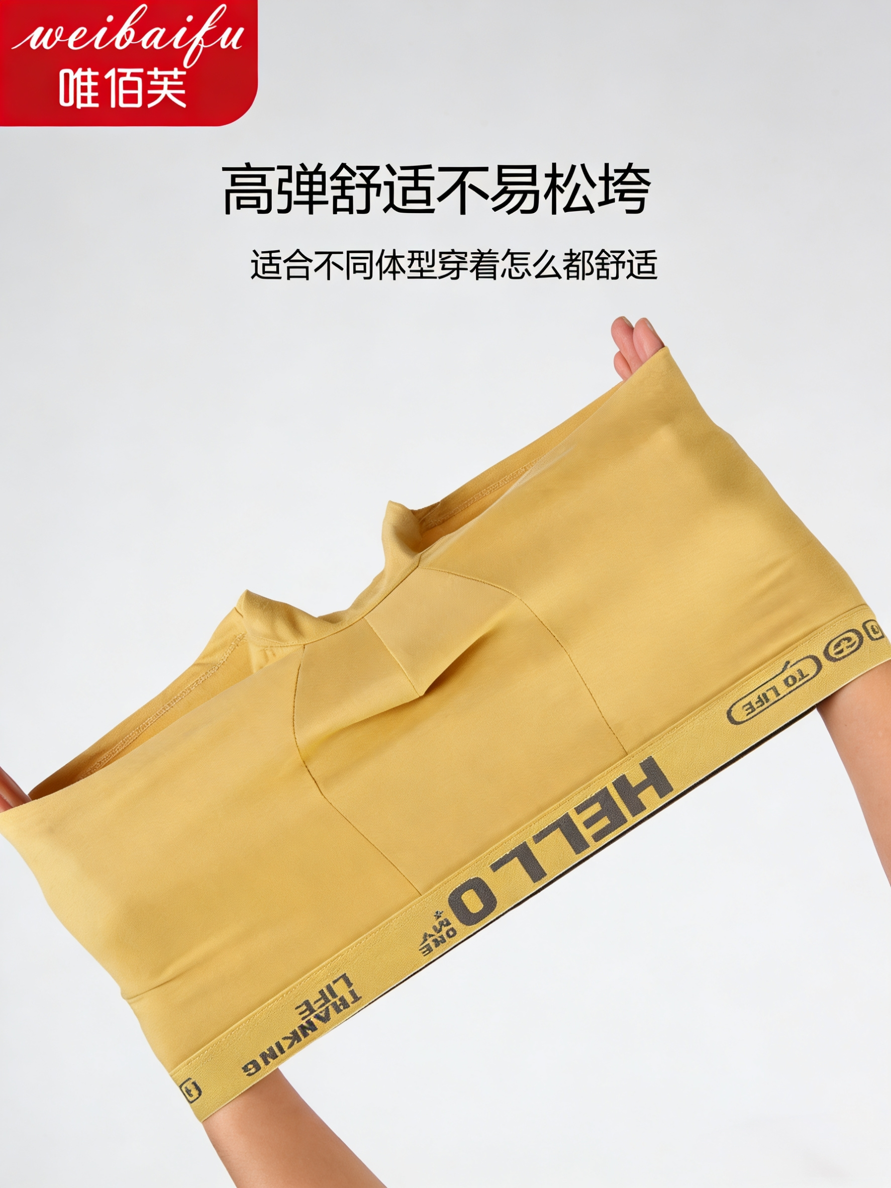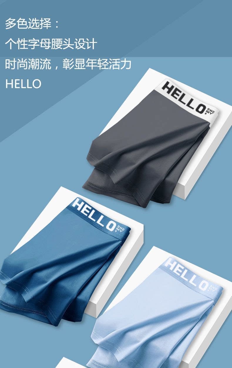 唯佰芙新款男內褲冰絲石墨烯抑菌薄款透氣平四角短褲頭成人學生