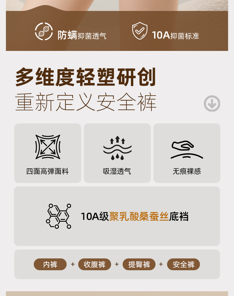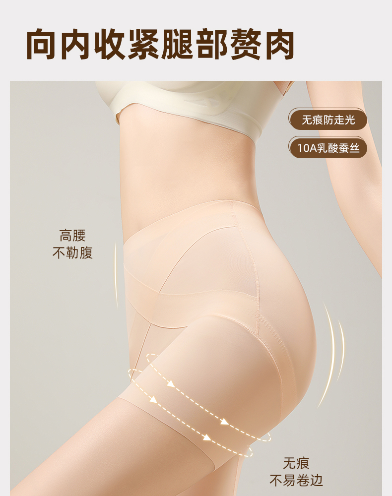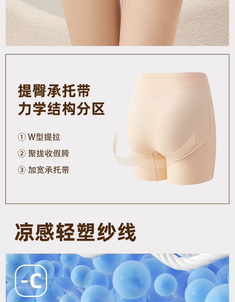 貓人冰絲無痕安全褲防走光女收腹提臀夏薄款二三合一不卷邊打底褲