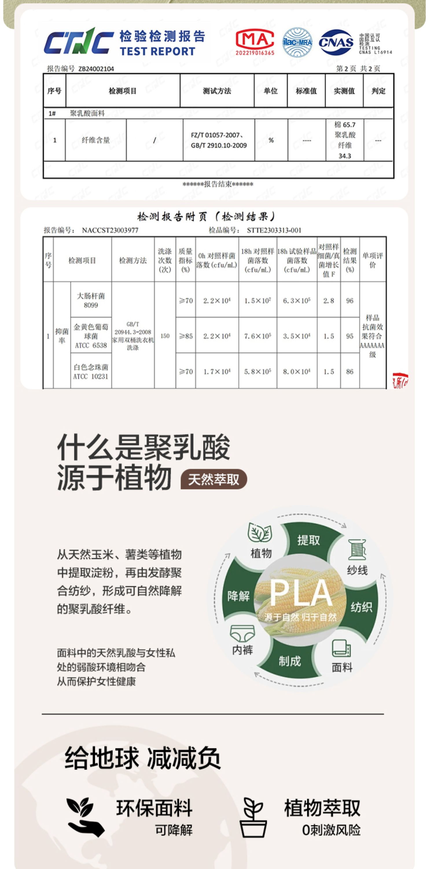| 襠部材質成分 | 粘膠纖維(粘纖)46% 棉34% 聚乳酸纖維(PLA)16% 桑蠶絲4% |