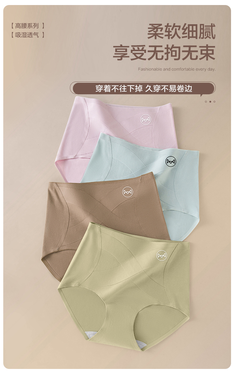 貓人高腰收腹內褲女士純棉抗菌無痕不夾臀大碼女生三角褲2025新款