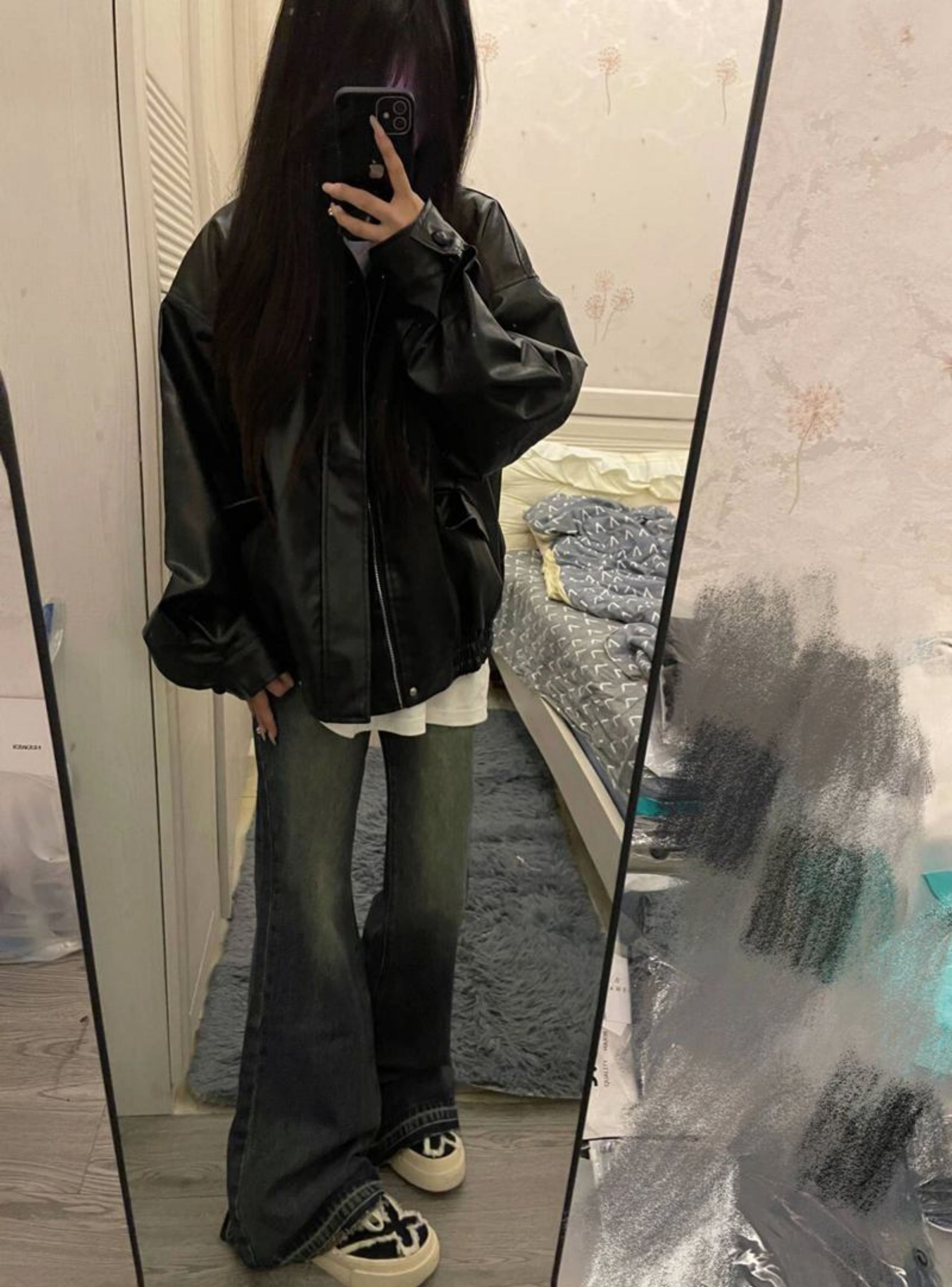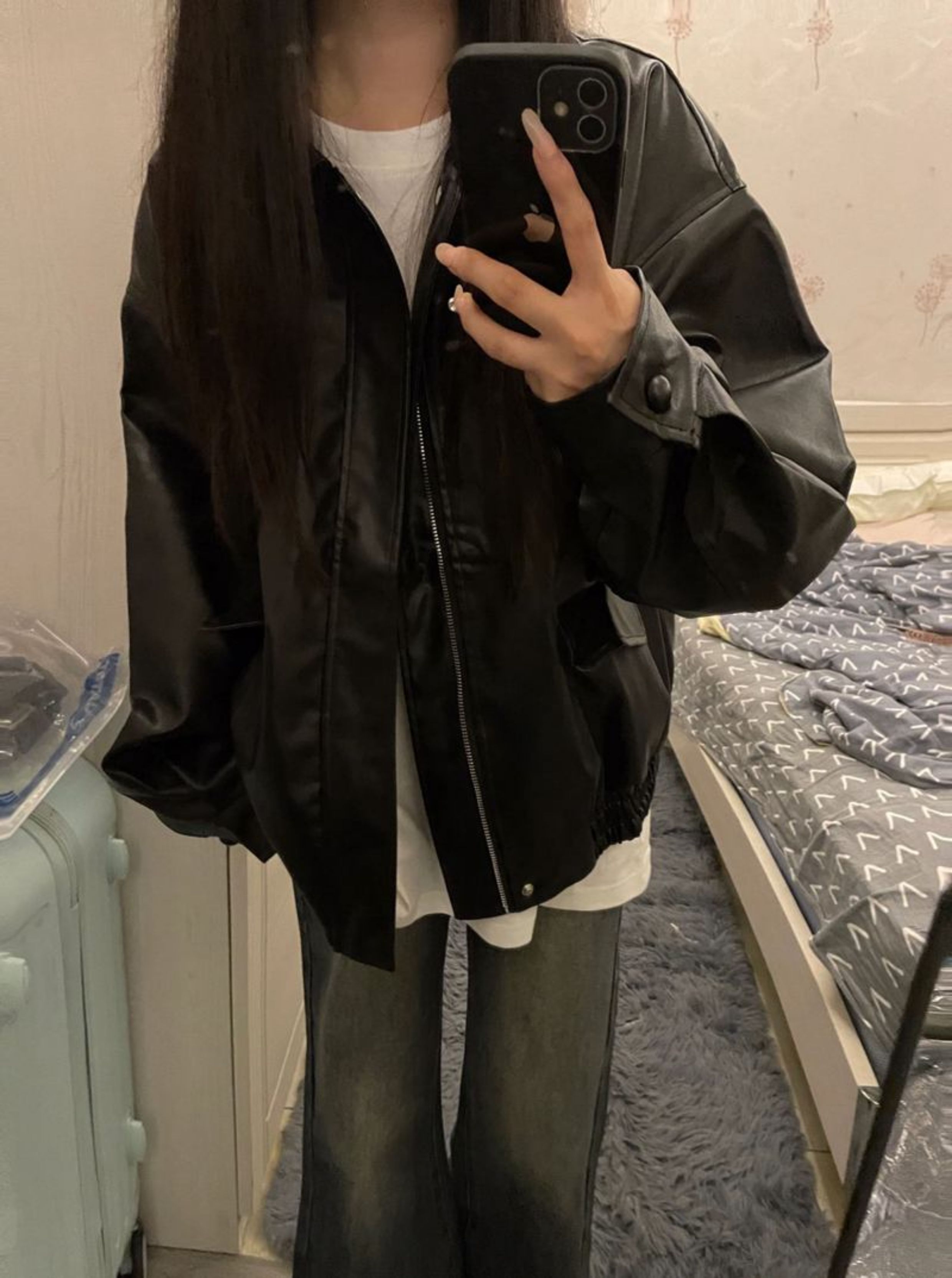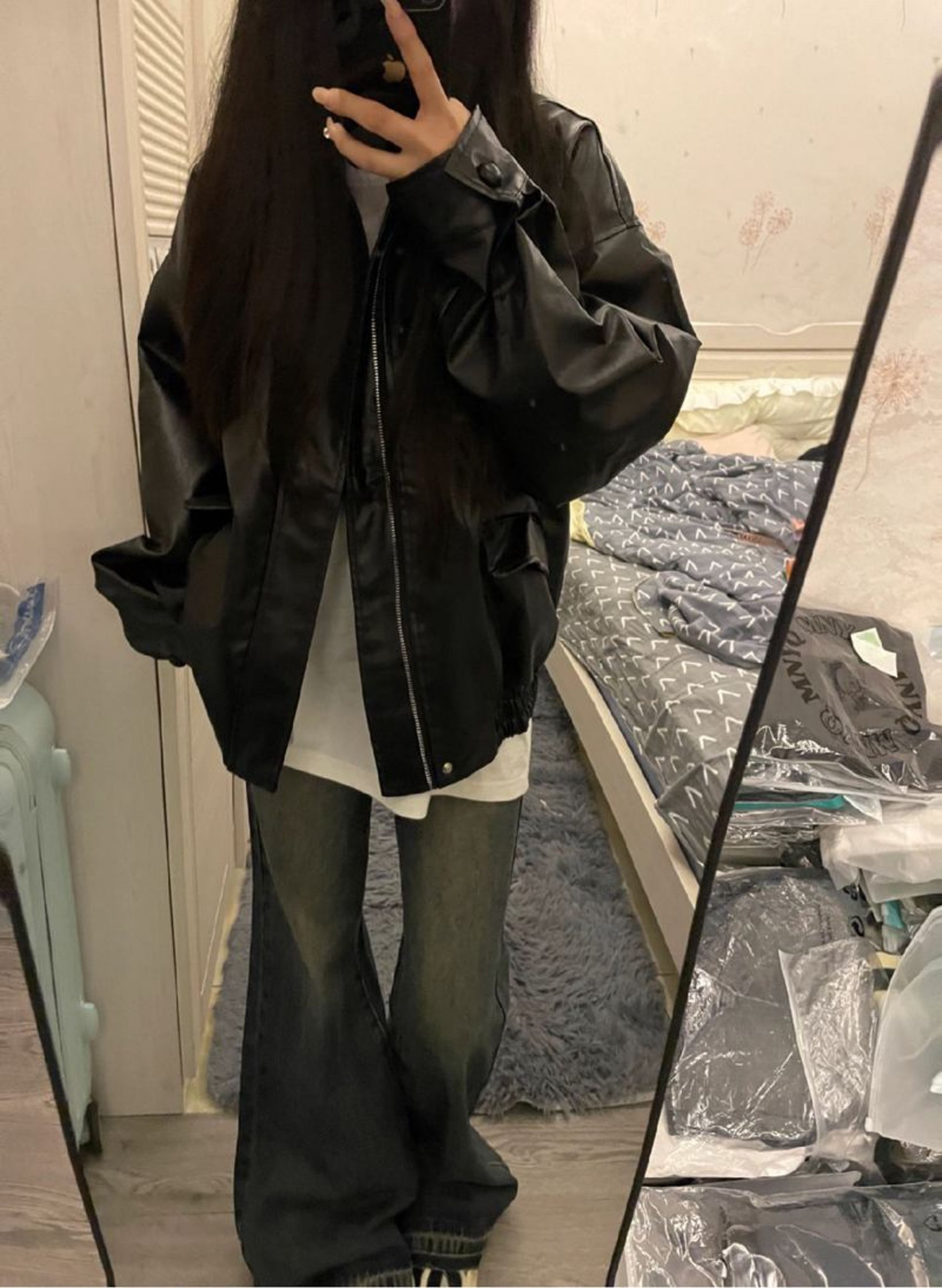 大碼酷帥氣黑色pu皮衣女秋冬美式復古設計感休閒寬松機車夾克外套