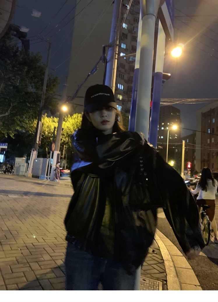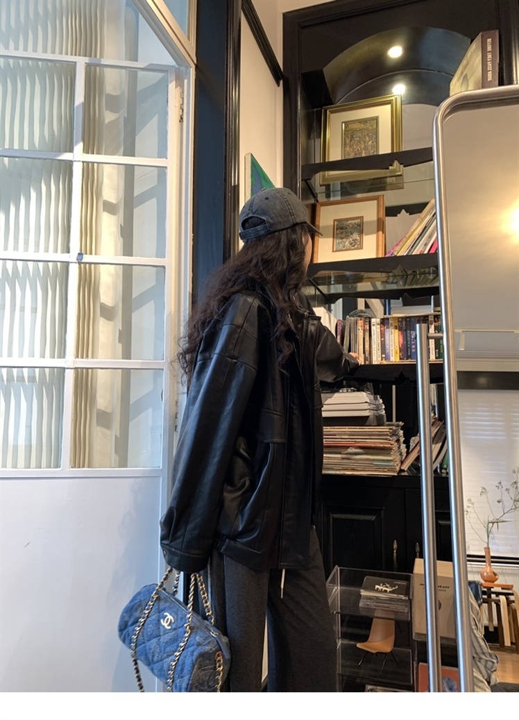 秋冬加絨港風復古休閒寬松廓形酷帥潮黑色拉鍊機車皮衣夾克外套女