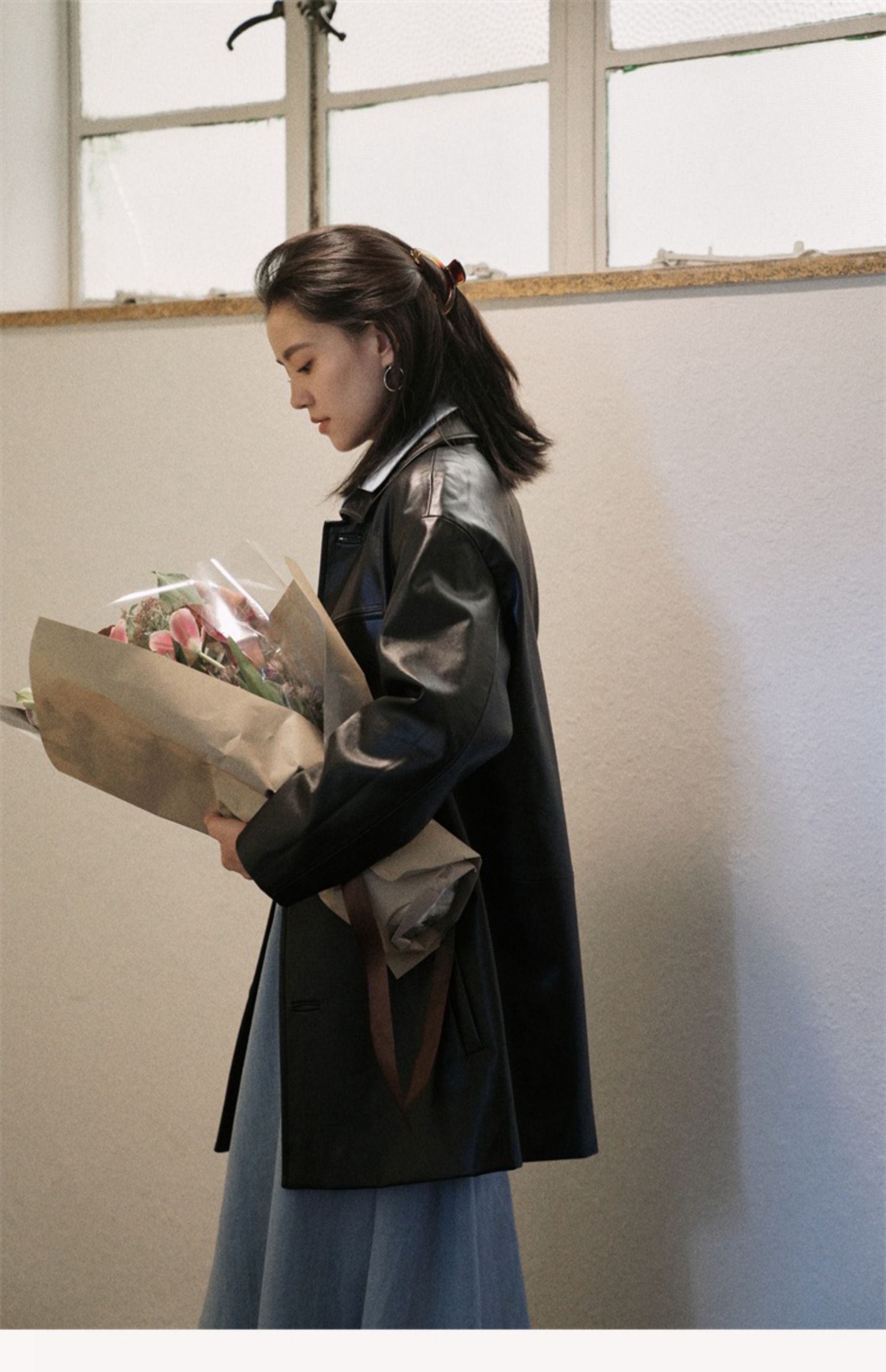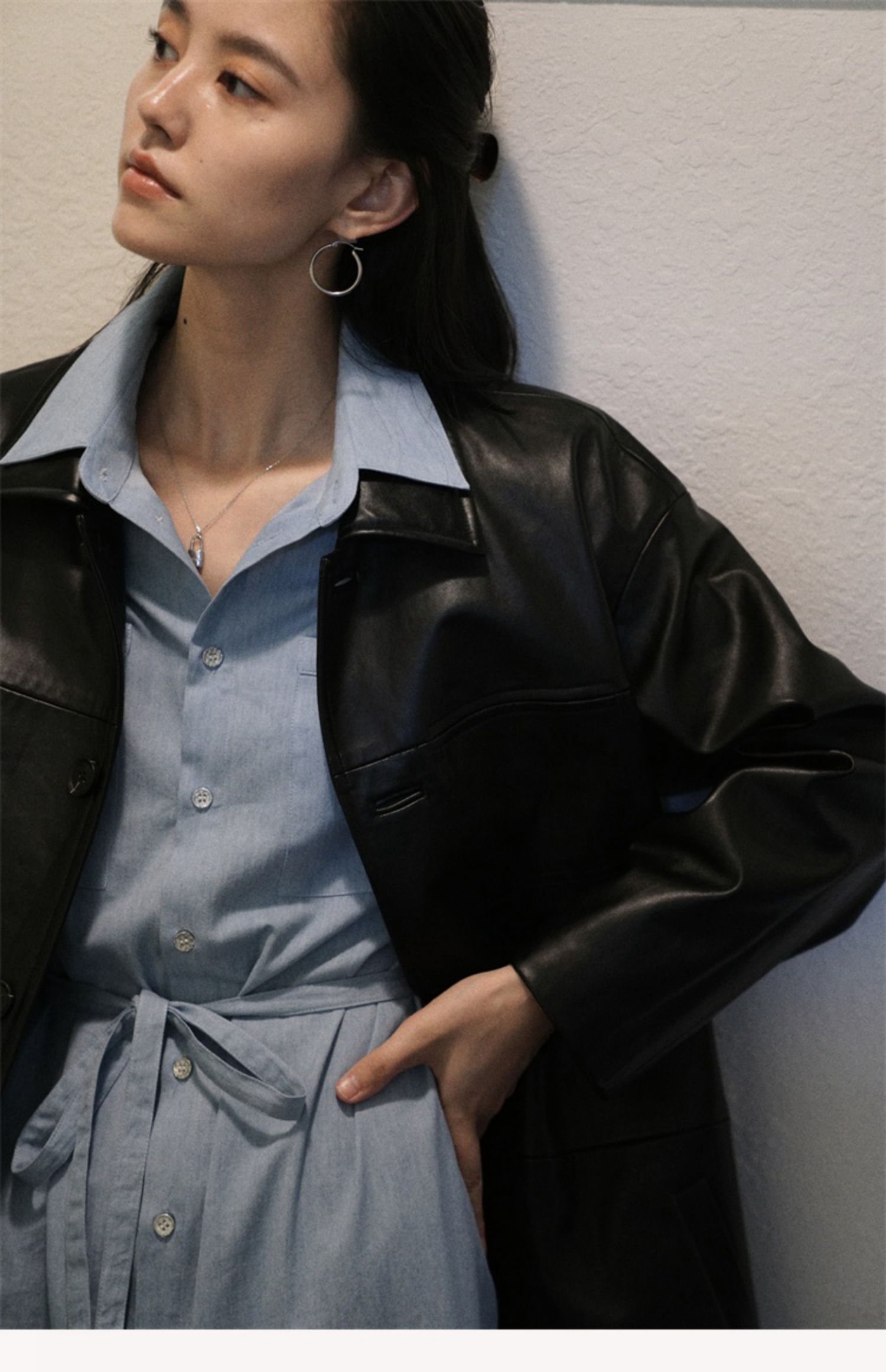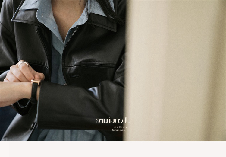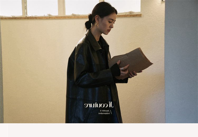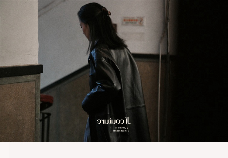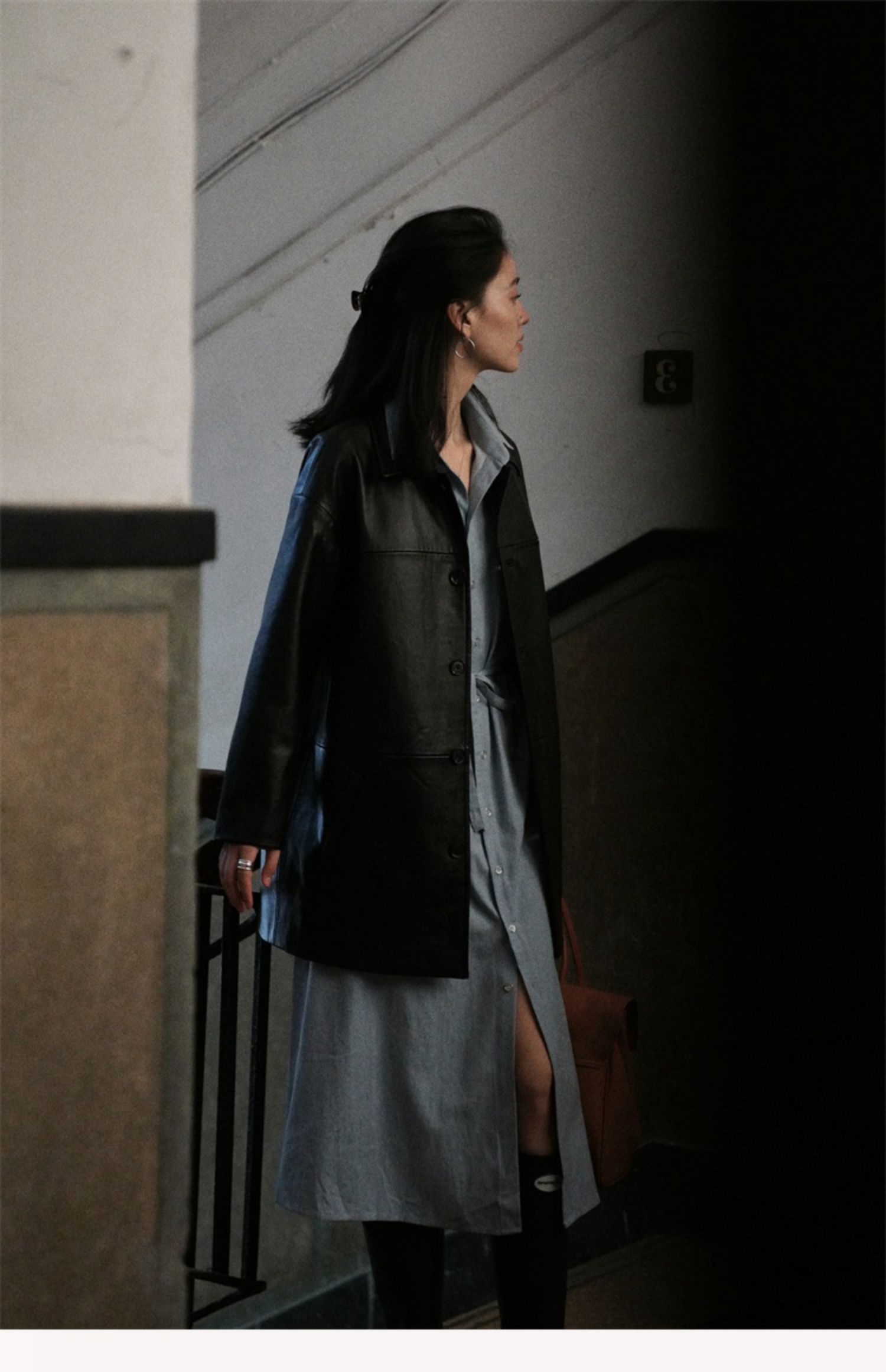 法式復古黑色拼接皮衣外套女2025春秋季新款寬松氣質中長款夾克女