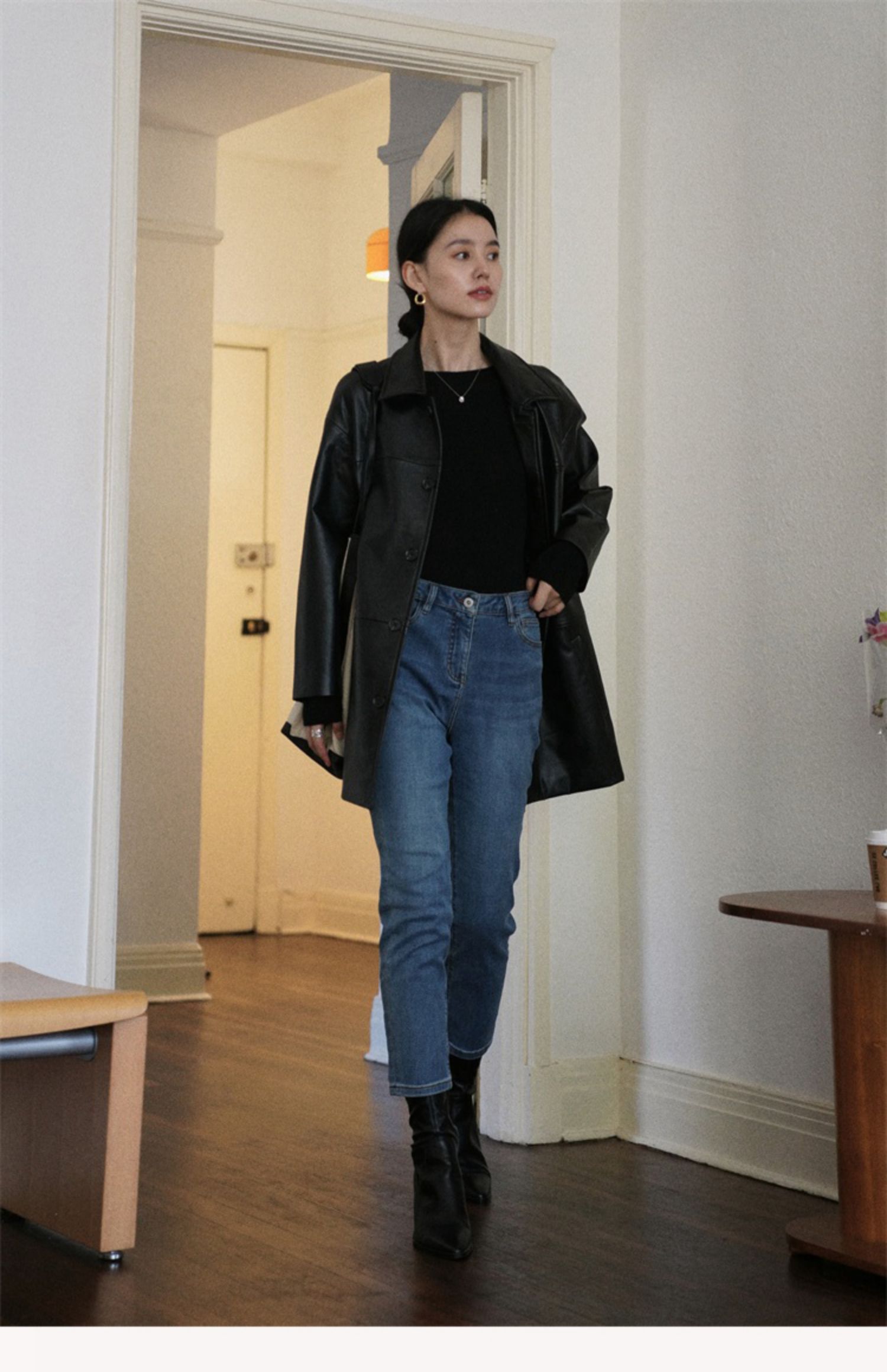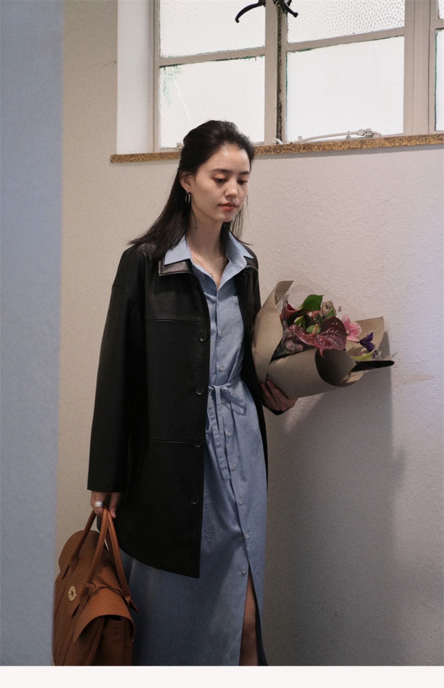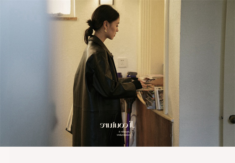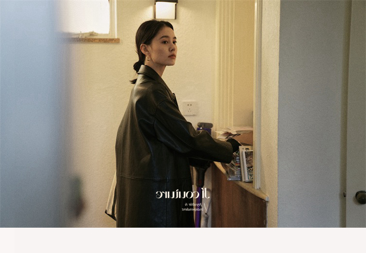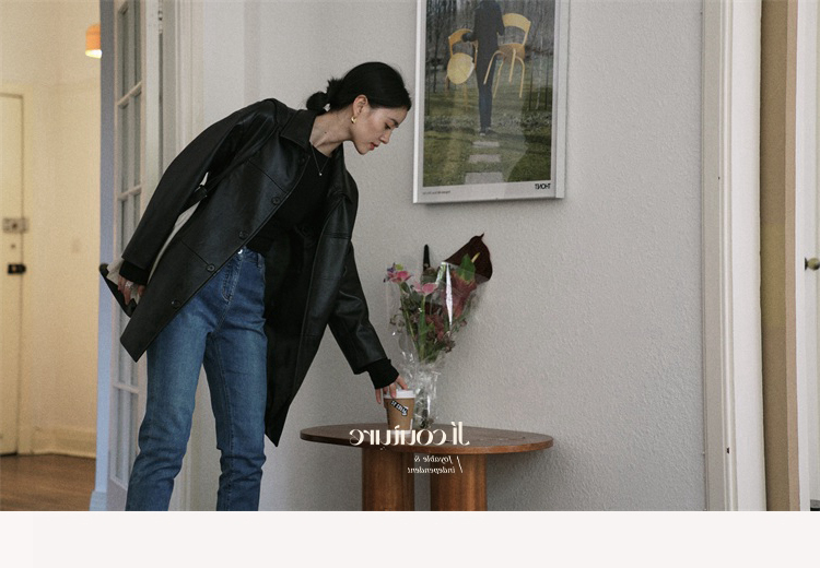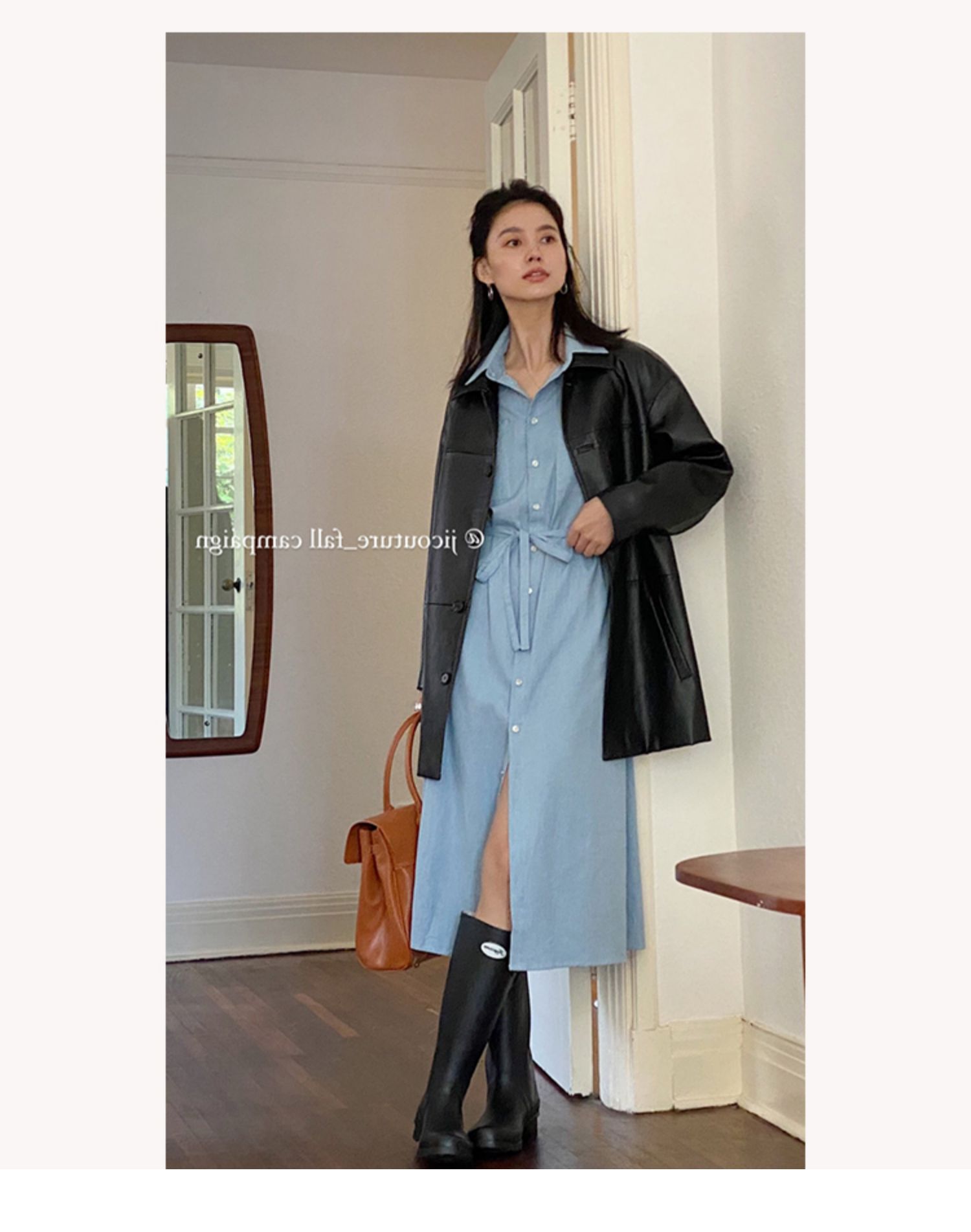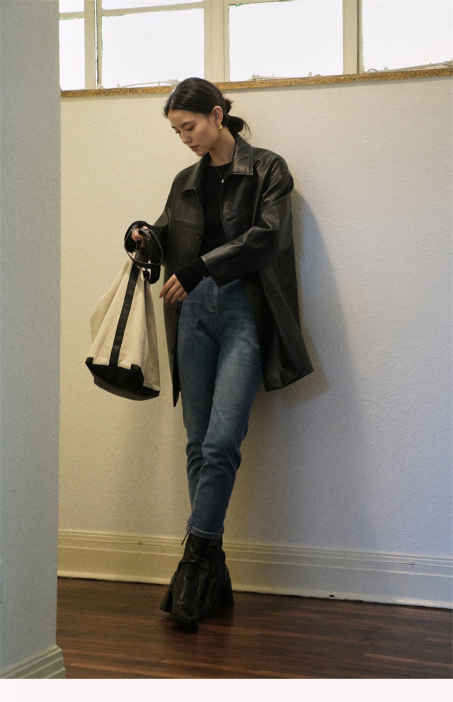 法式復古黑色拼接皮衣外套女2025春秋季新款寬松氣質中長款夾克女