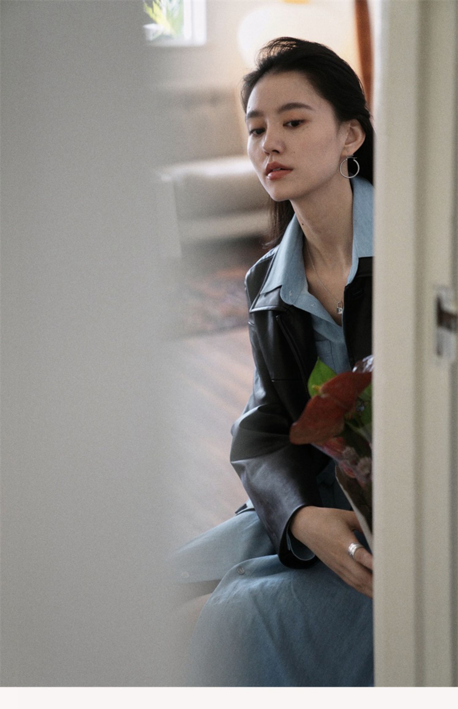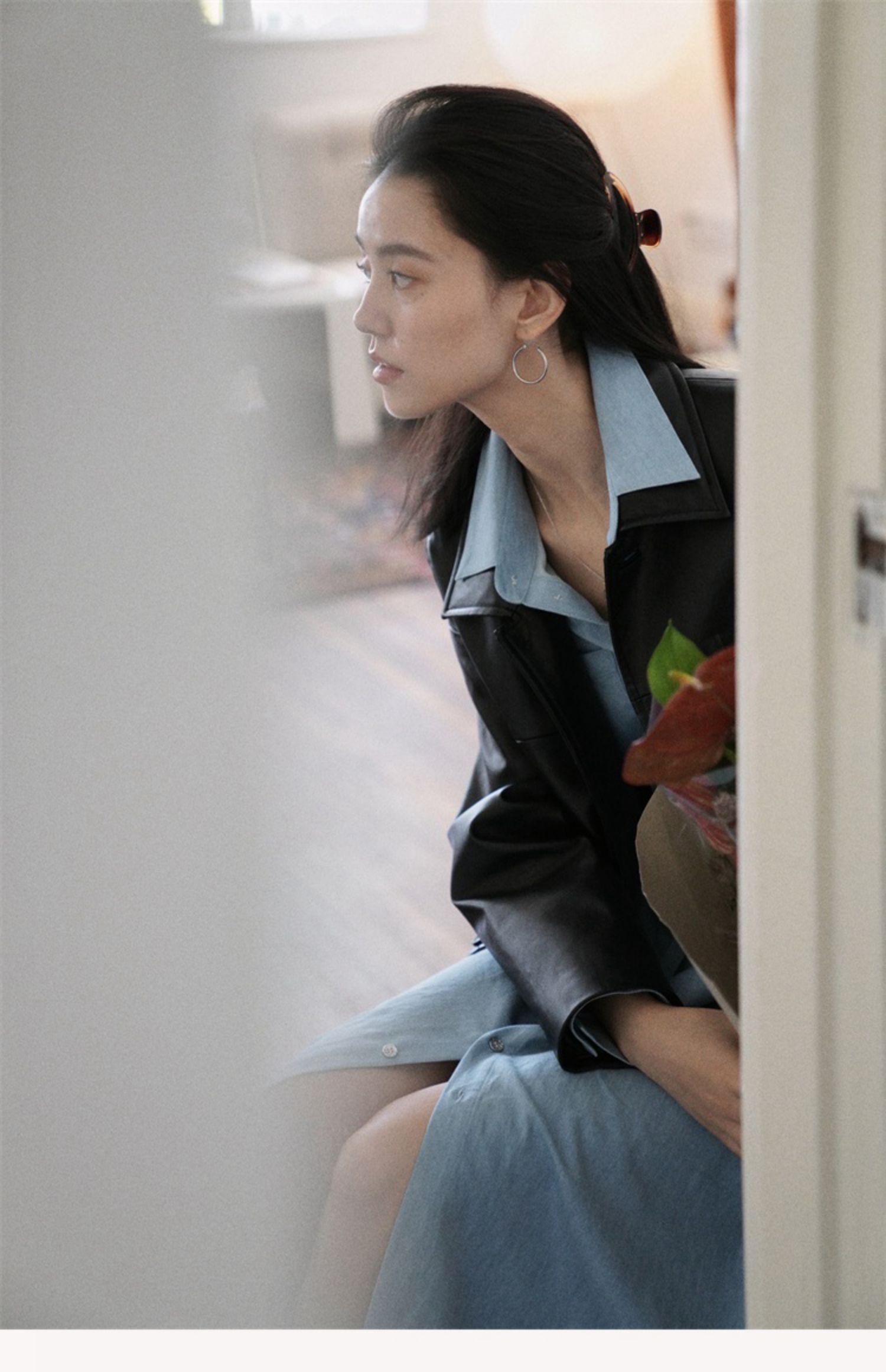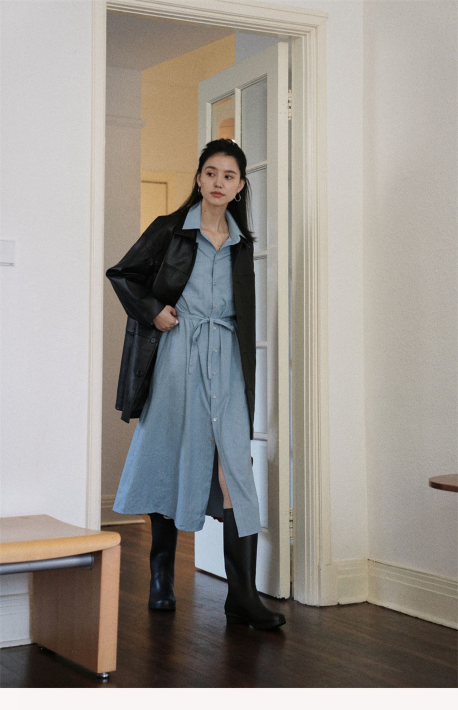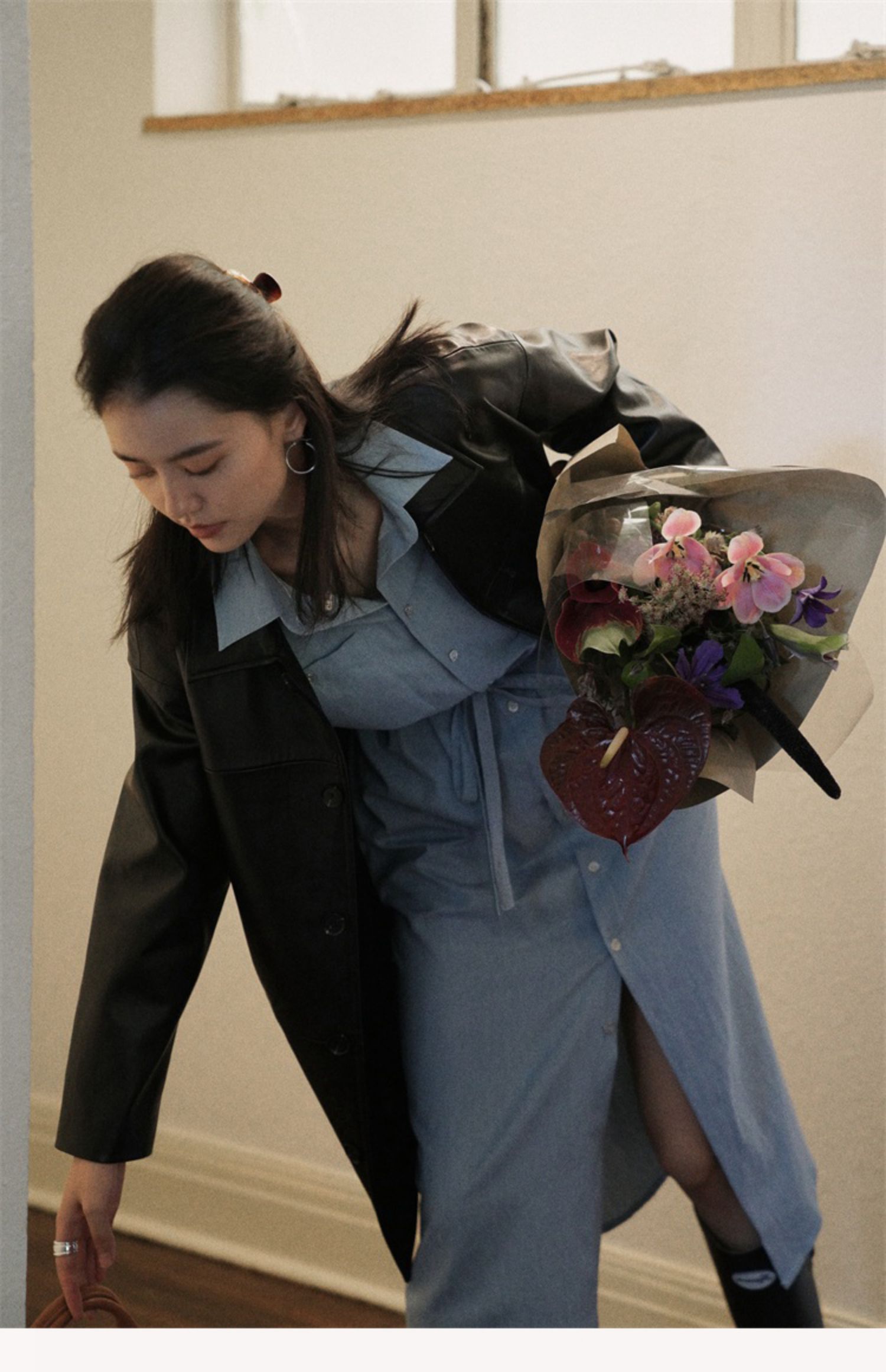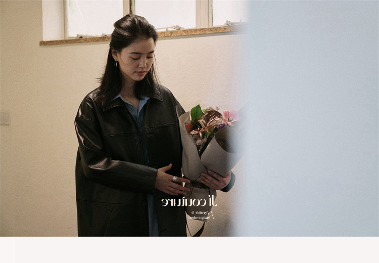 法式復古黑色拼接皮衣外套女2025春秋季新款寬松氣質中長款夾克女
