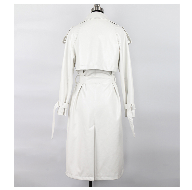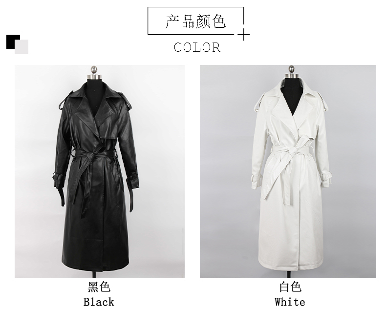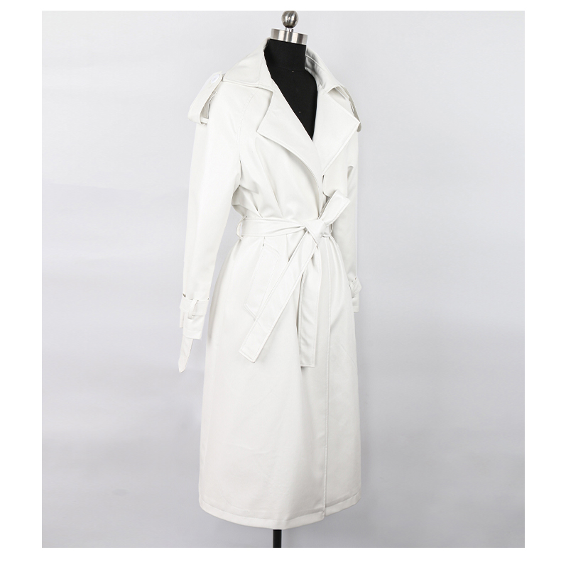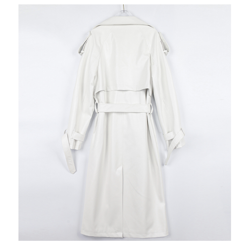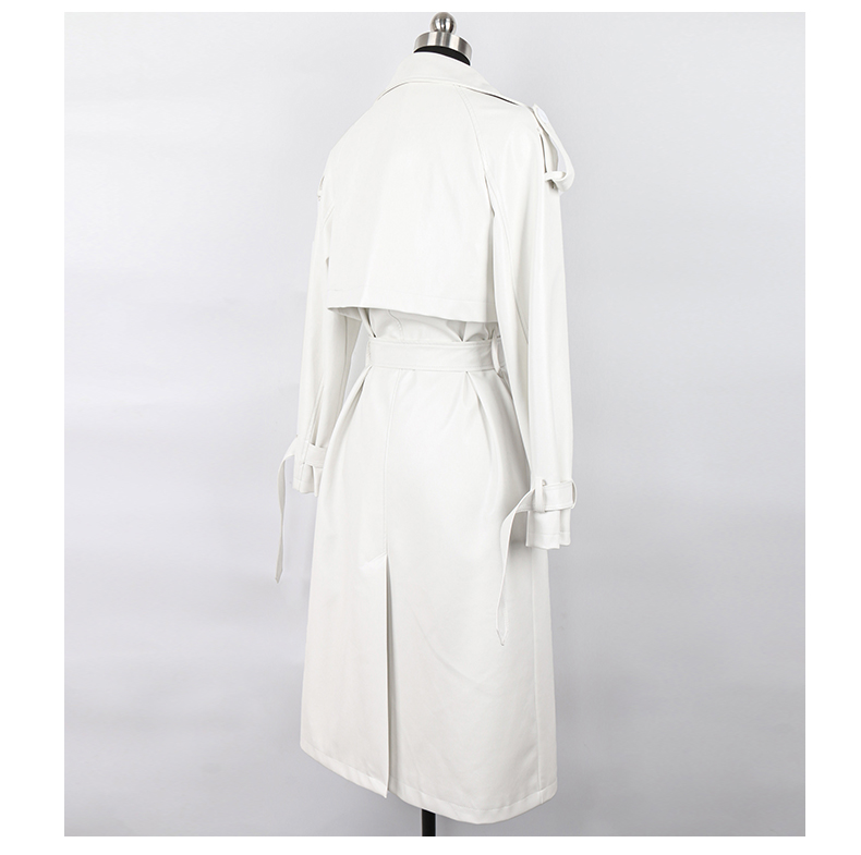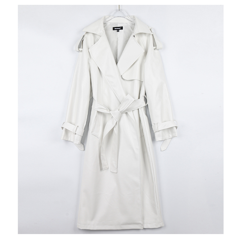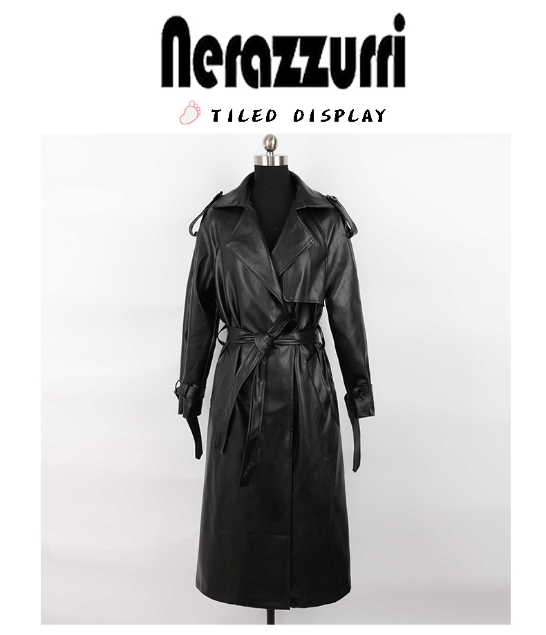 nerazzurri白色pu皮衣外套女腰帶寬松黑色休閒皮風衣長款春季新款