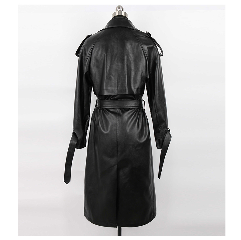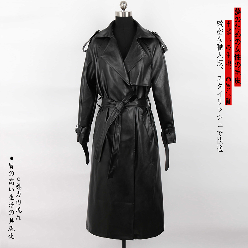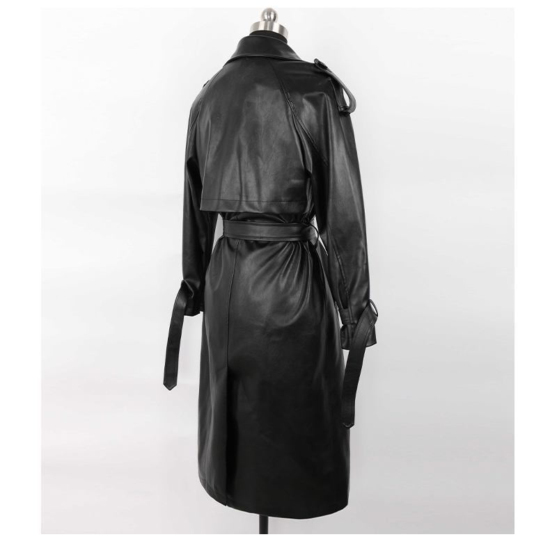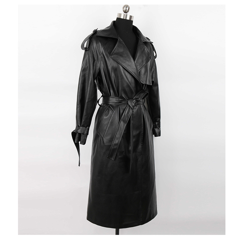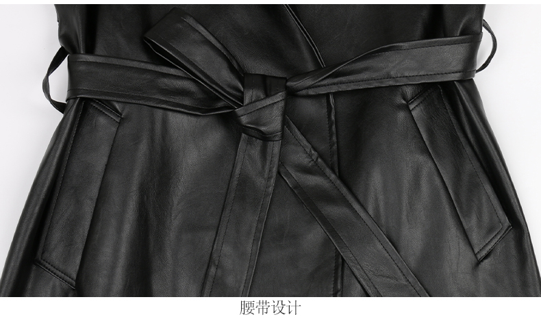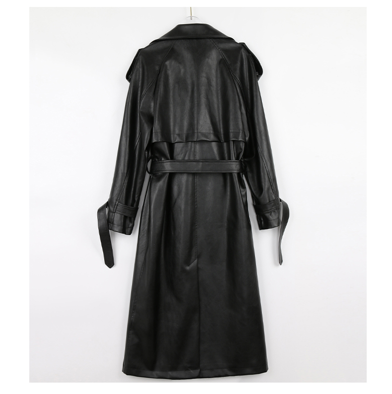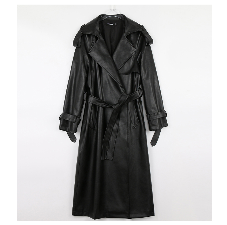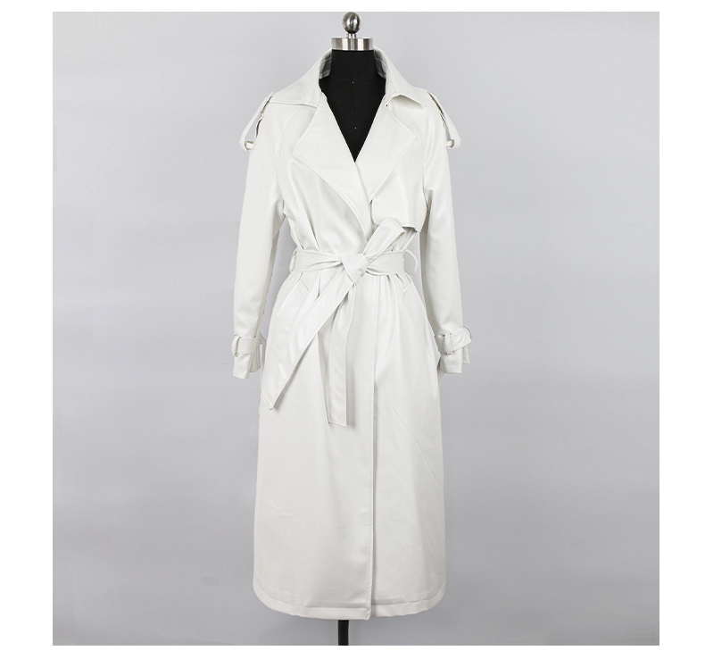 nerazzurri白色pu皮衣外套女腰帶寬松黑色休閒皮風衣長款春季新款