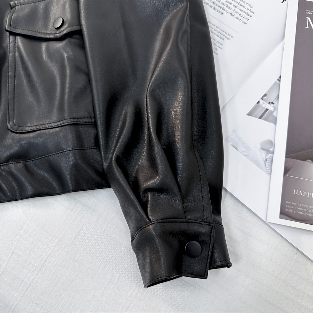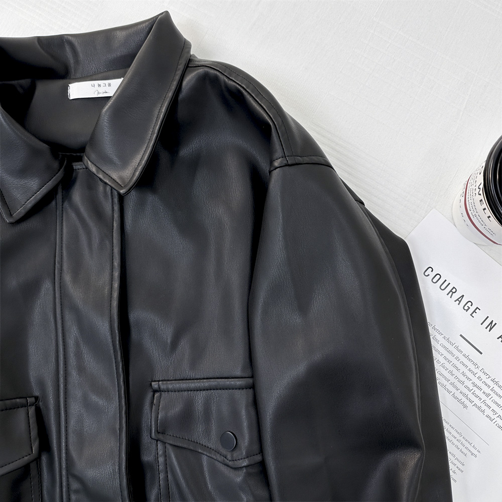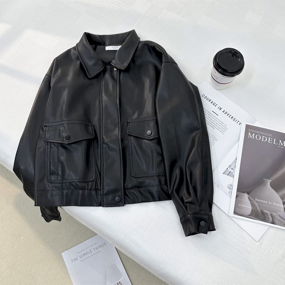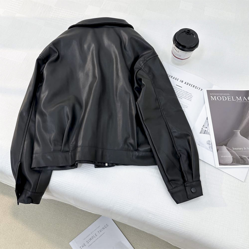 小個子俏皮減齡假兩件連帽皮衣外套女2024秋季新款學院風夾克上衣