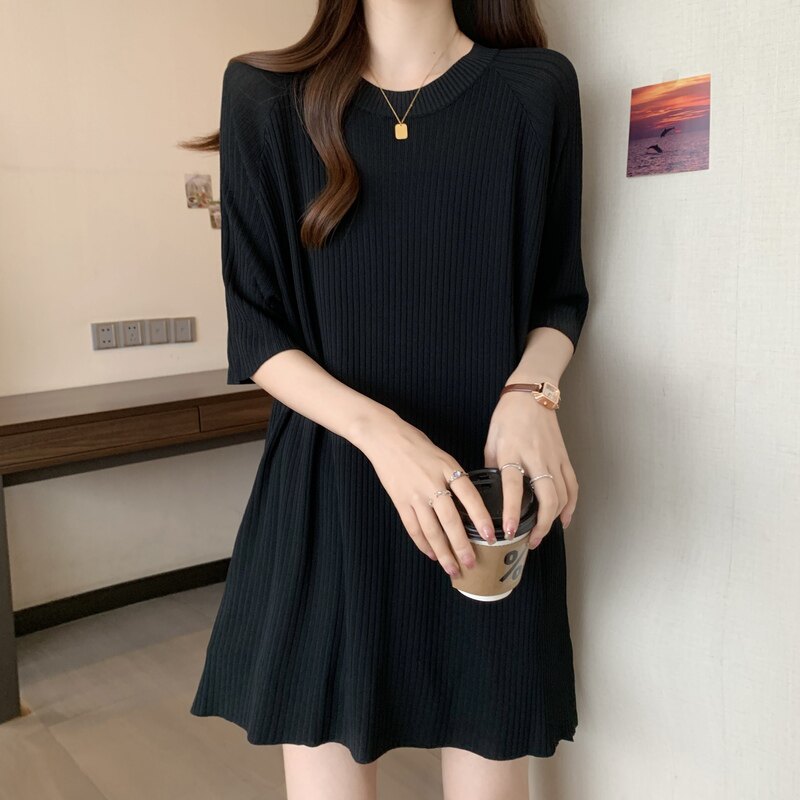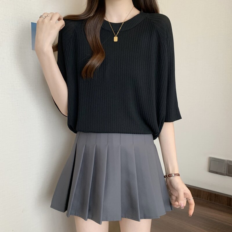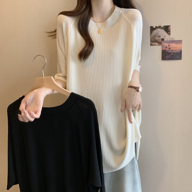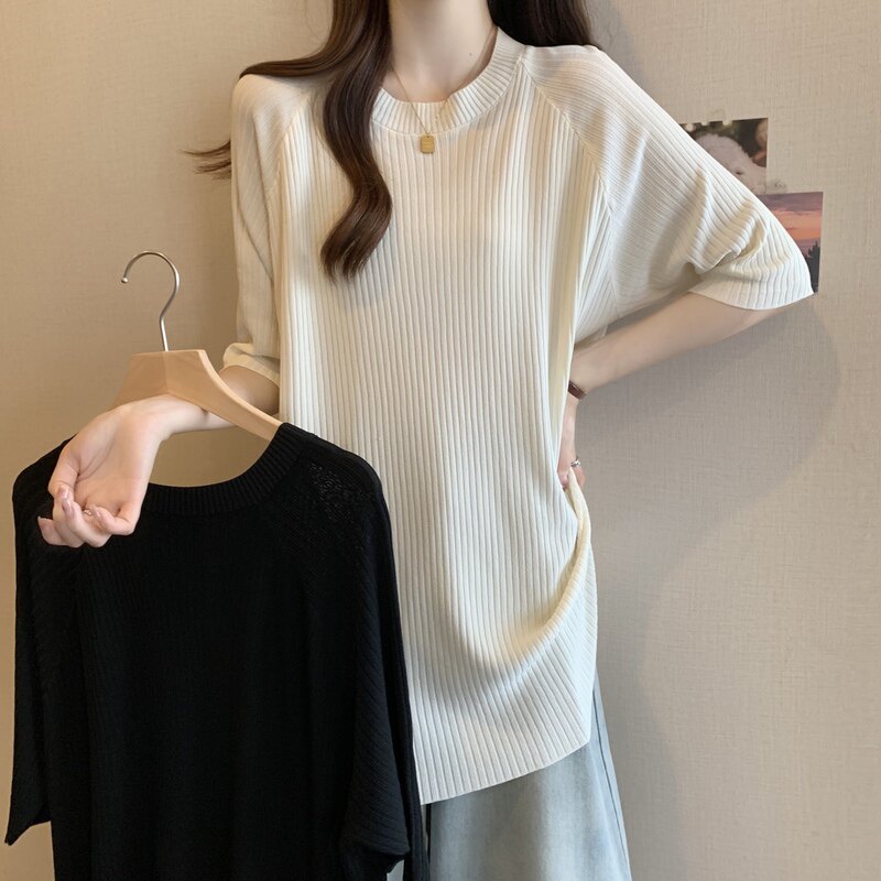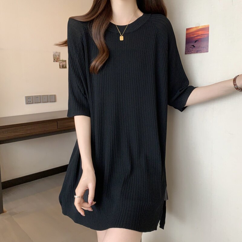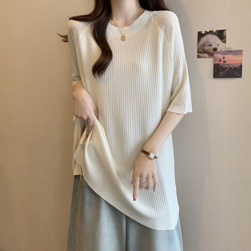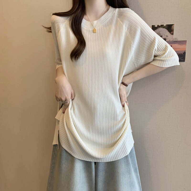 大碼冰絲中長款短袖t恤女2026新款胖mm寬鬆慵懶風遮屁股開叉上衣